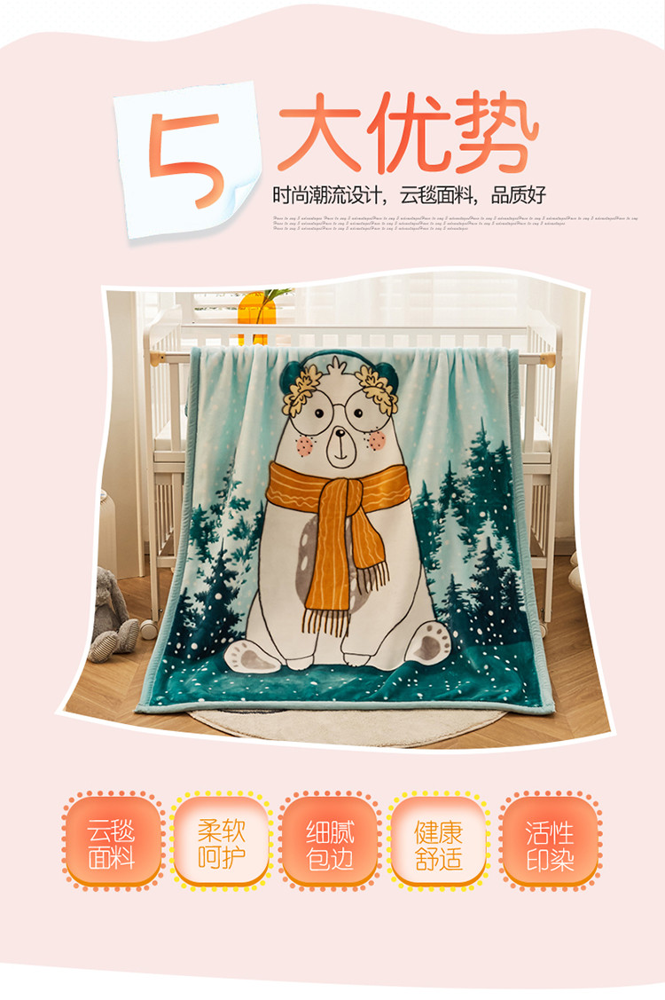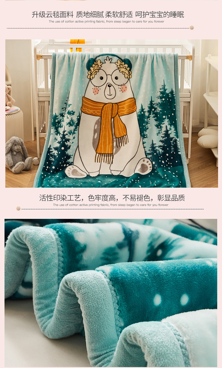 凯轩毛毛毯毯子 加大加厚儿童云毛毯毯子 围巾熊浅绿