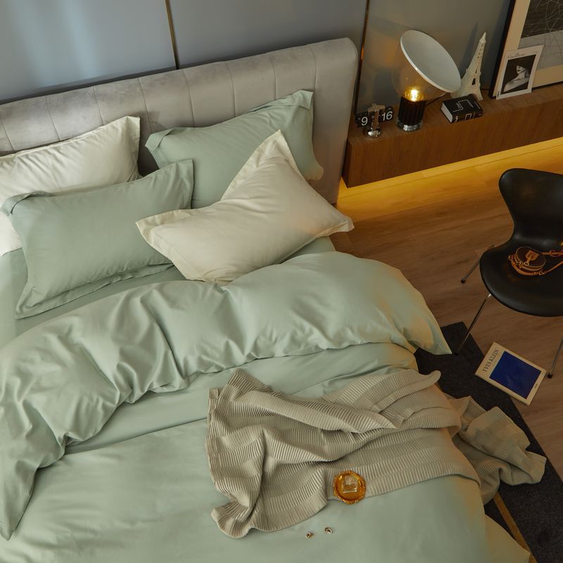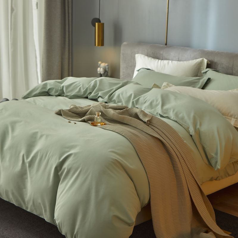 涞澳 2021新款50磨绒纯色四件套风格二 泡沫绿