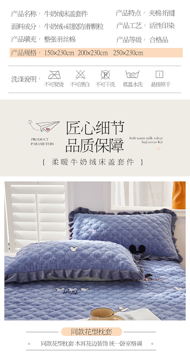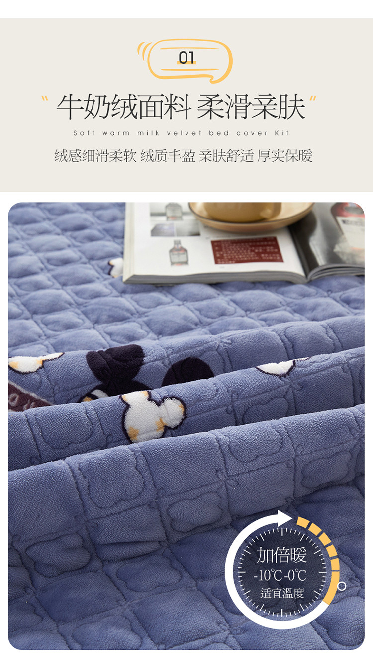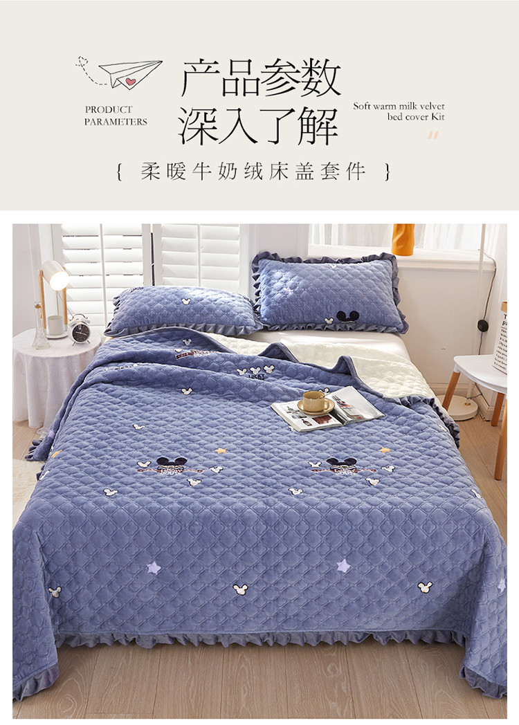 商品名称:金窝窝家纺 2024新款牛奶绒床盖套件 米奇泡泡