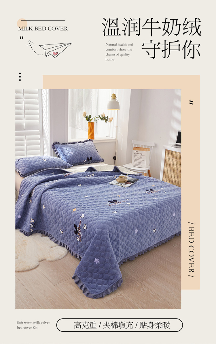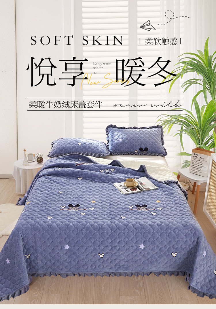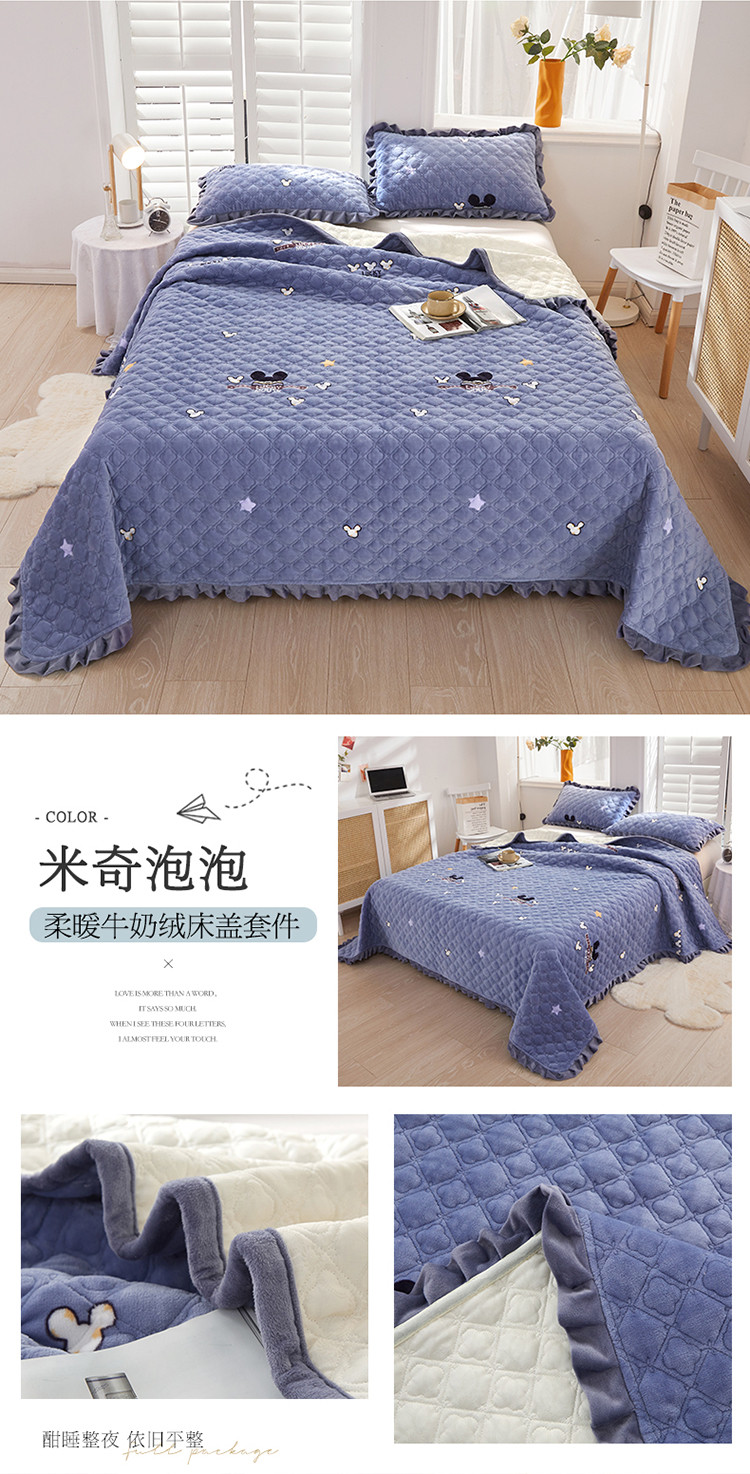 金窝窝家纺 2024新款牛奶绒床盖套件 米奇泡泡