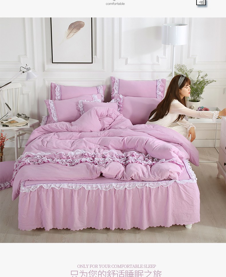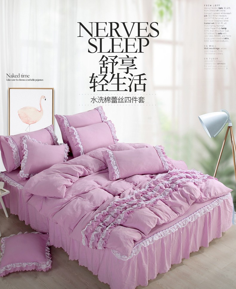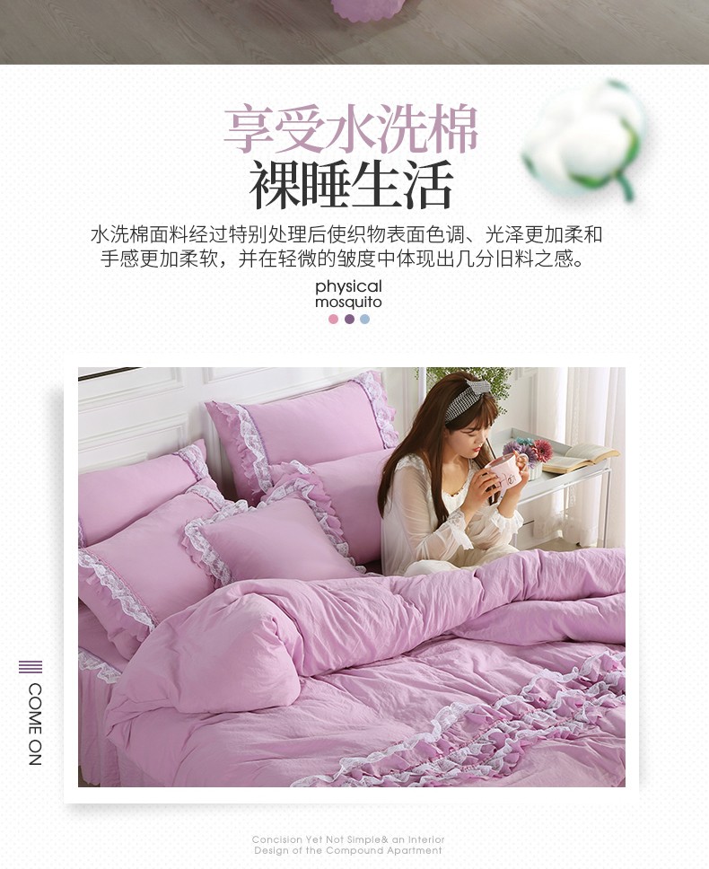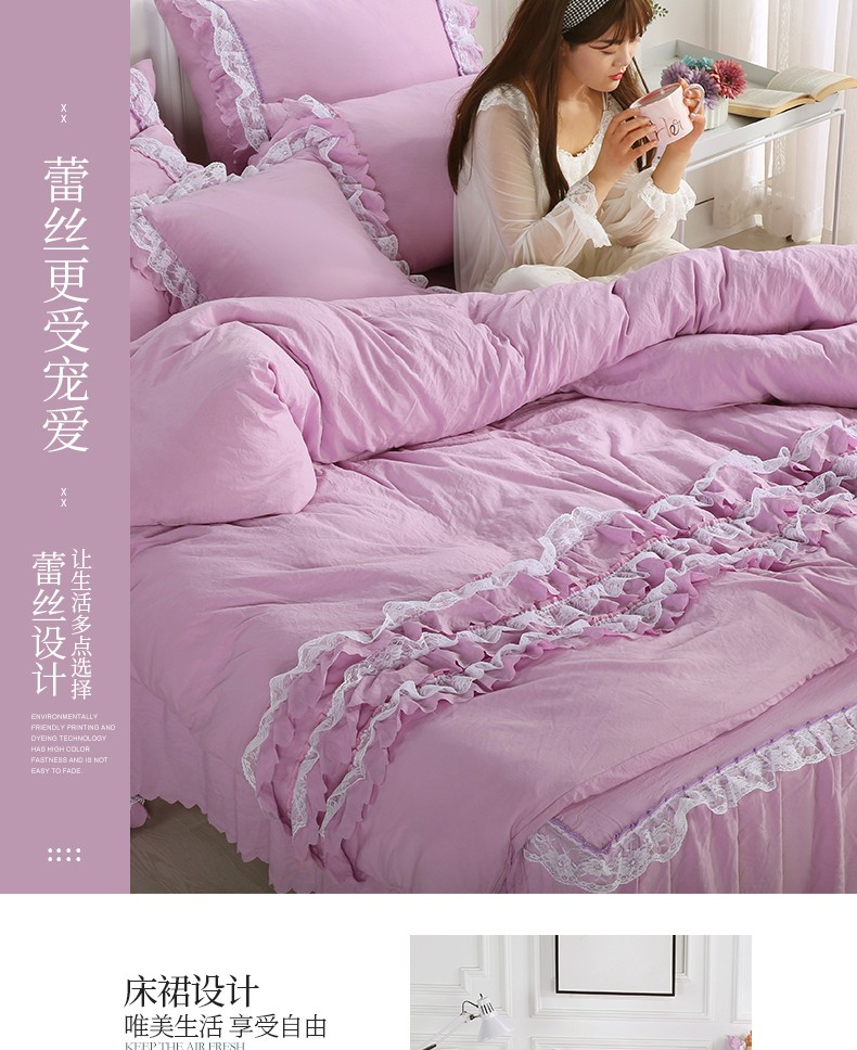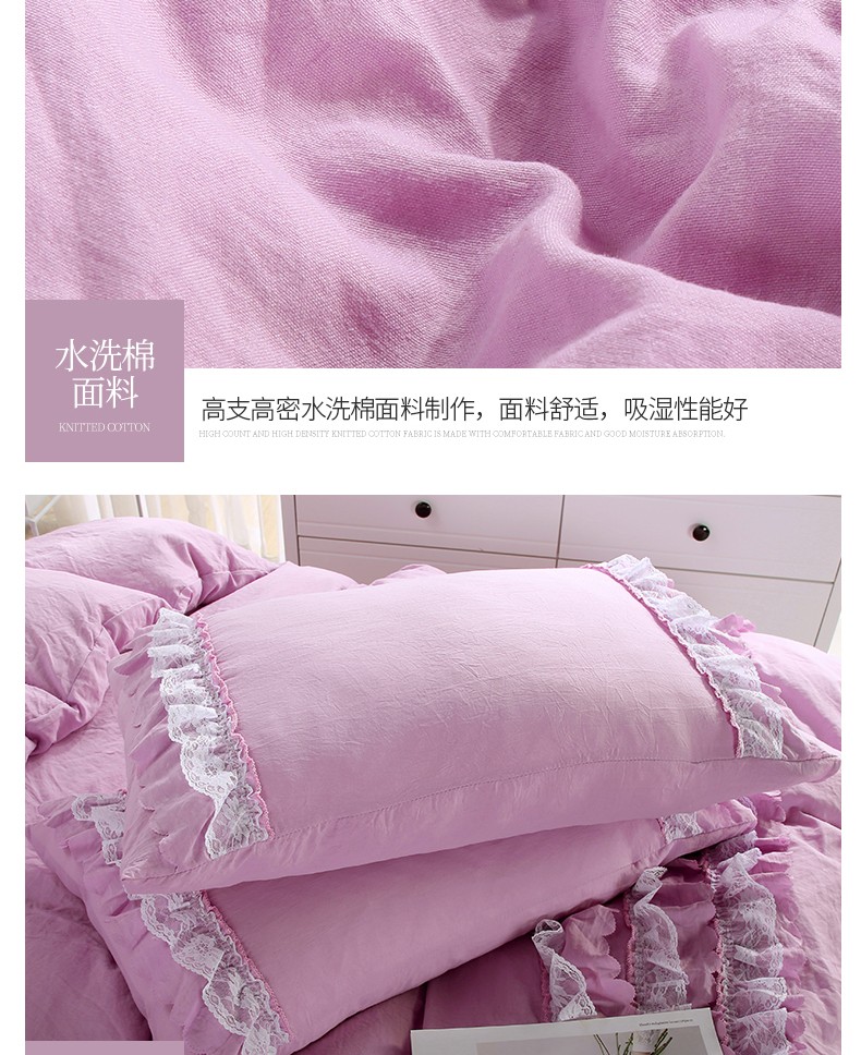 梦柏家纺 2021新款水洗棉蕾丝四件套 兰花紫