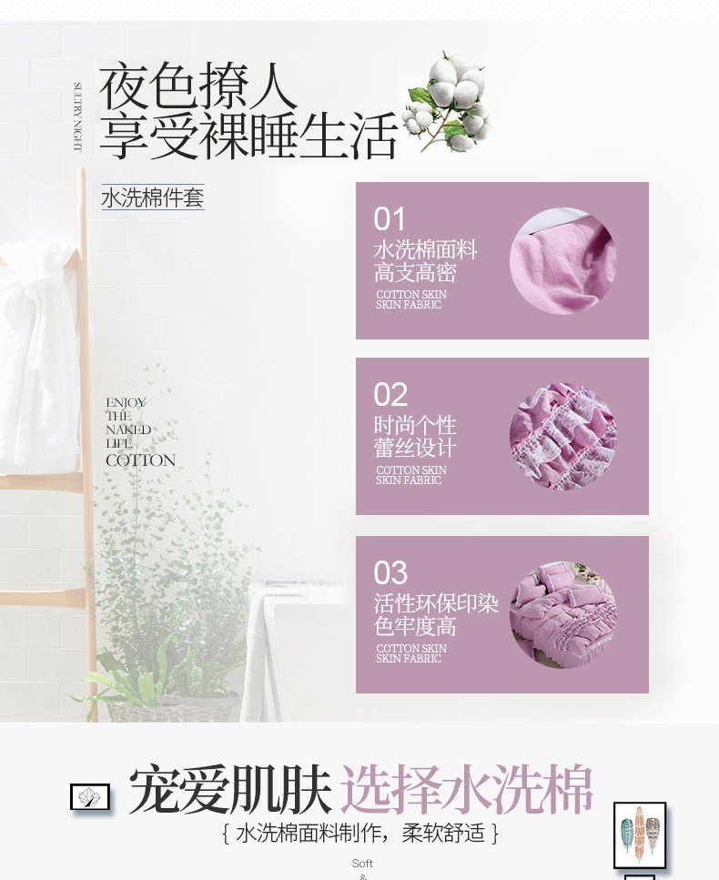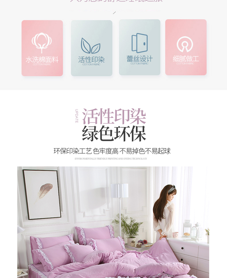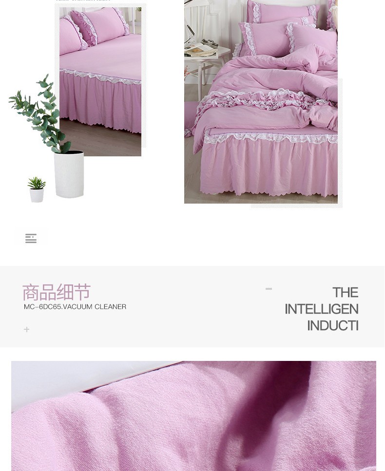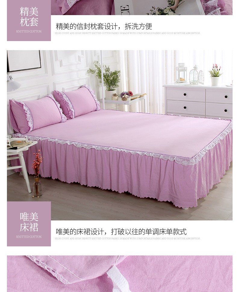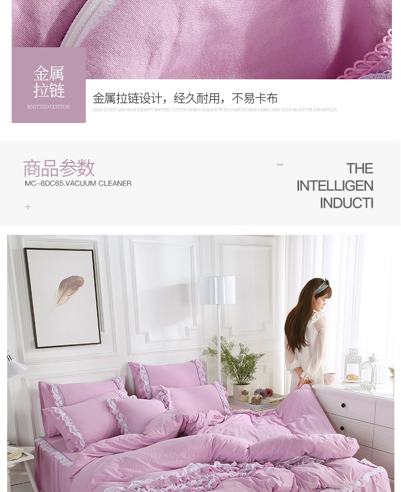 梦柏家纺 2021新款水洗棉蕾丝四件套 兰花紫