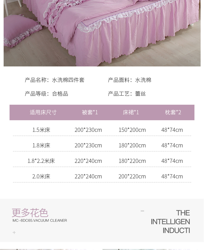 商品名称:梦柏家纺 2021新款水洗棉蕾丝四件套 兰花紫