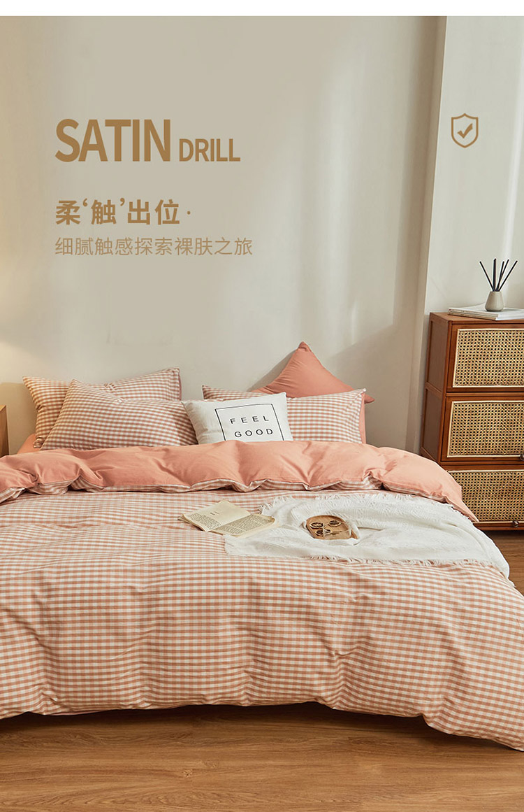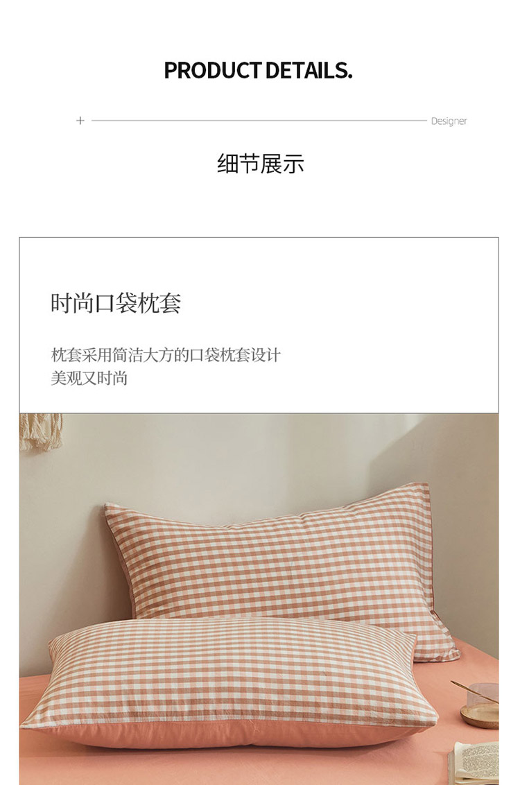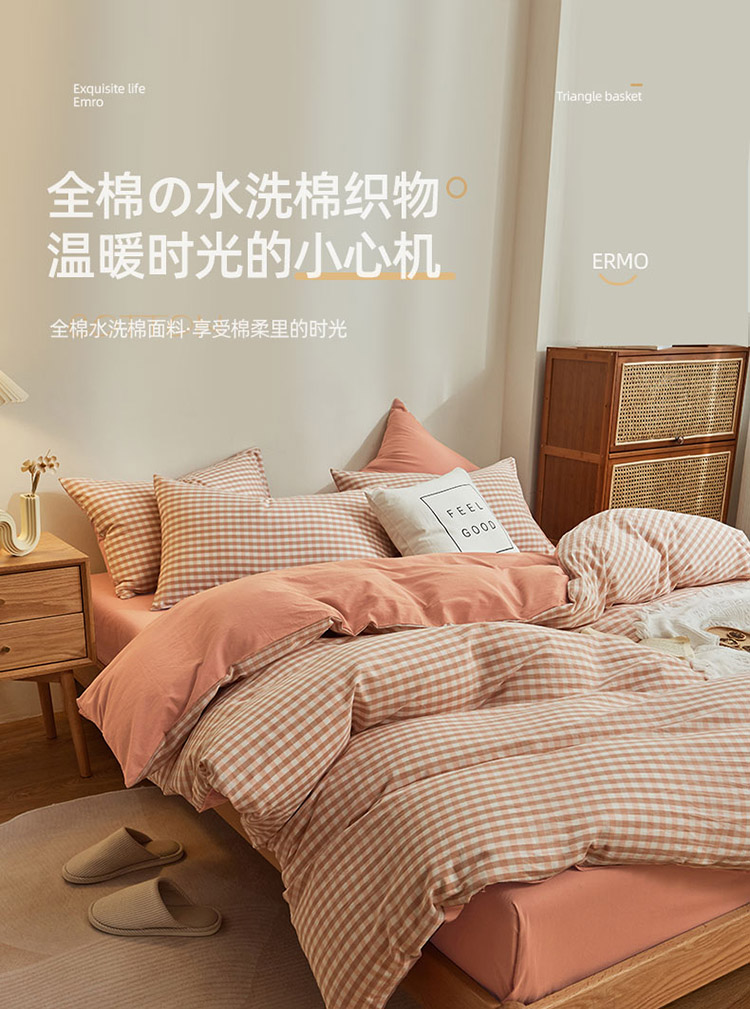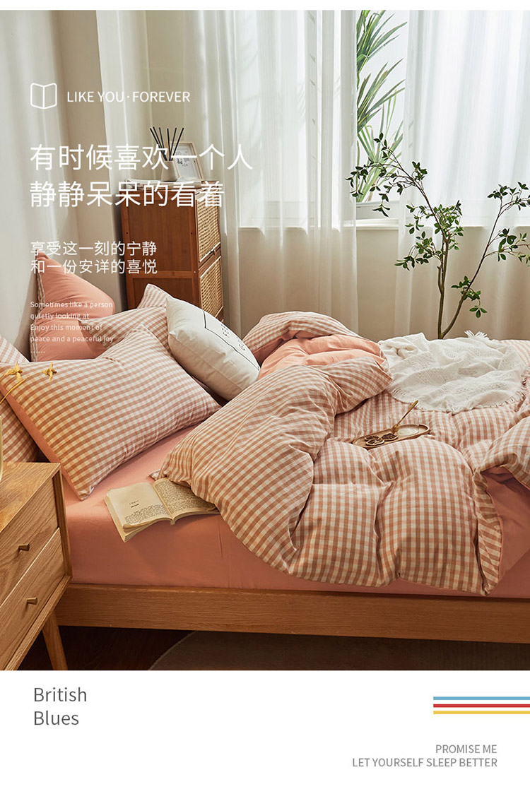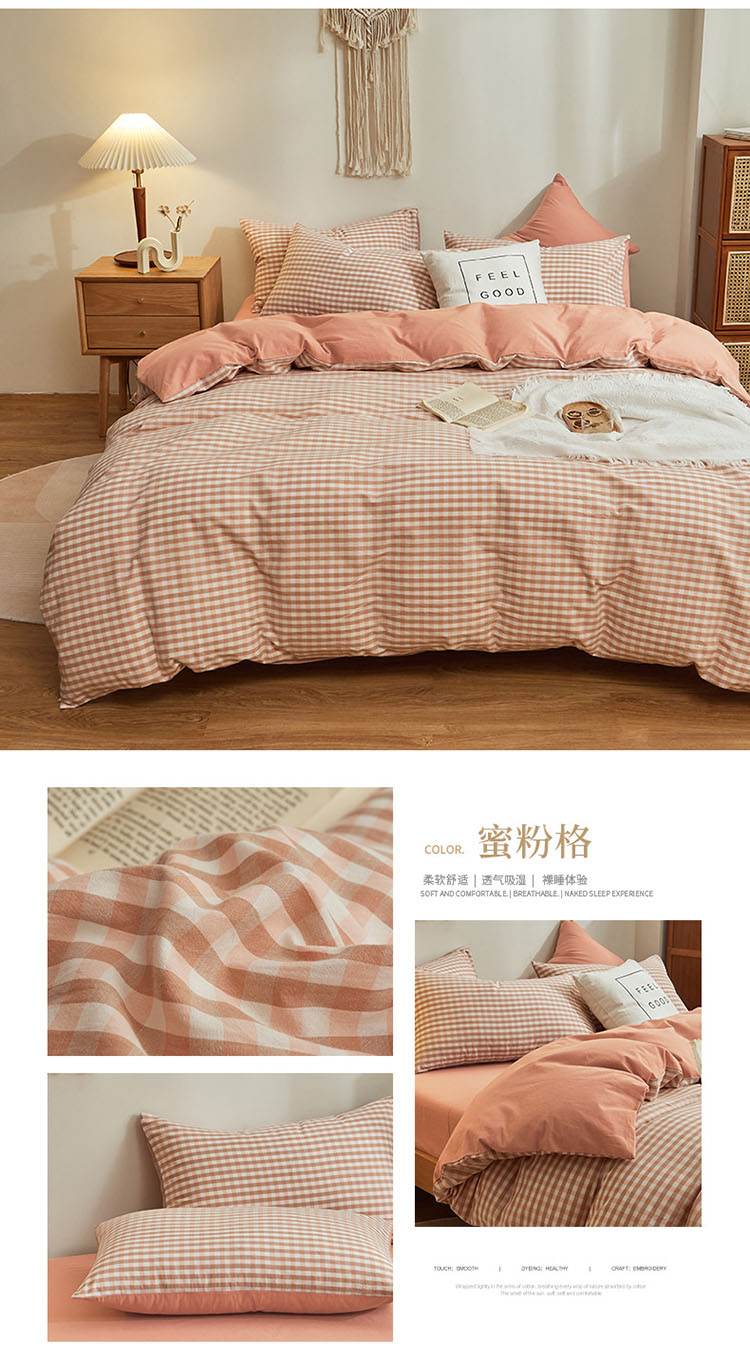 当前位置: 91家纺网 > 商品网购 > 床品套件 > 四件套 > 水洗棉四件套 > ab家纺 2022新款全棉水洗棉四件套纯棉格子 蜜粉格