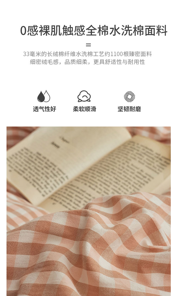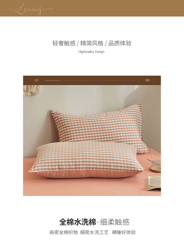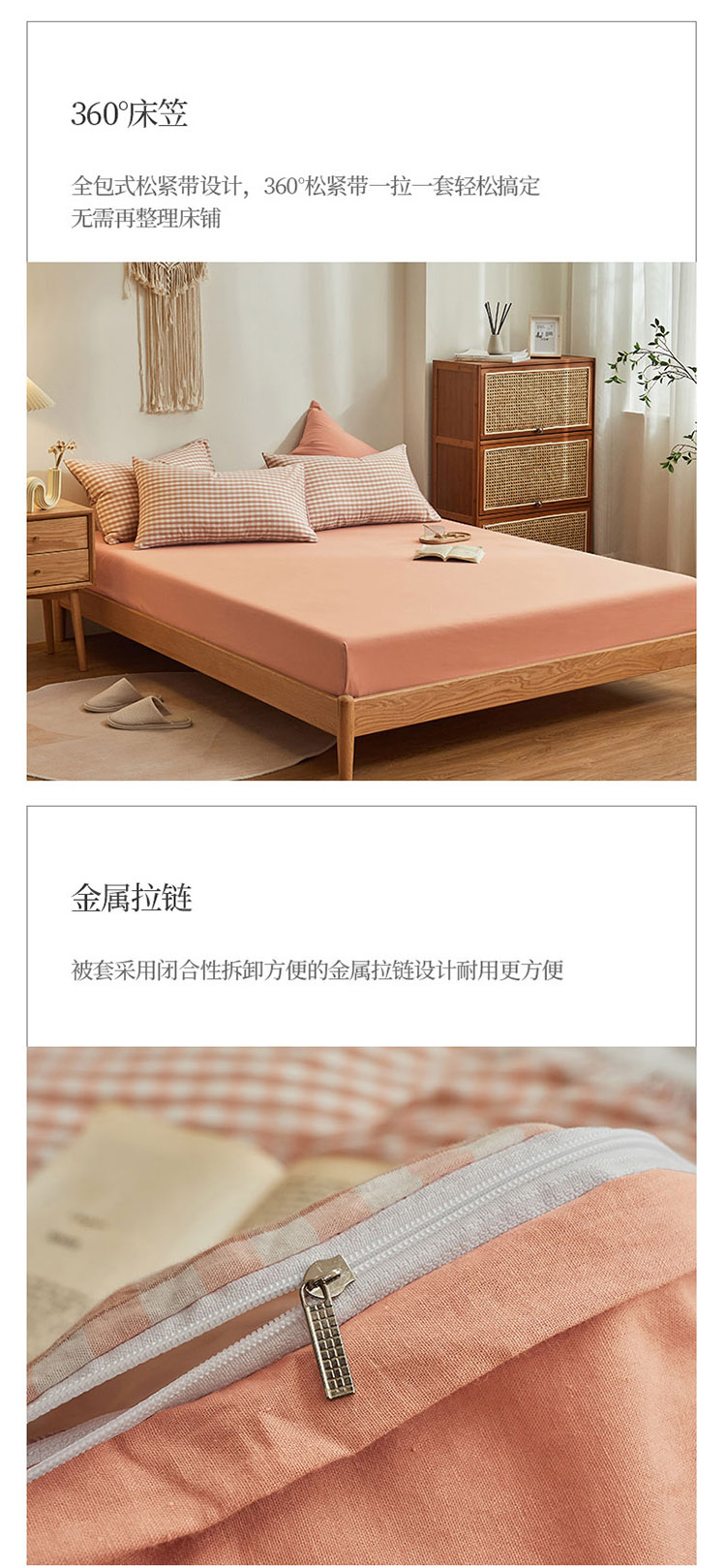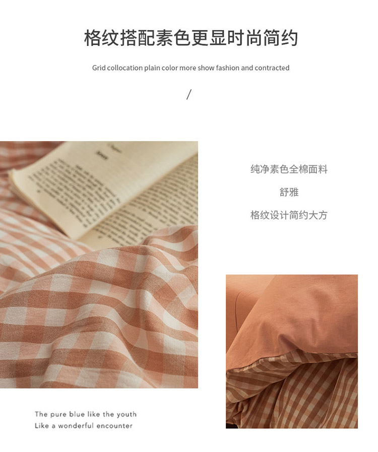 当前位置: 91家纺网 > 商品网购 > 床品套件 > 四件套 > 水洗棉四件套 > ab家纺 2022新款全棉水洗棉四件套纯棉格子 蜜粉格