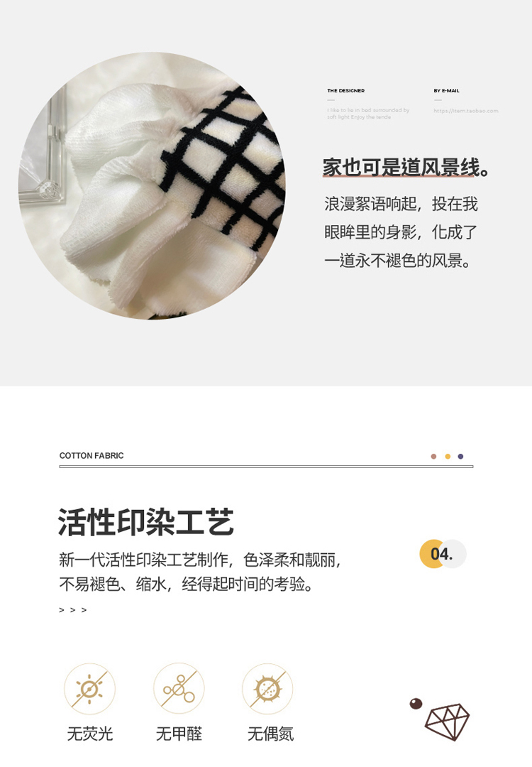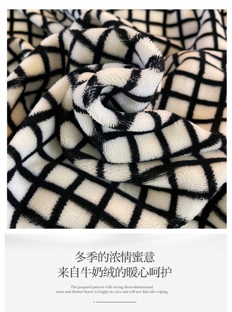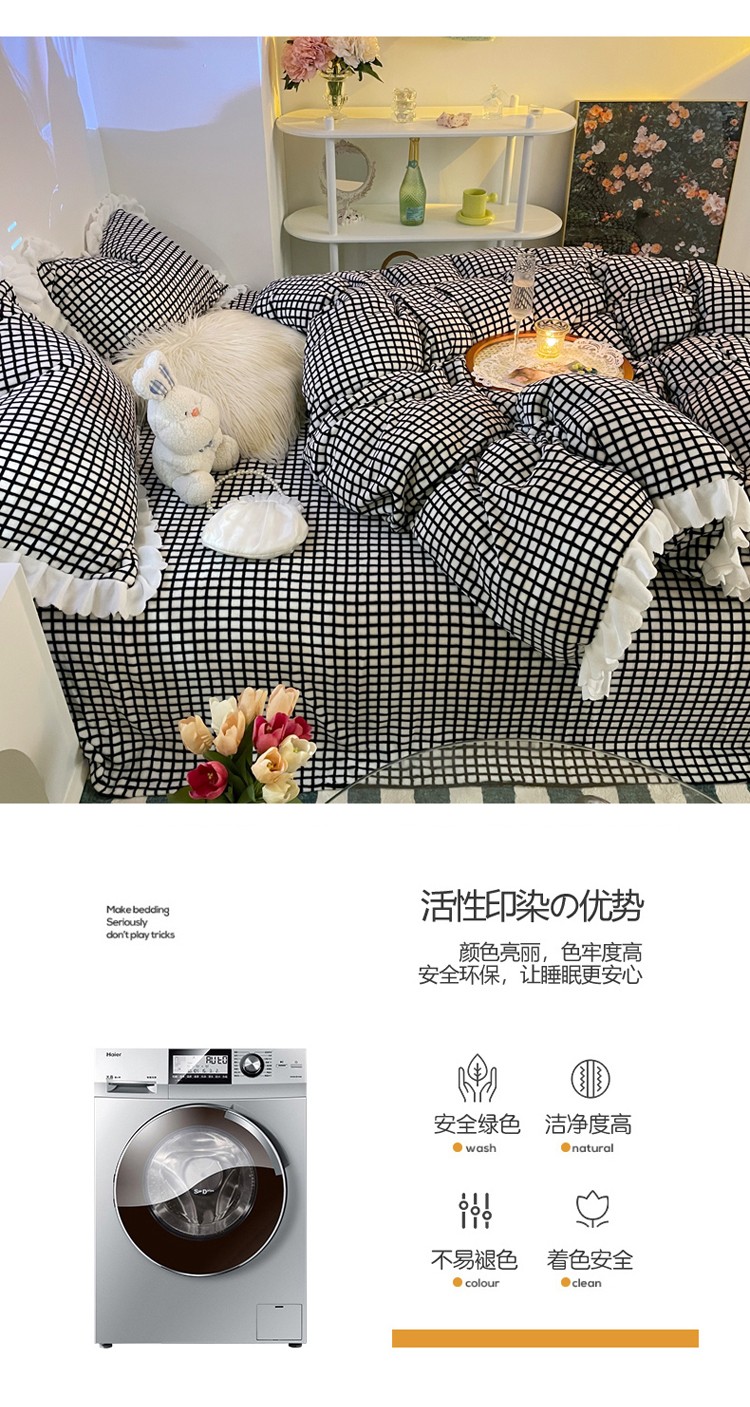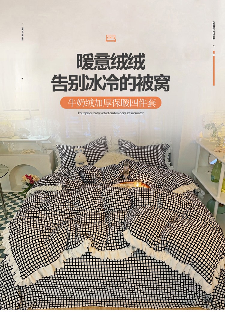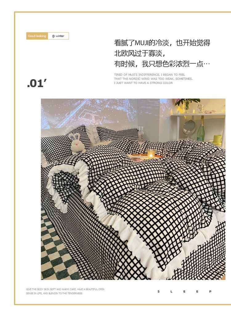 商品名称:千朵 2021新款韩版牛奶绒保暖四件套 格格黑白