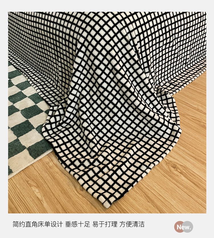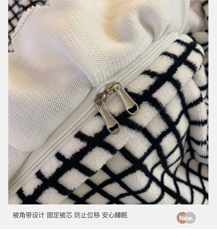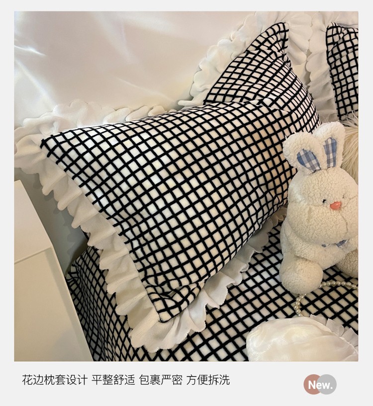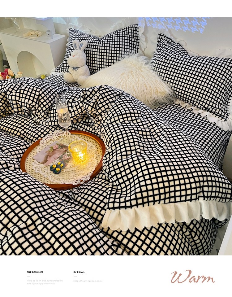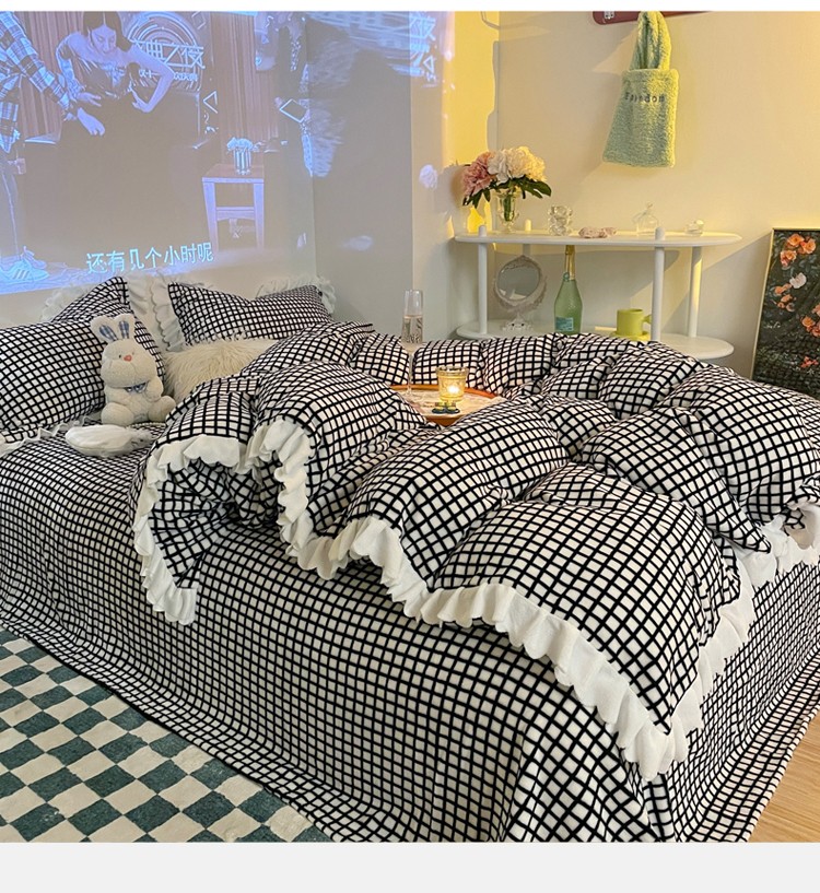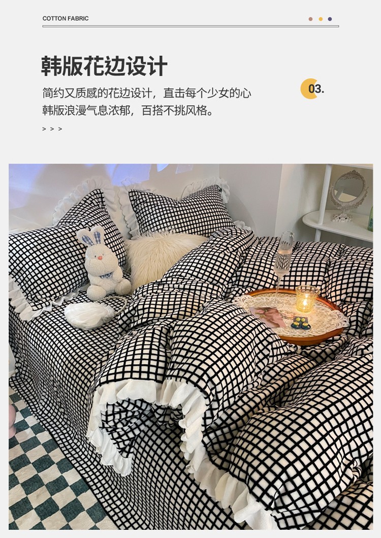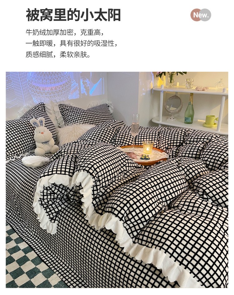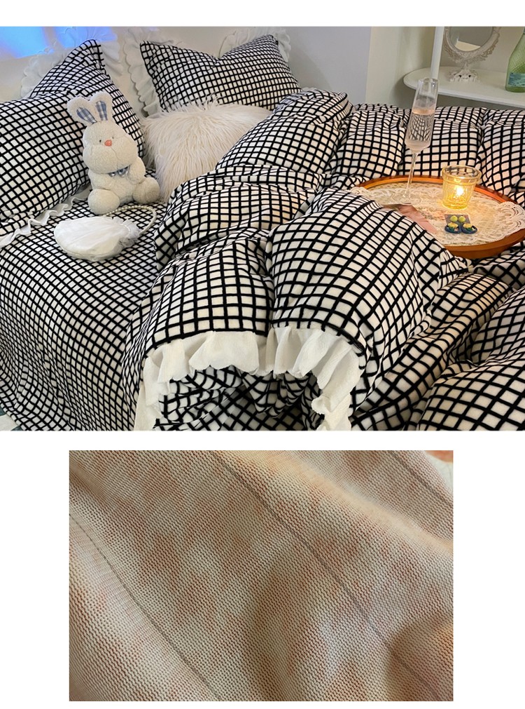 千朵 2021新款韩版牛奶绒保暖四件套 格格黑白