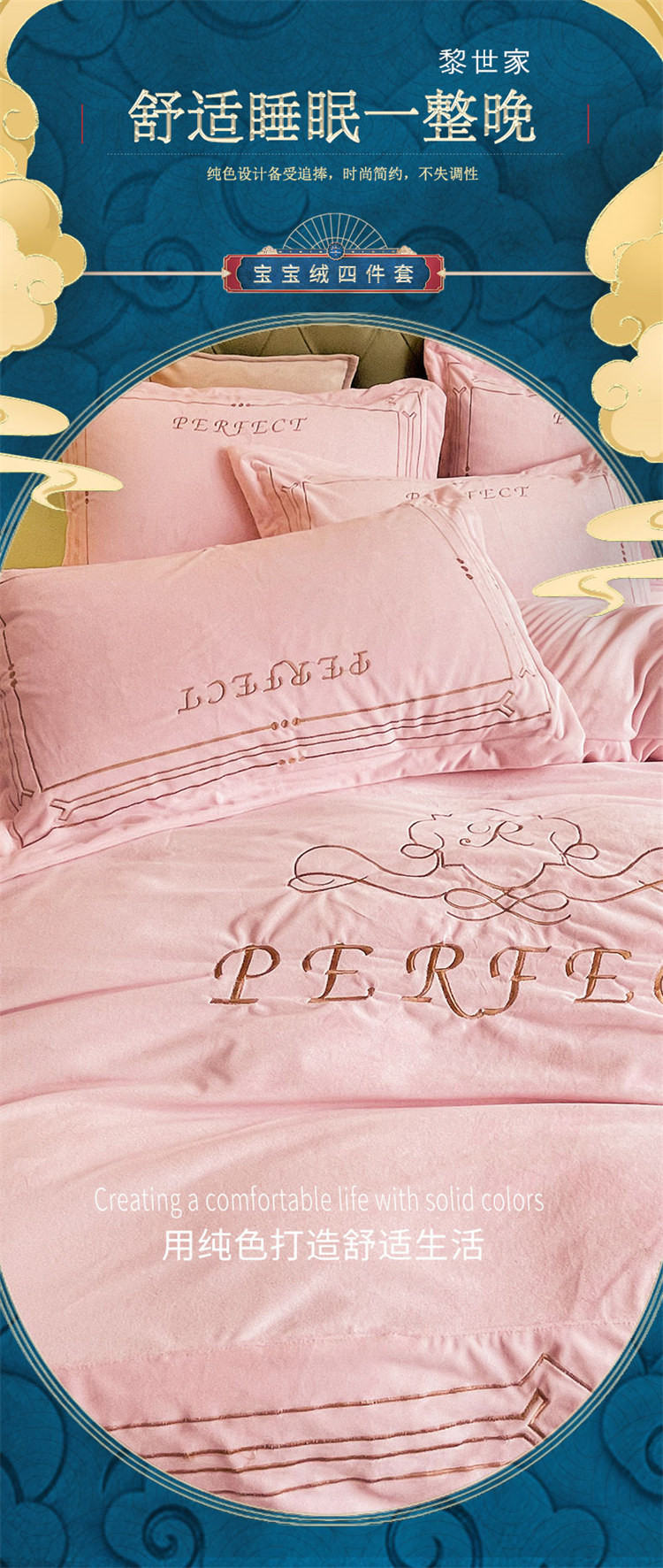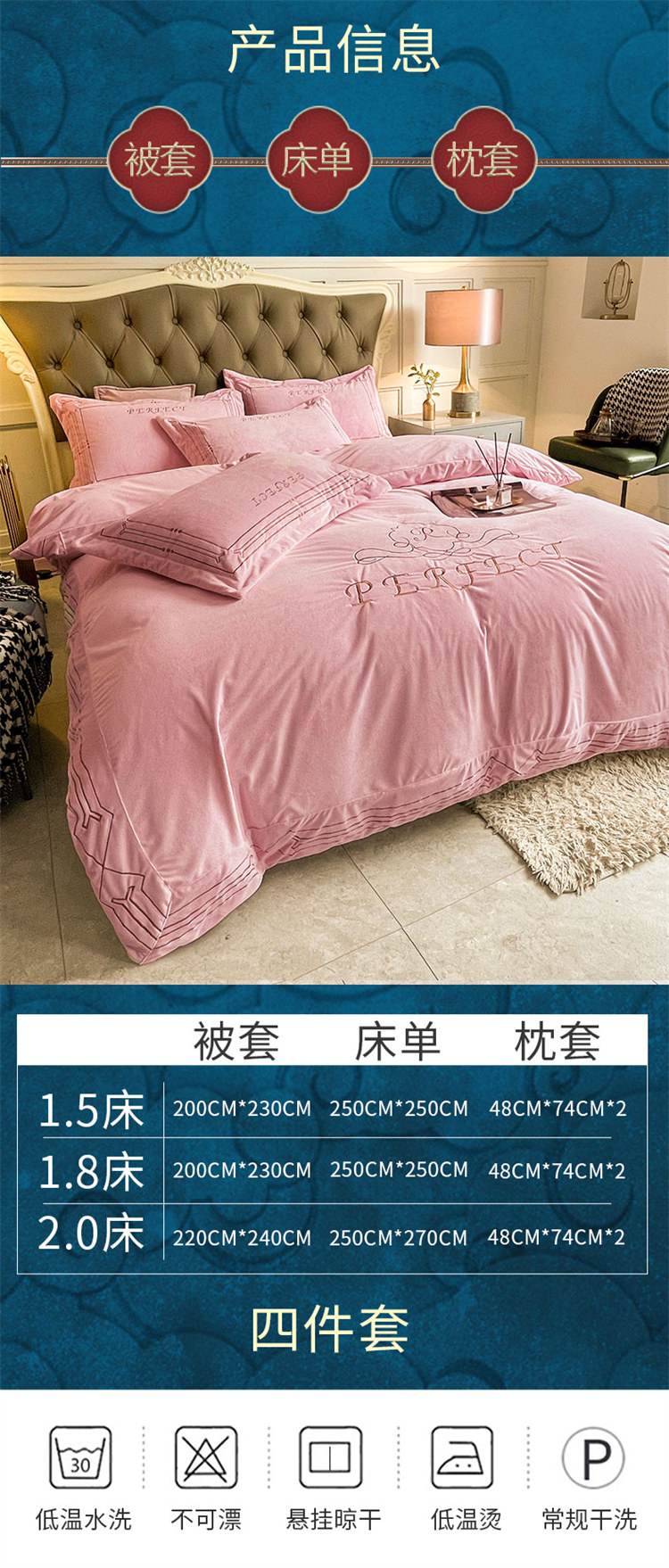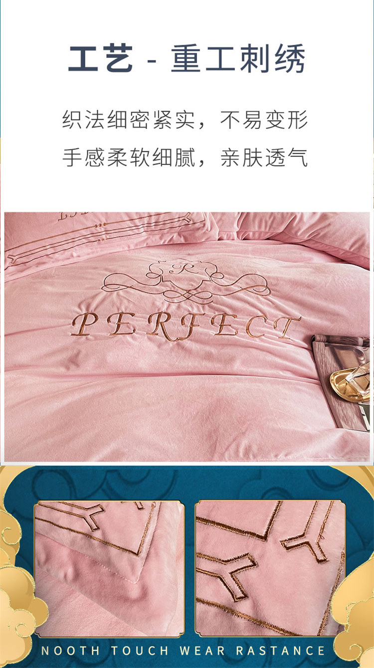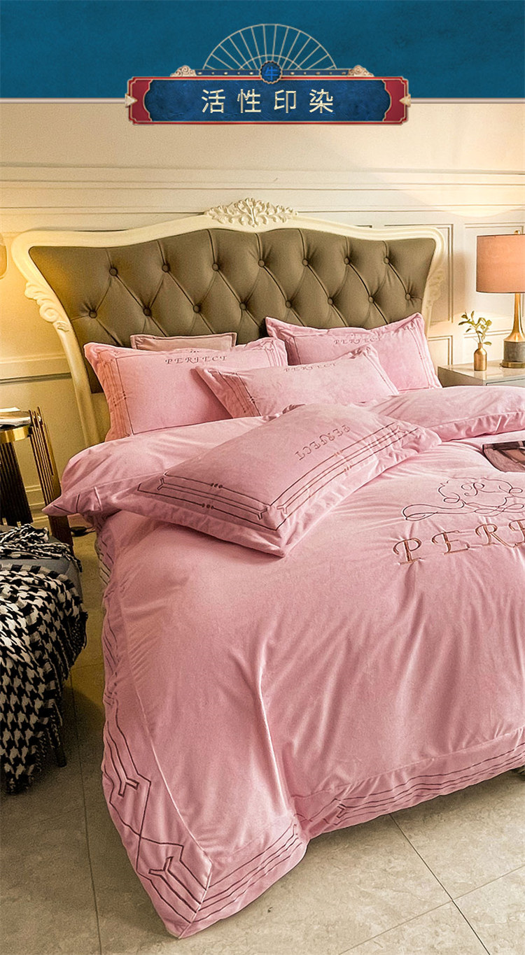 商品名称:铠畅 2021新款巴黎世家宝宝绒刺绣四件套 黎世家粉色
