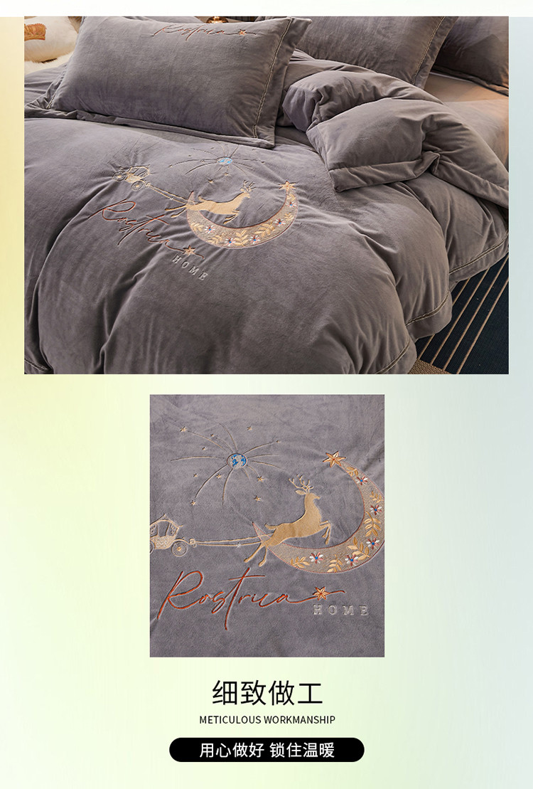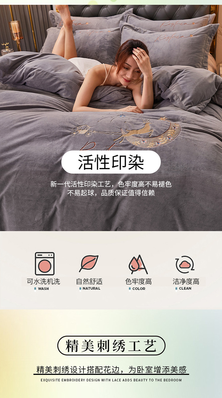 铠畅 2021新款典雅宝宝绒刺绣四件套 典雅-浅灰