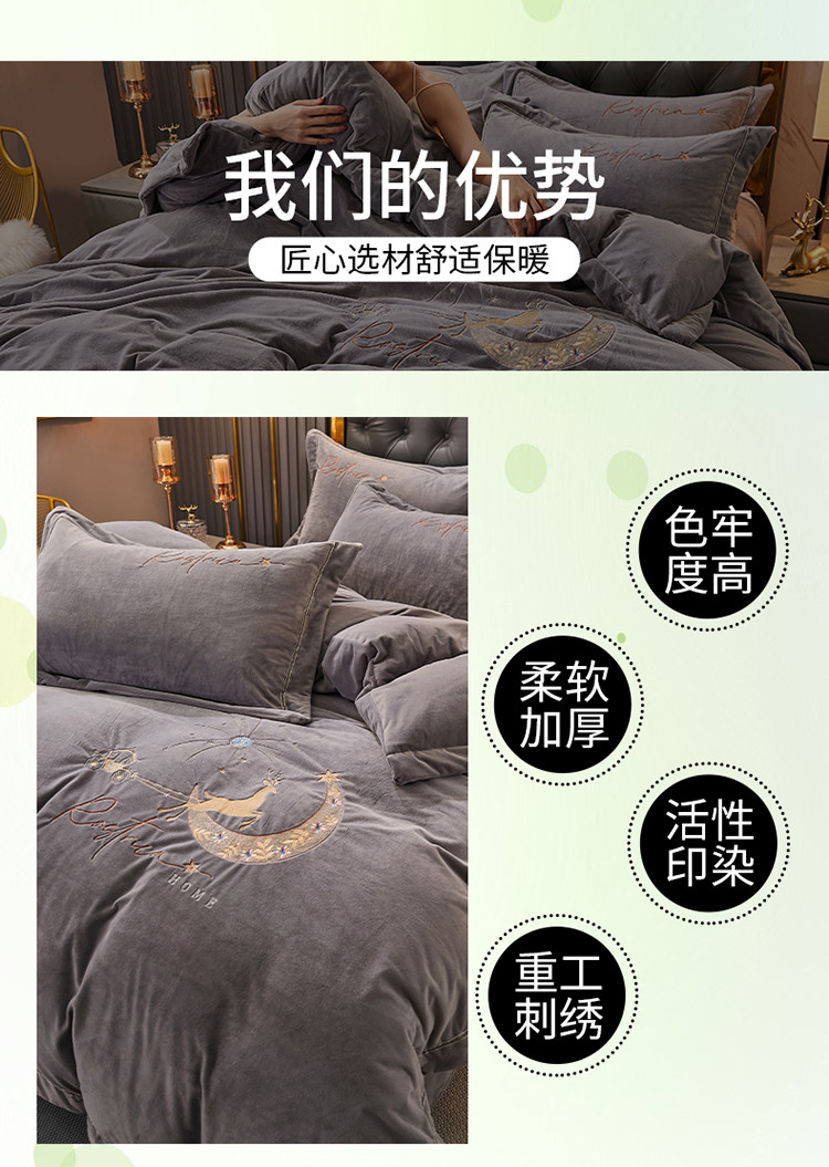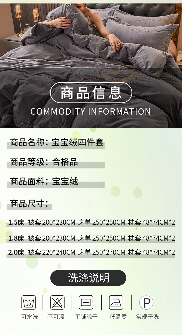 商品名称:铠畅 2021新款典雅宝宝绒刺绣四件套 典雅-浅灰