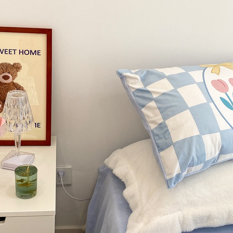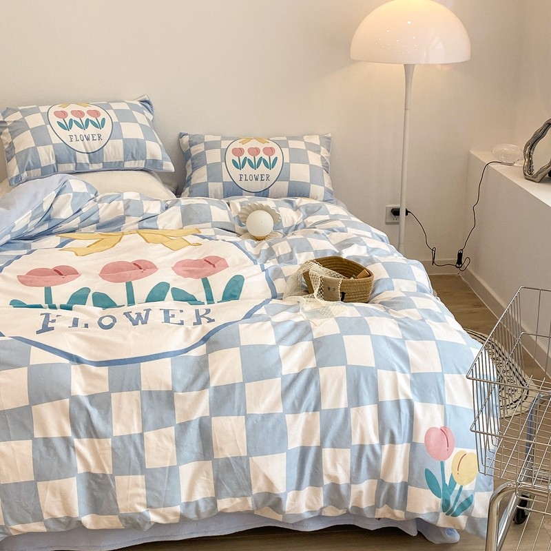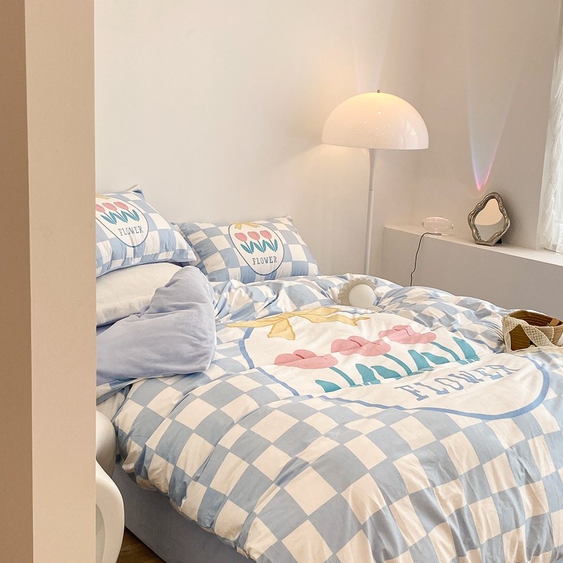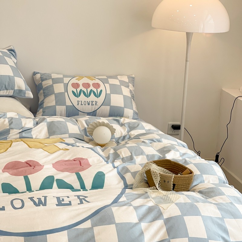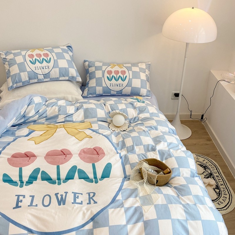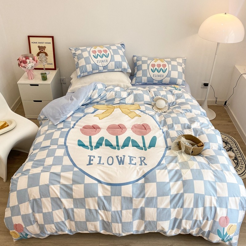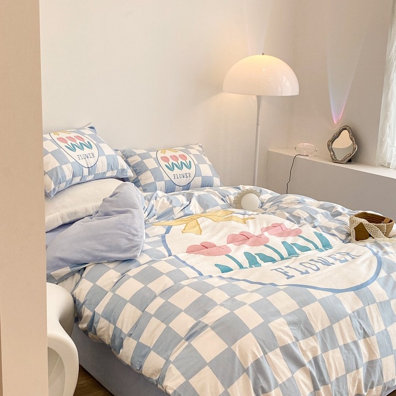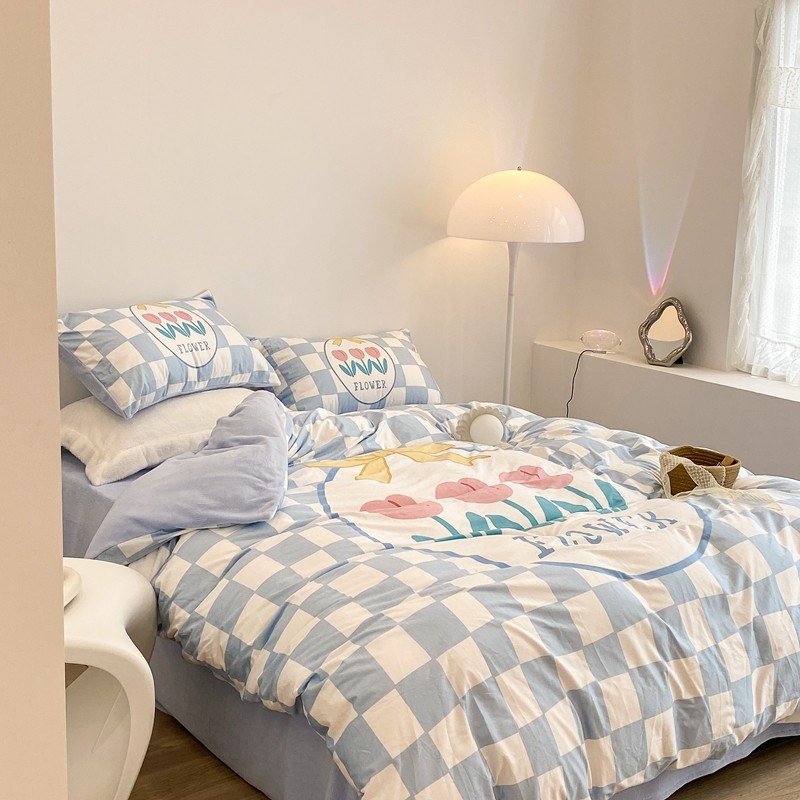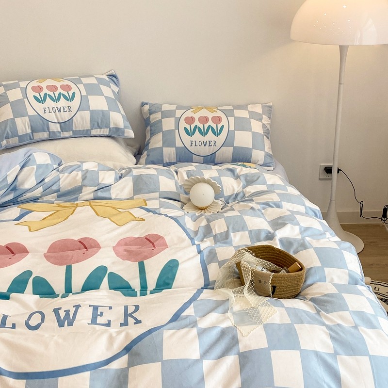 昔可家纺 2021新款大版宝宝牛奶绒四件套 棋盘格花花