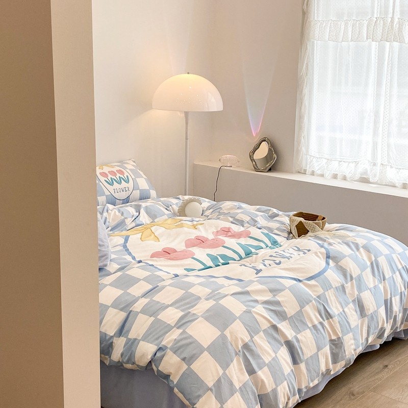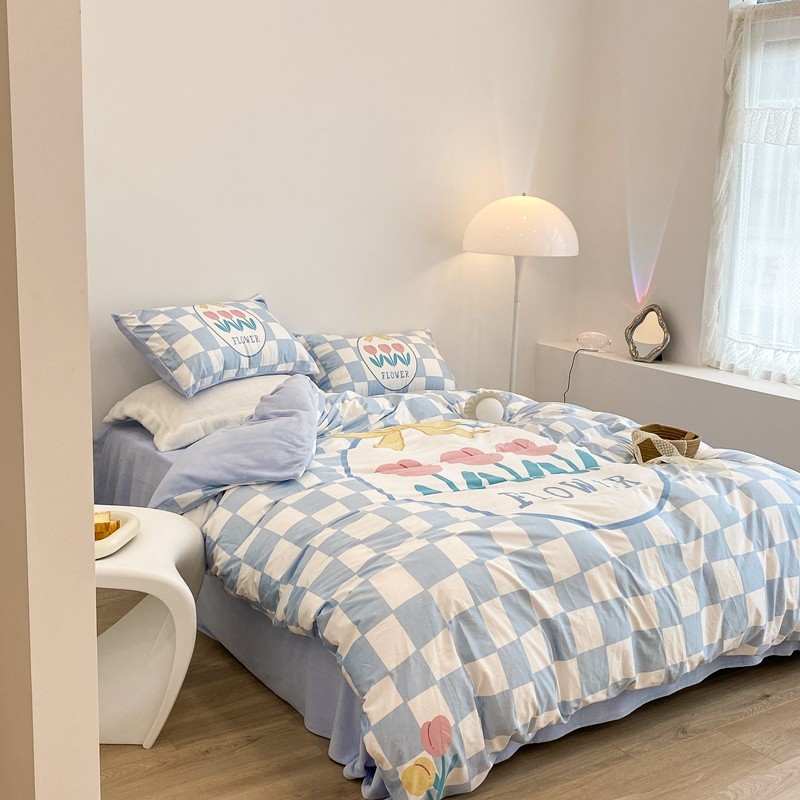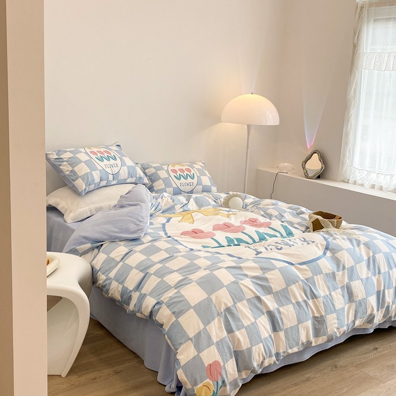 (总)昔可 2023新款全棉ins格子混搭系列四件套,ins简约绿格,粉蓝格,开心果格,学院格纹,粉绿格,海盐兰格,黄绿格,夏日蓝条,芝士黄条,紫芋泥芝士格