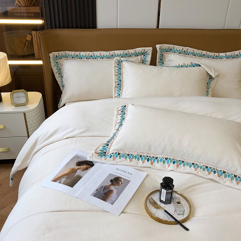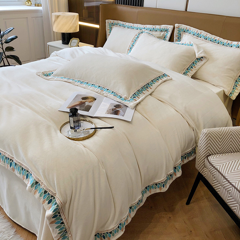 (总)馨蕊家居 2025新款意大利进口高精密刺绣拼角工艺秋冬法式高奢雪貂绒系列-绒雪芙 会员-10【券后控价358/378】,绒雪芙-奶咖,绒雪芙-蔷薇粉,绒雪芙-婉若紫,绒雪芙-月光白