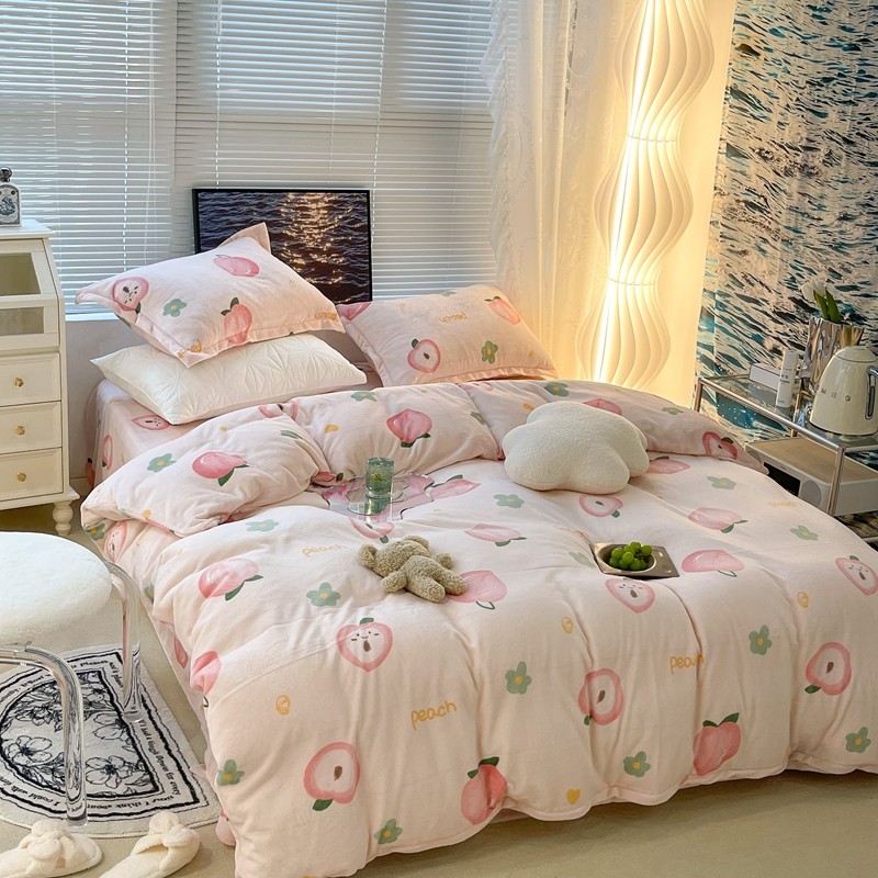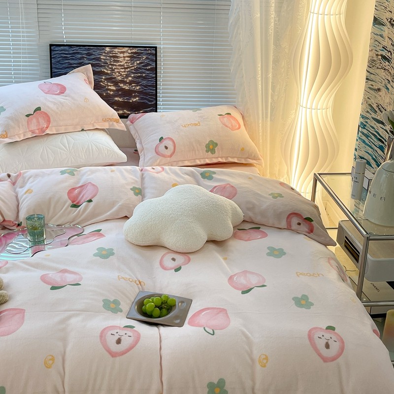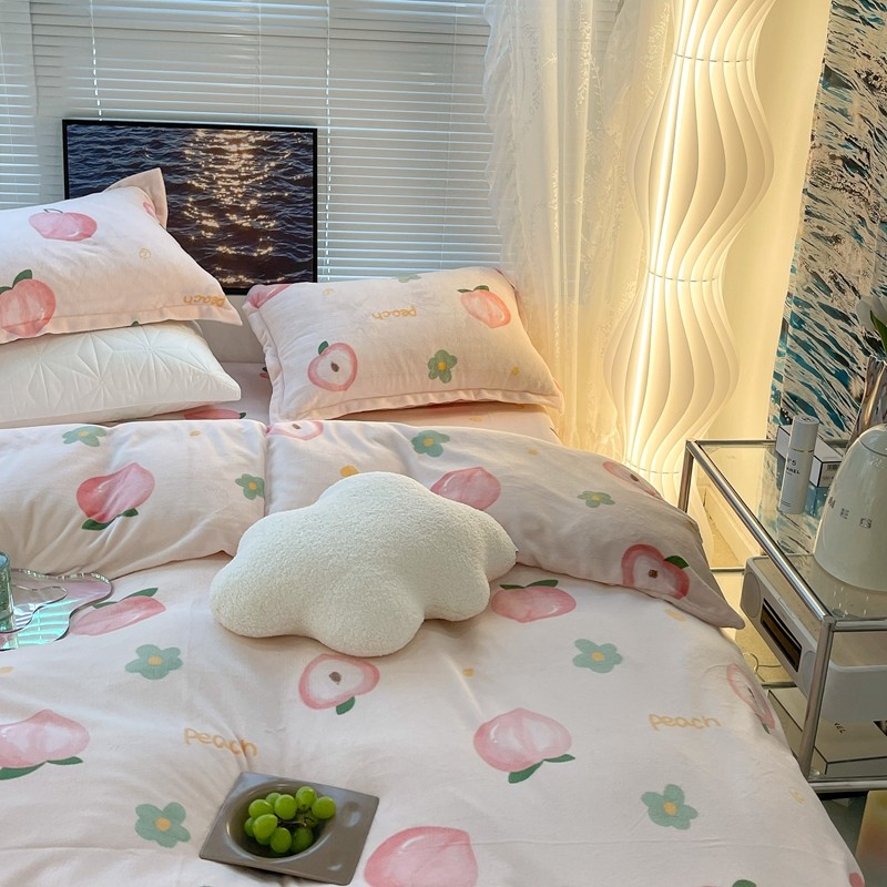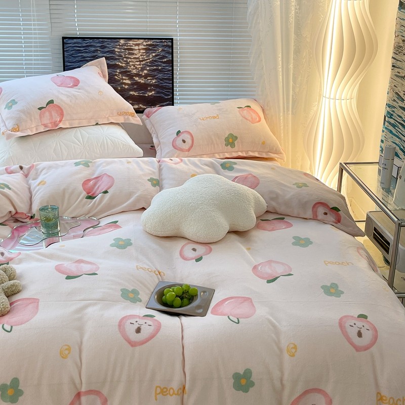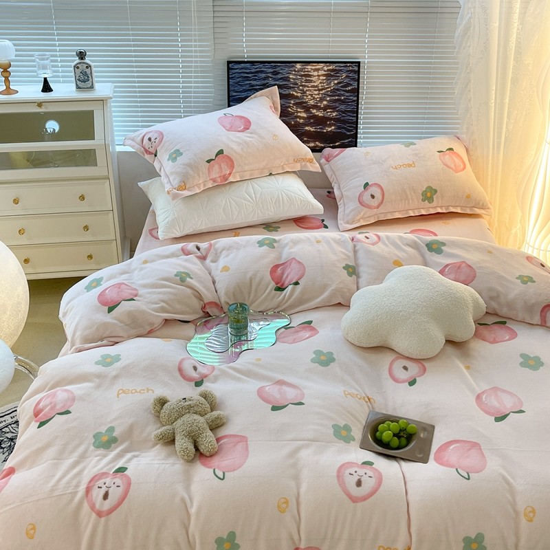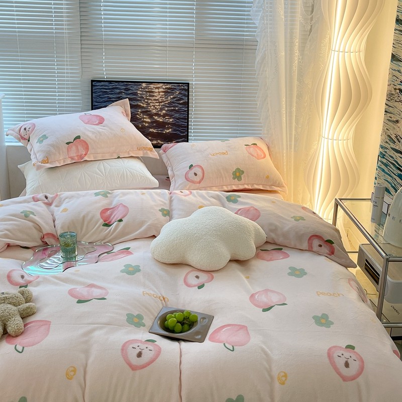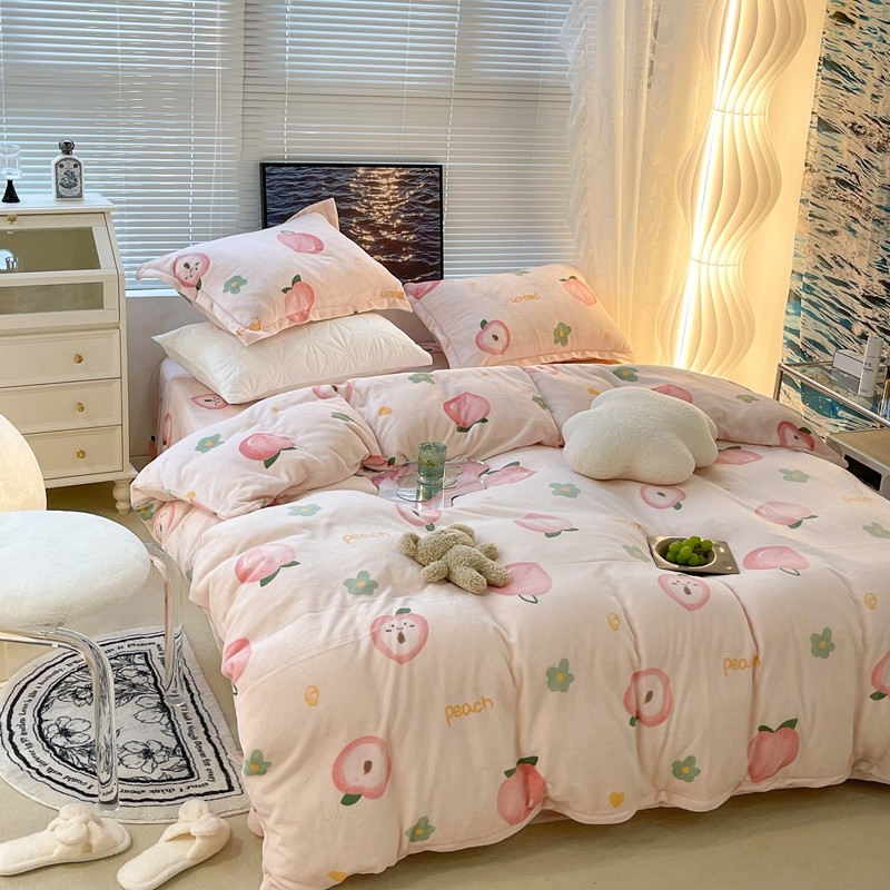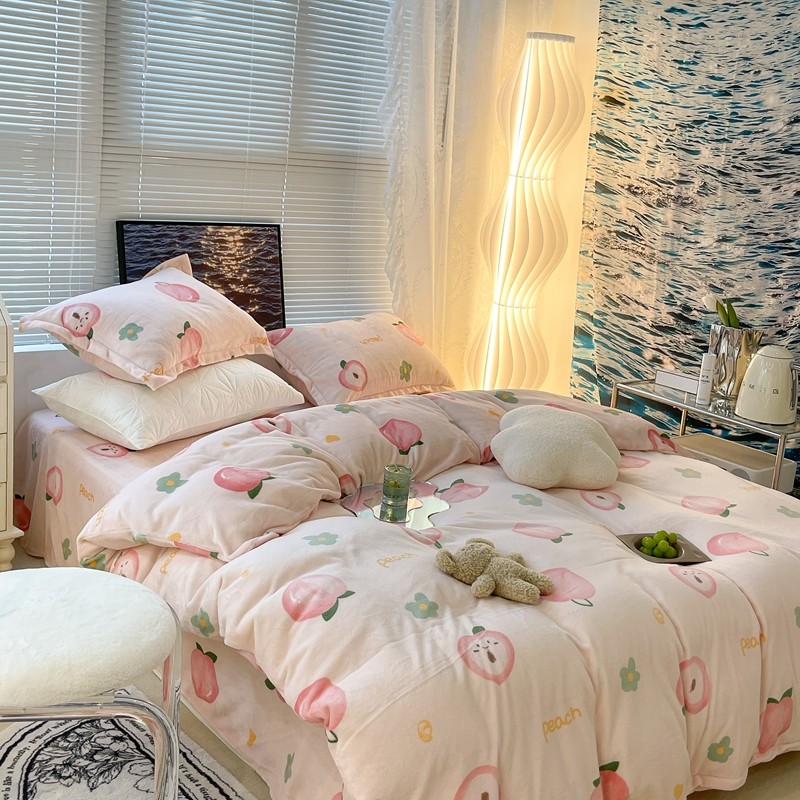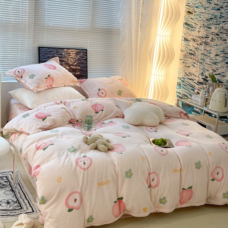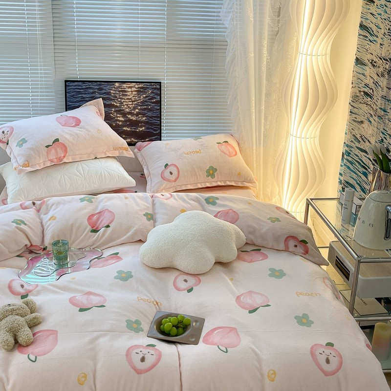 昔可家纺 2021新款牛奶绒四件套-一批 卡通水蜜桃