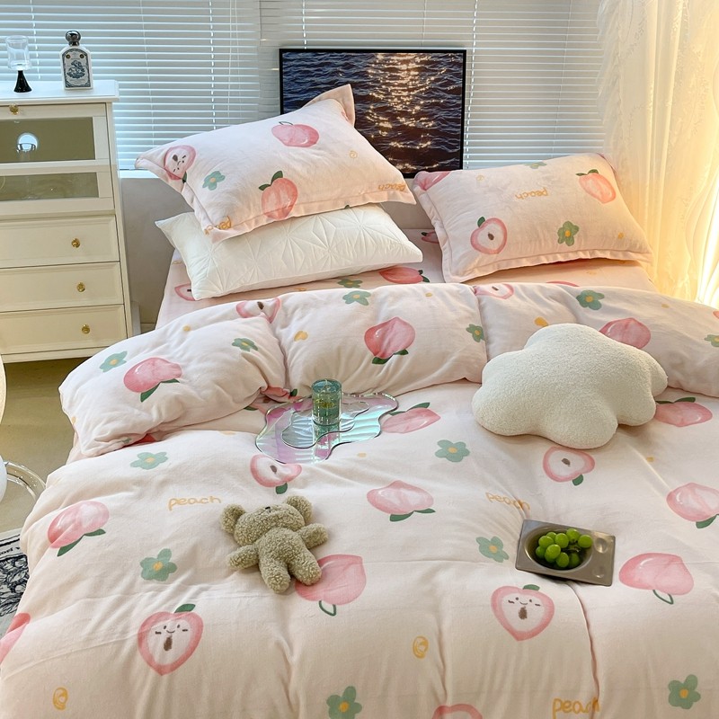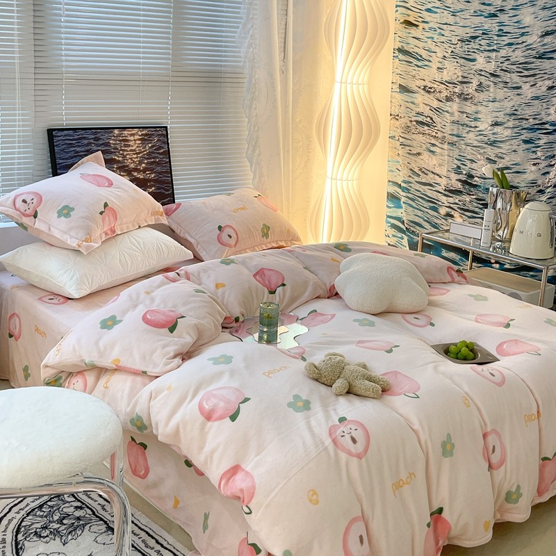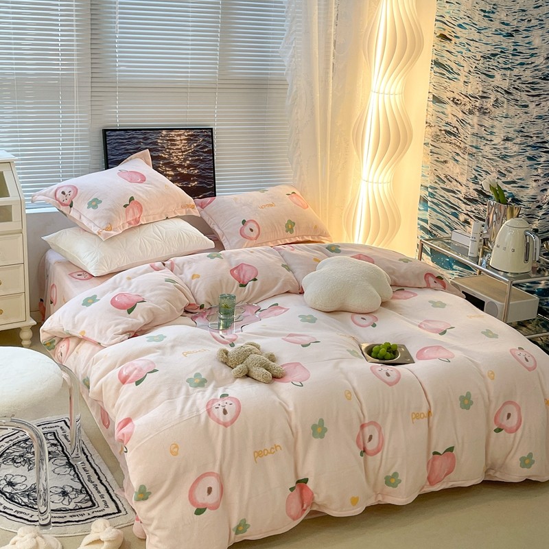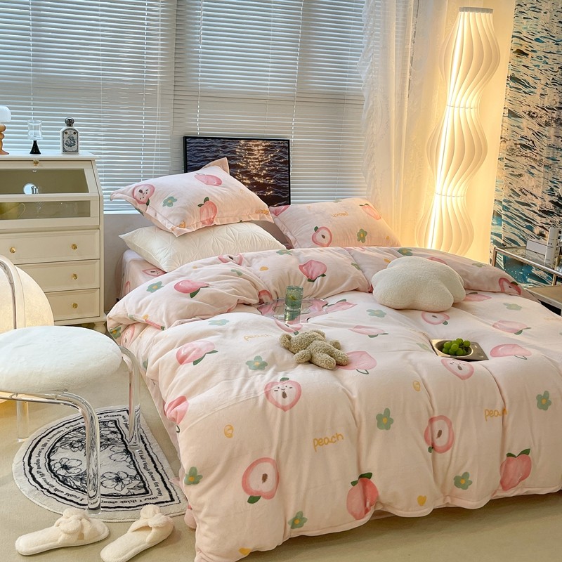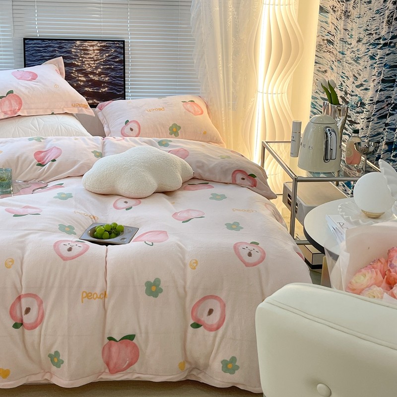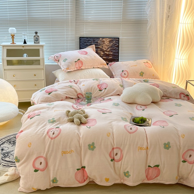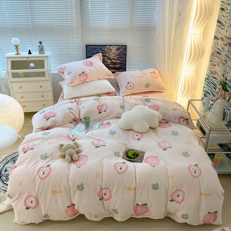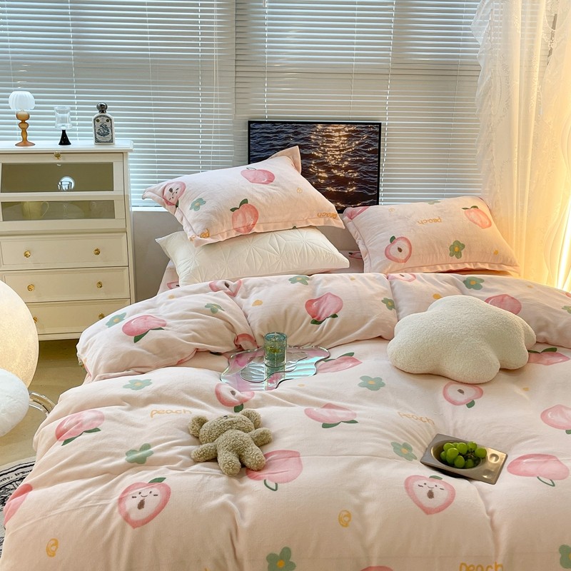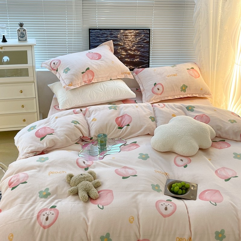 昔可家纺 2021新款牛奶绒四件套-一批 卡通水蜜桃