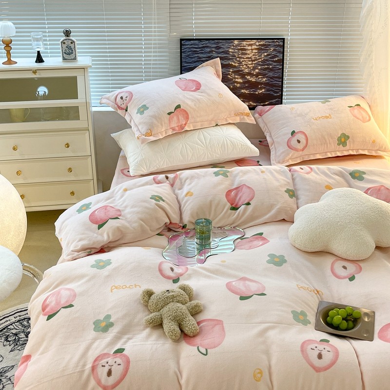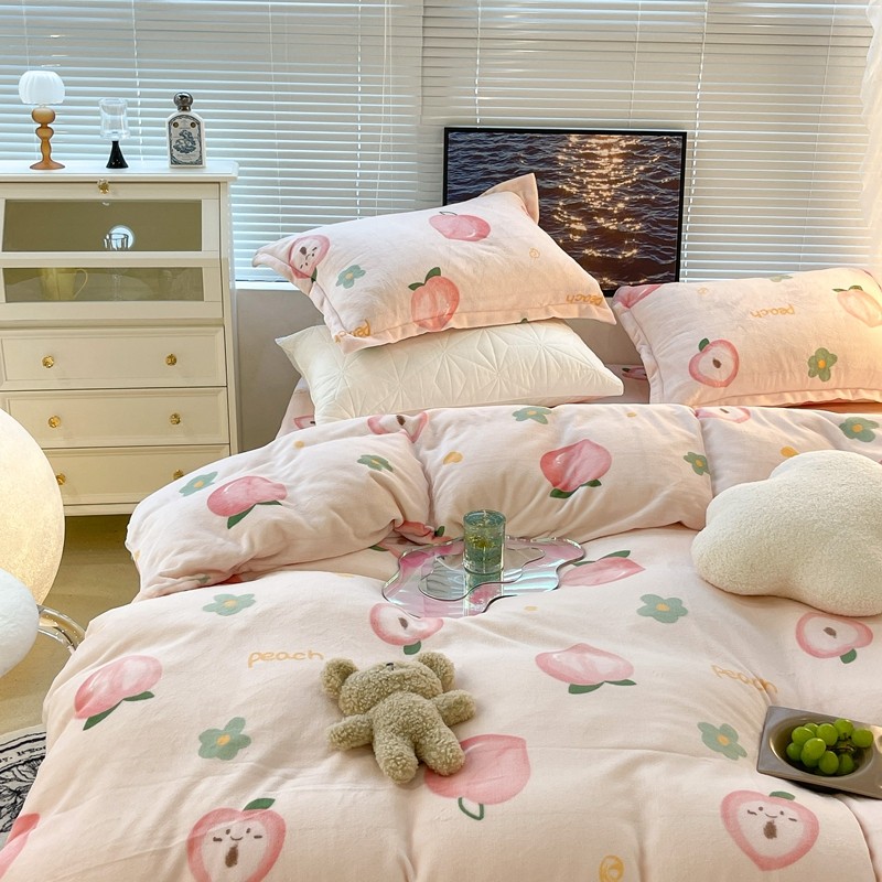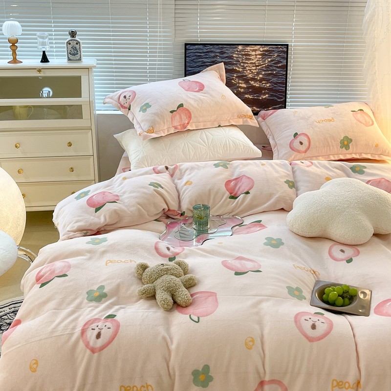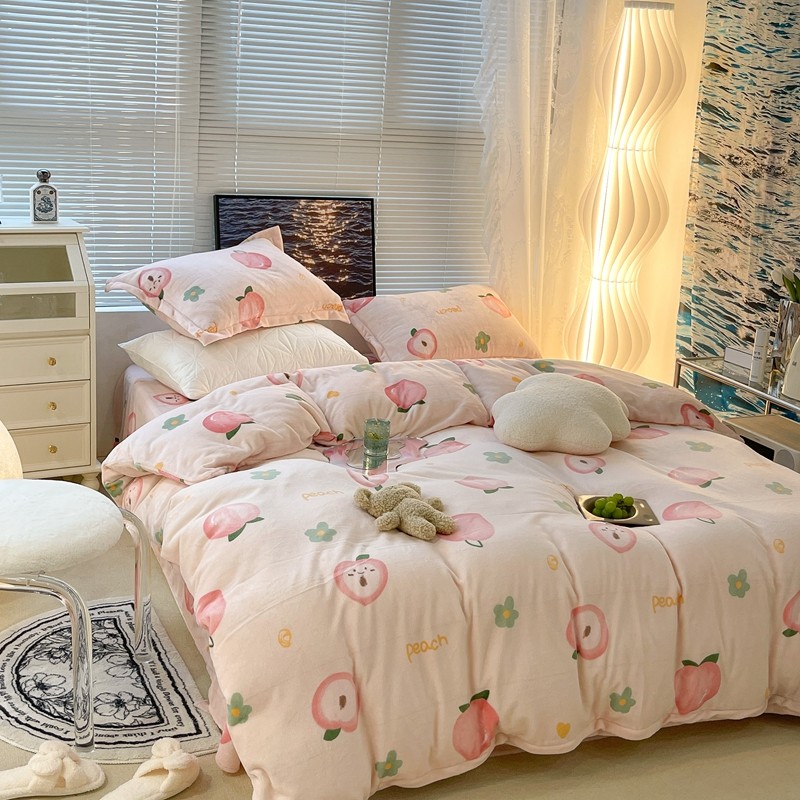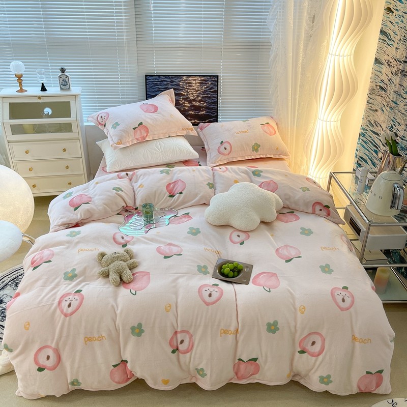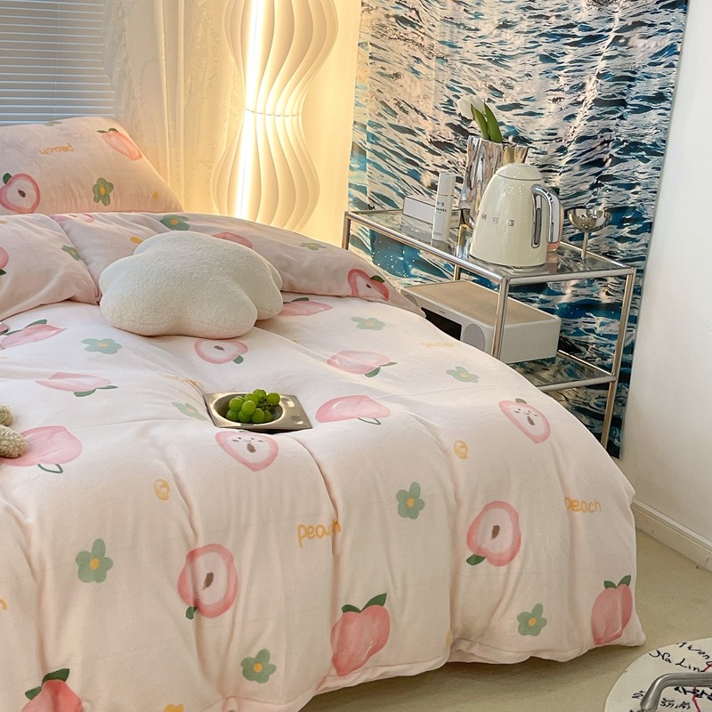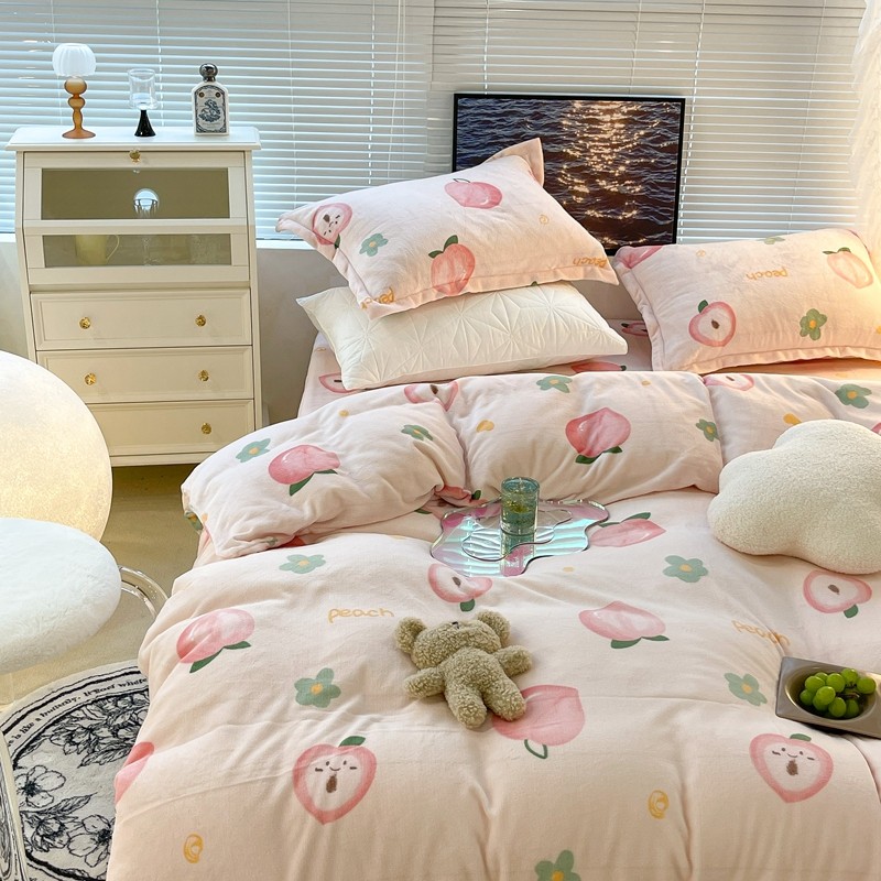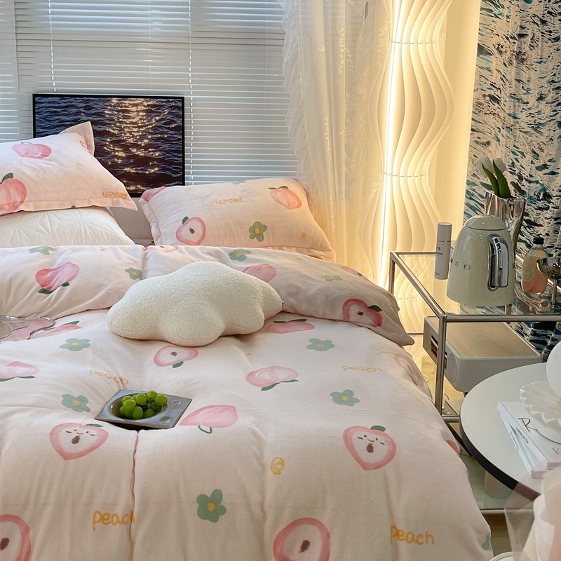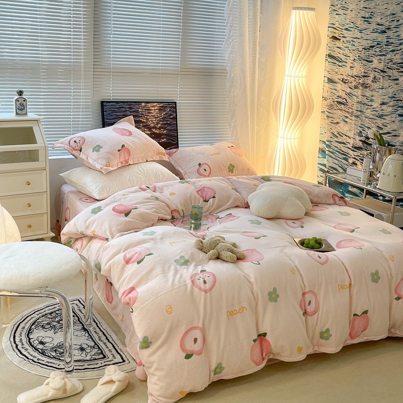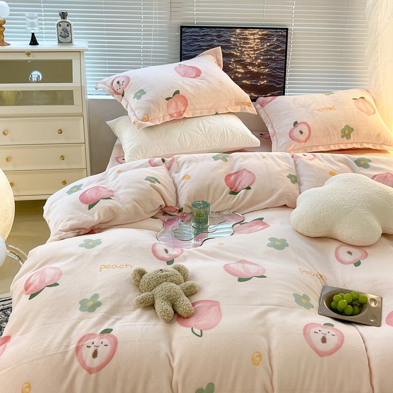 昔可家纺 2021新款牛奶绒四件套-一批 卡通水蜜桃