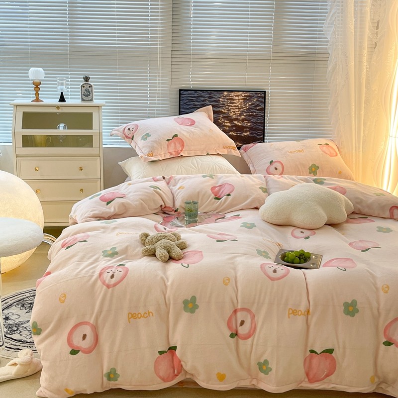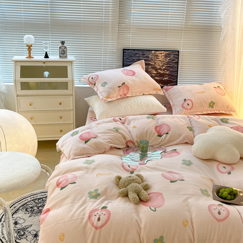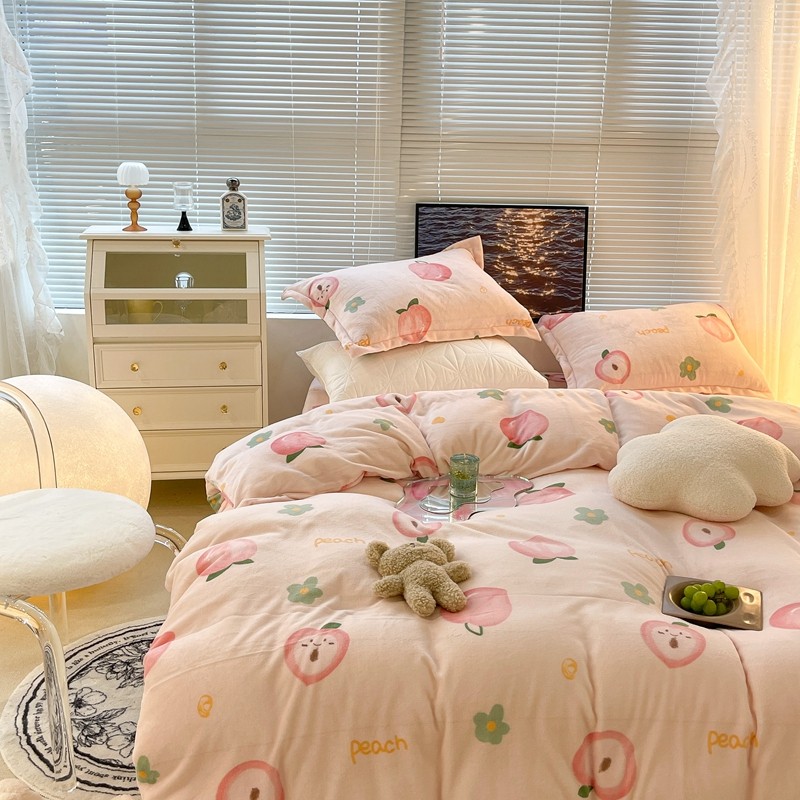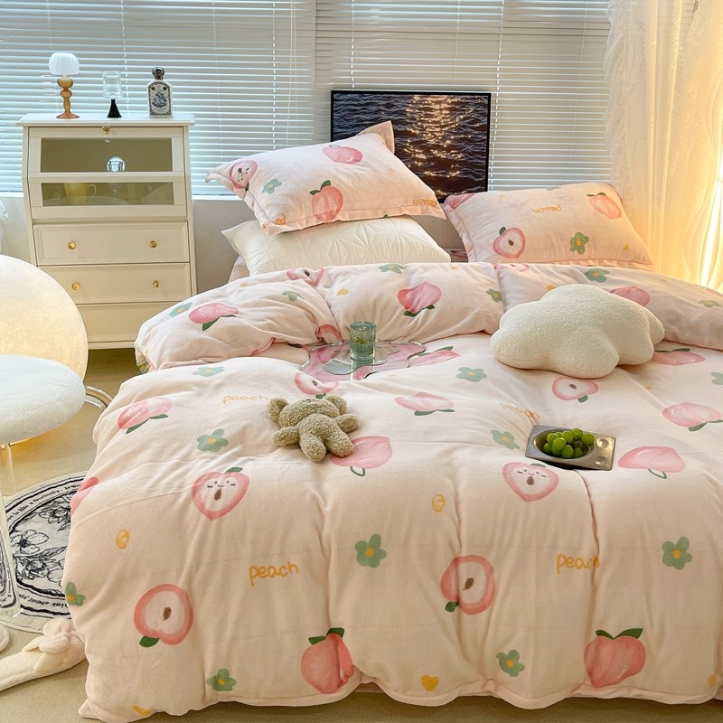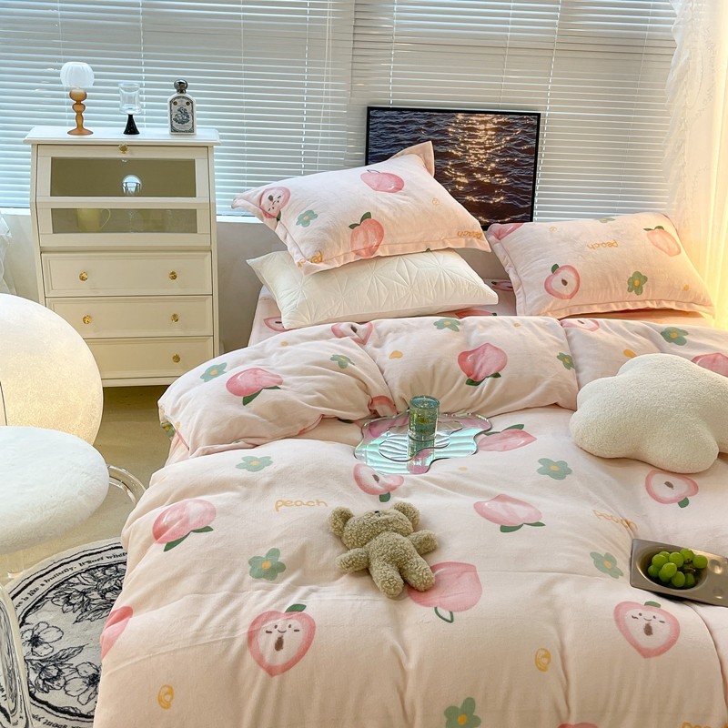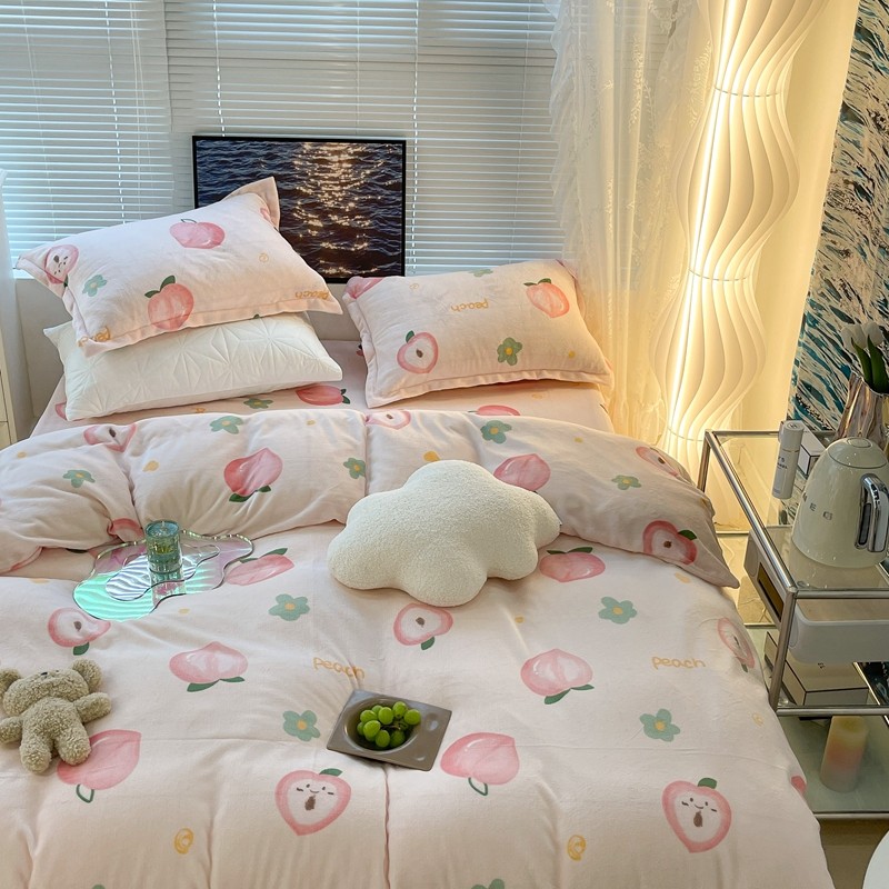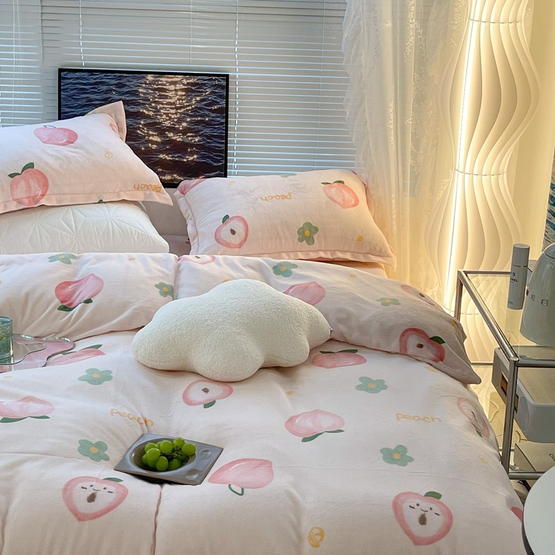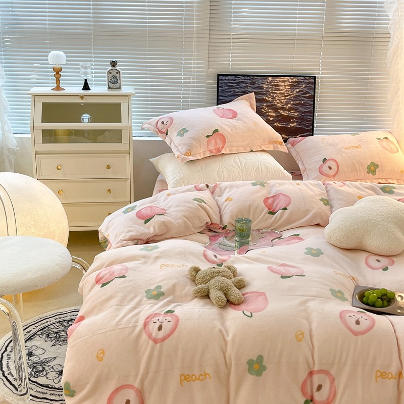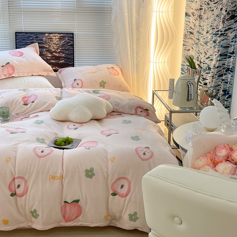 昔可家纺 2021新款牛奶绒四件套-一批 卡通水蜜桃