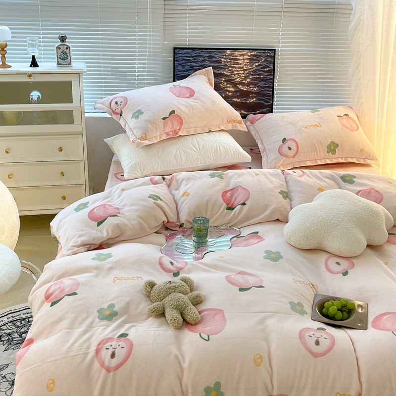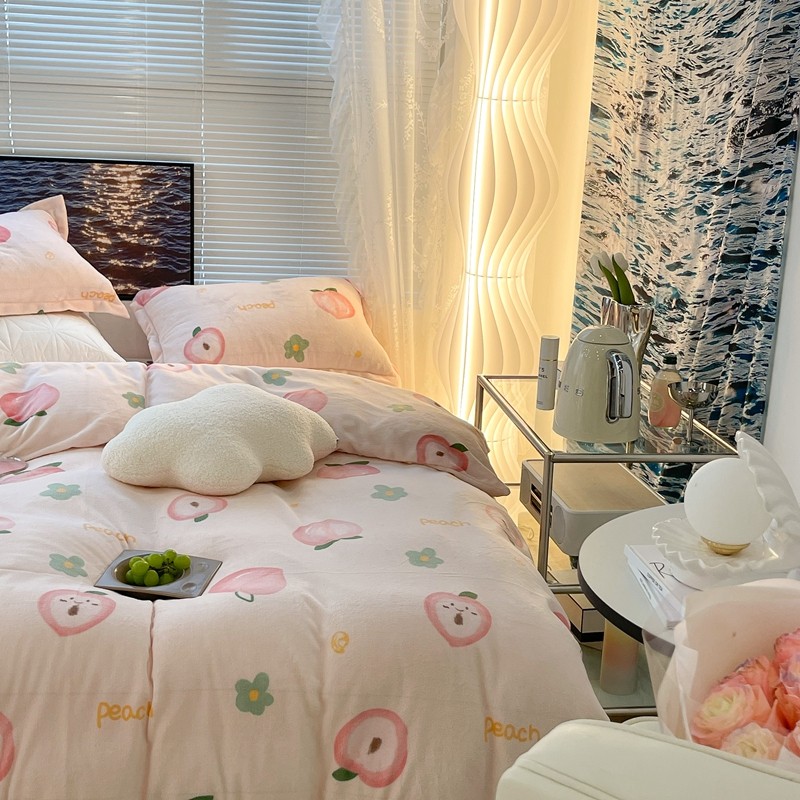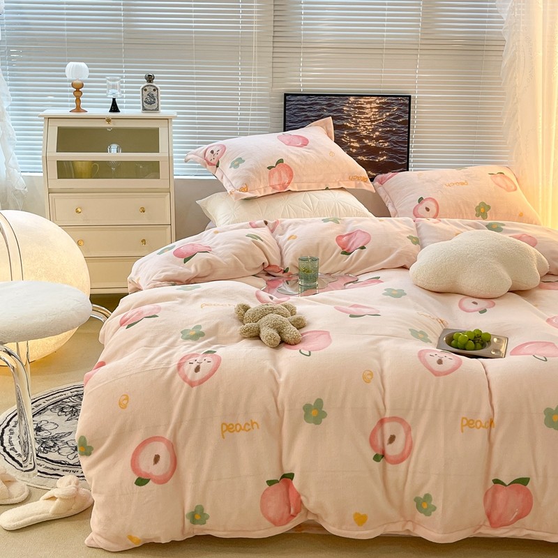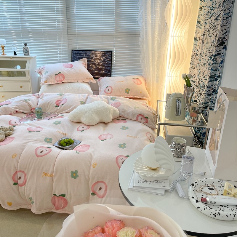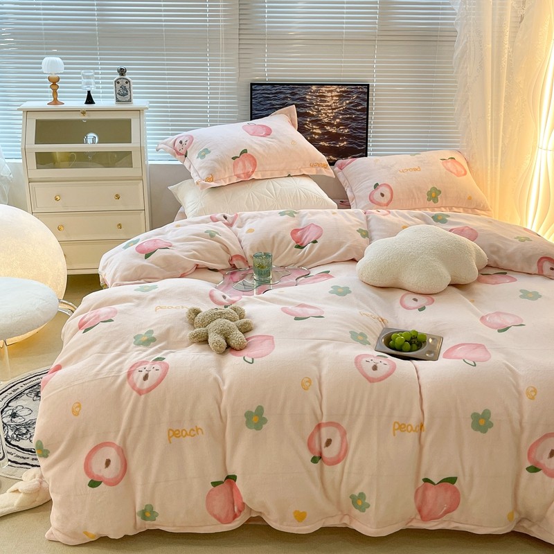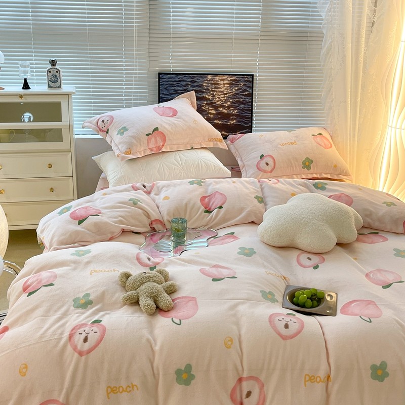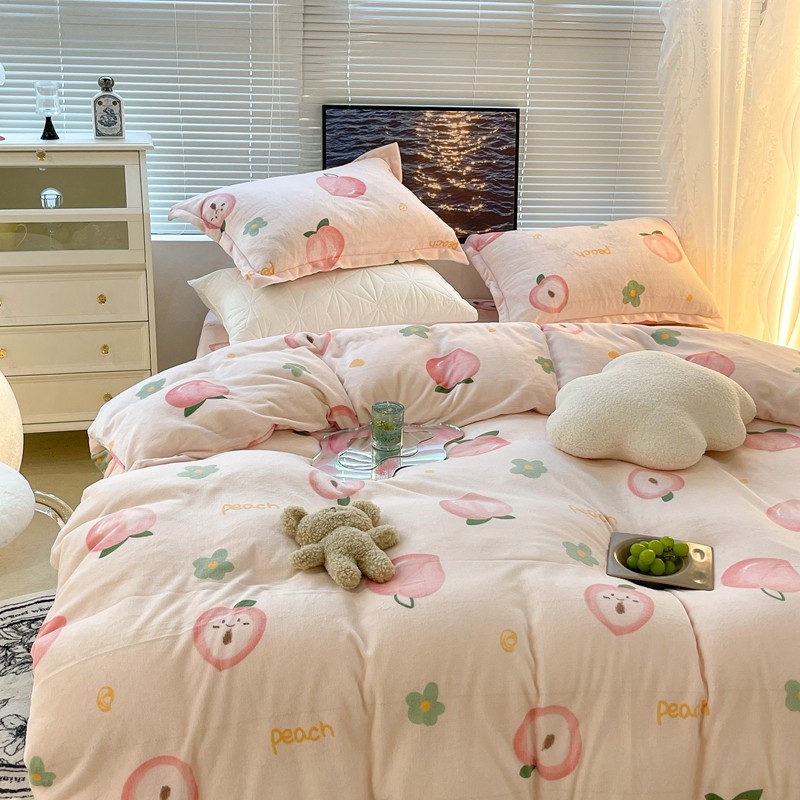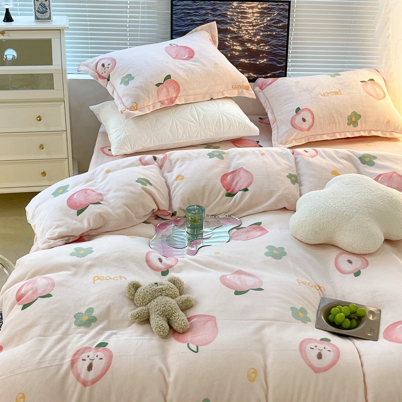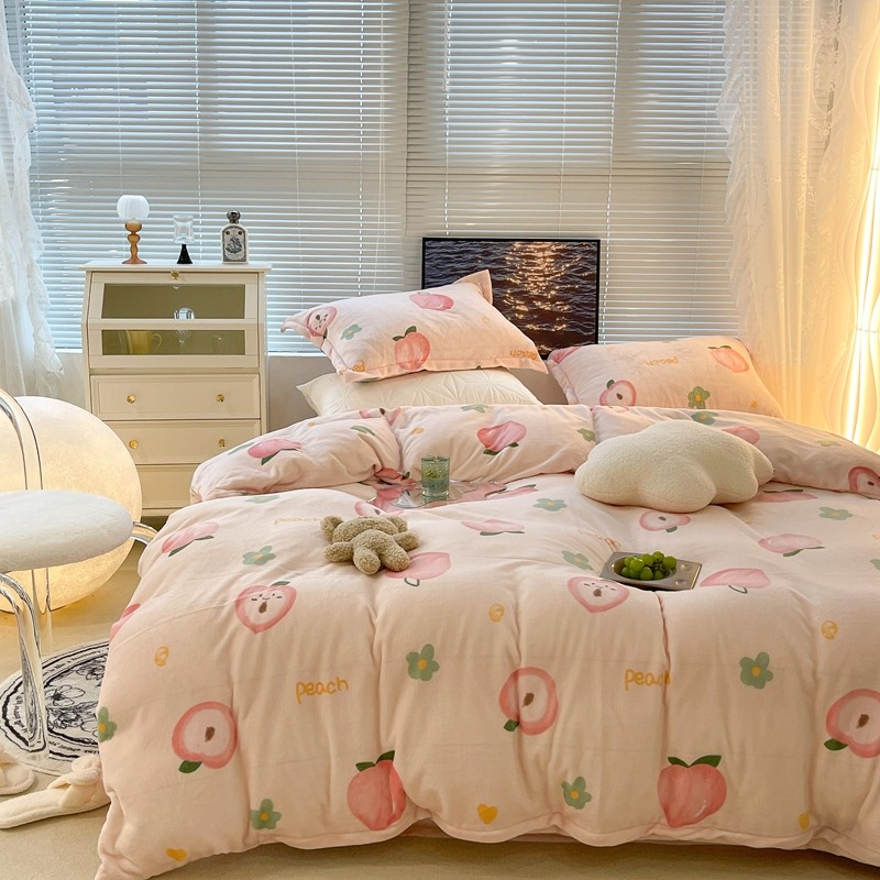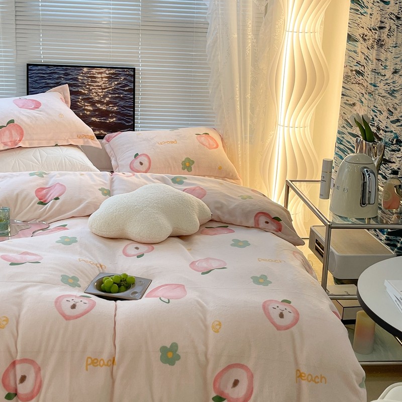 昔可家纺 2021新款牛奶绒四件套-一批 卡通水蜜桃