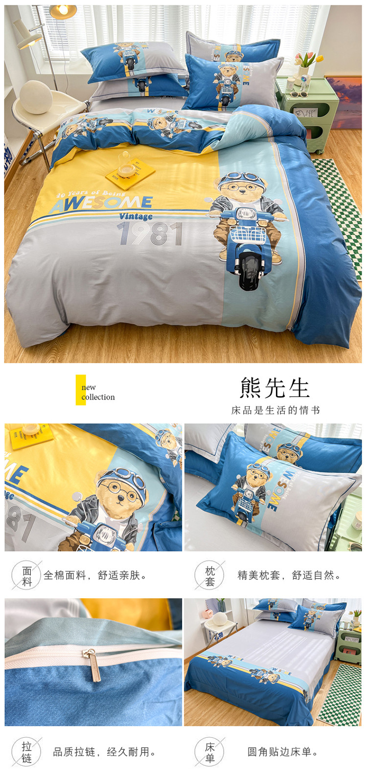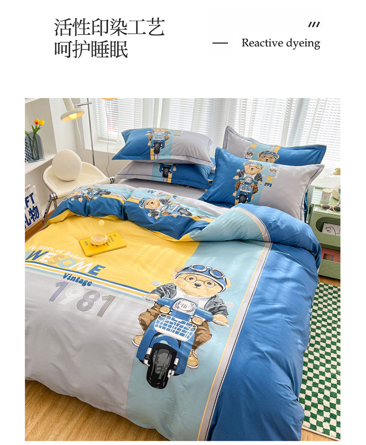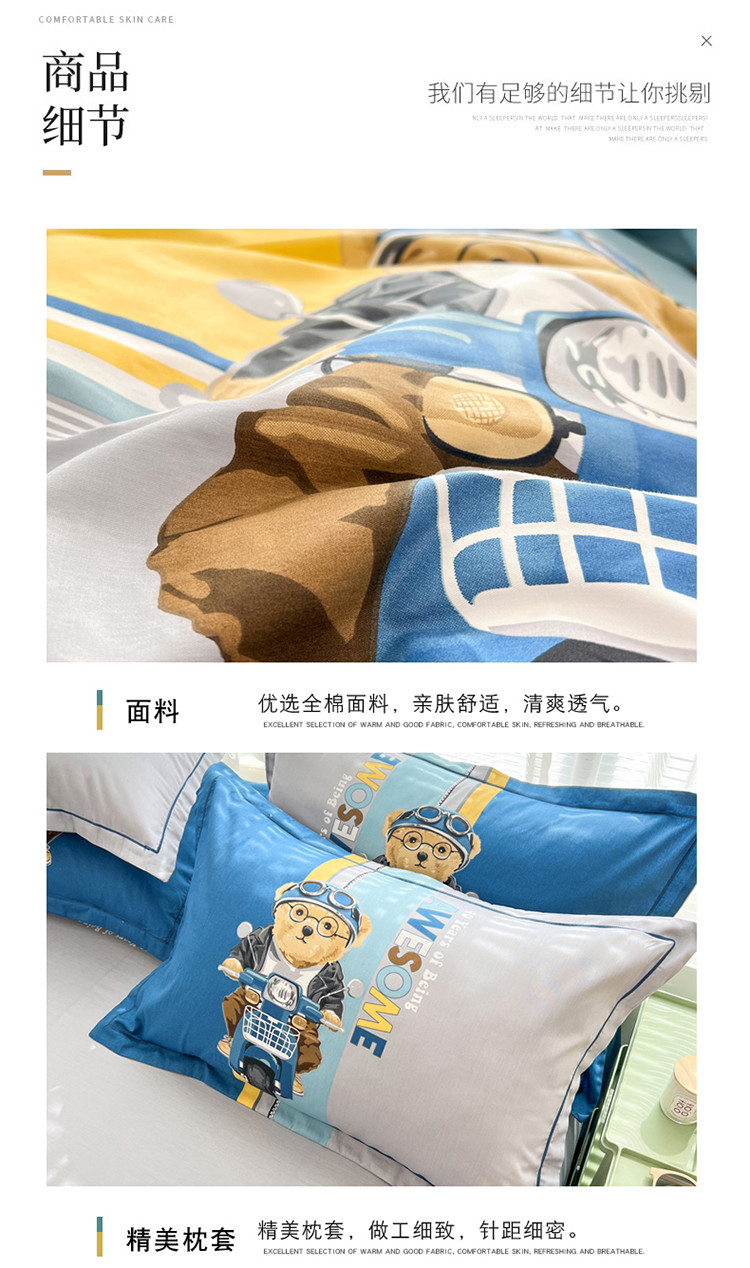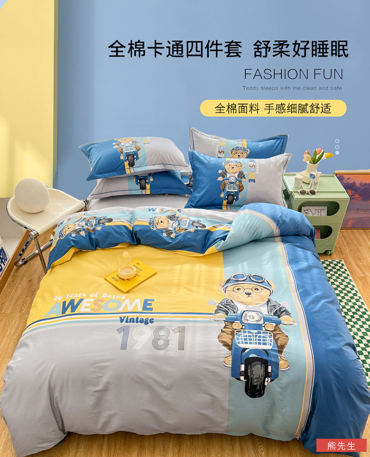 当前位置: 91家纺网 > 商品网购 > 床品套件 > 四件套 > 全棉普通四件套 > 金爱家 2023新款大版纯棉卡通四件套 熊先生