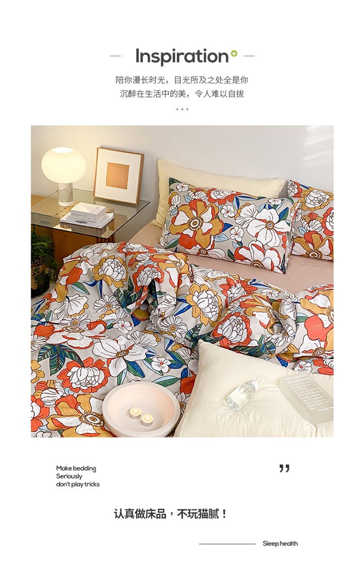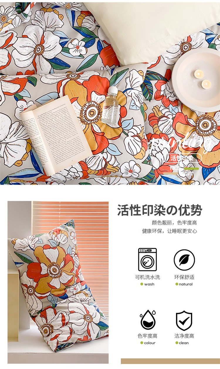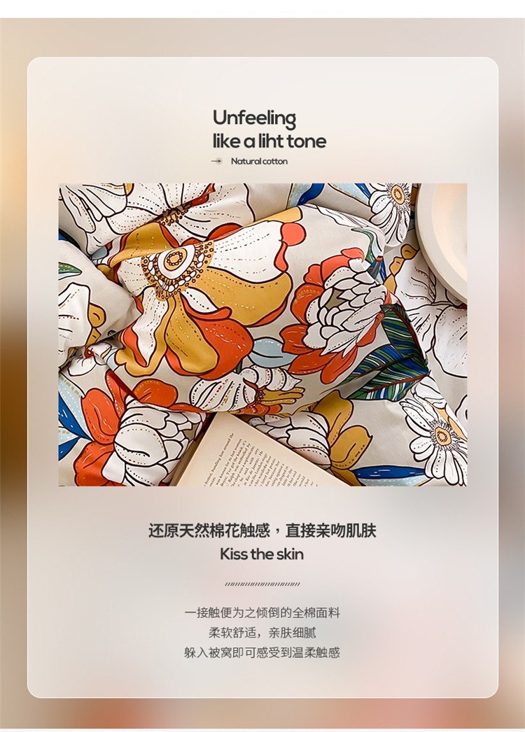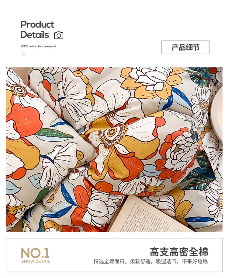 商品名称:窝米 2022新款全棉印花活性四件套花卉系列 绚烂