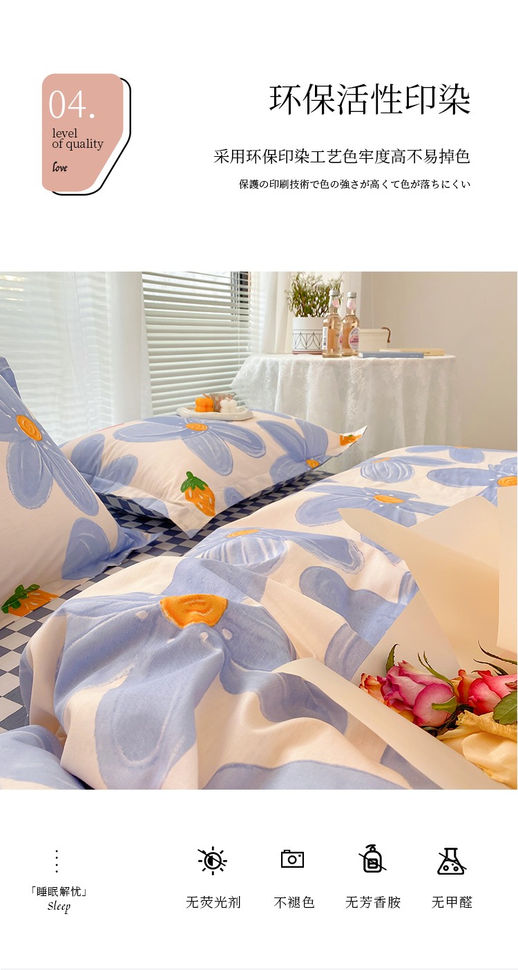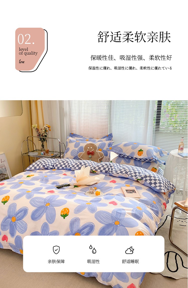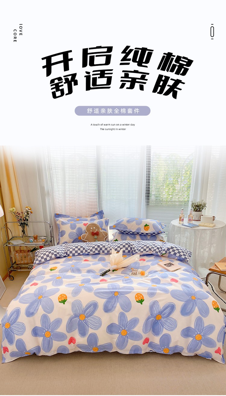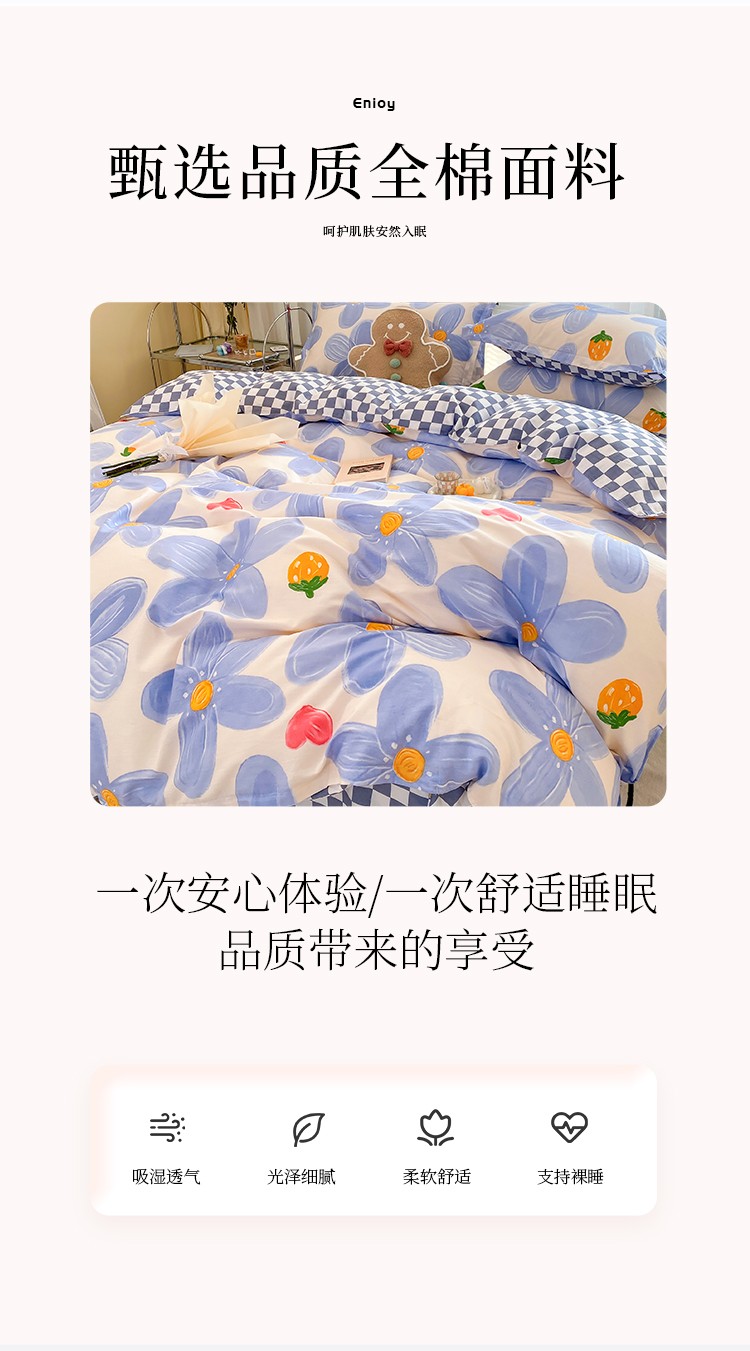 尚帛 2024新款全棉12868印花四件套 草莓爱恋-蓝
