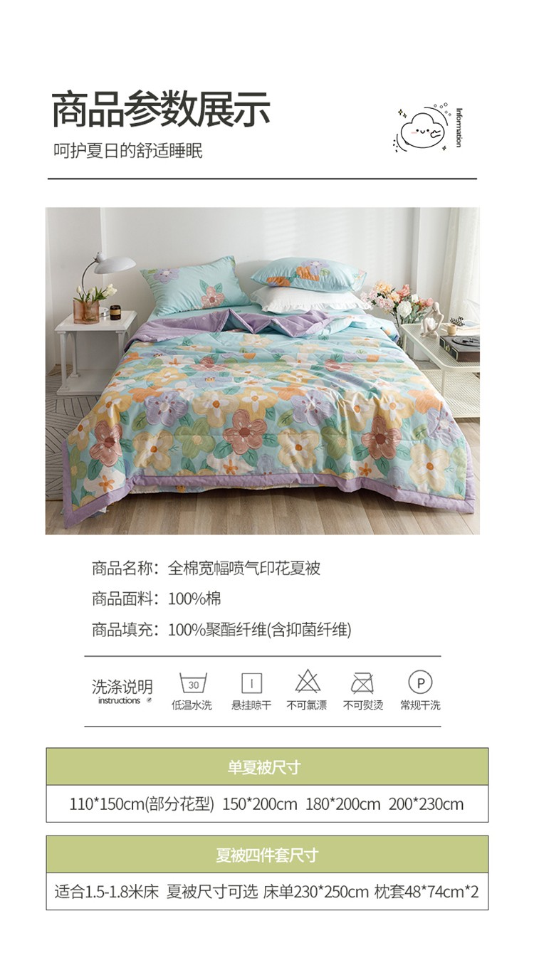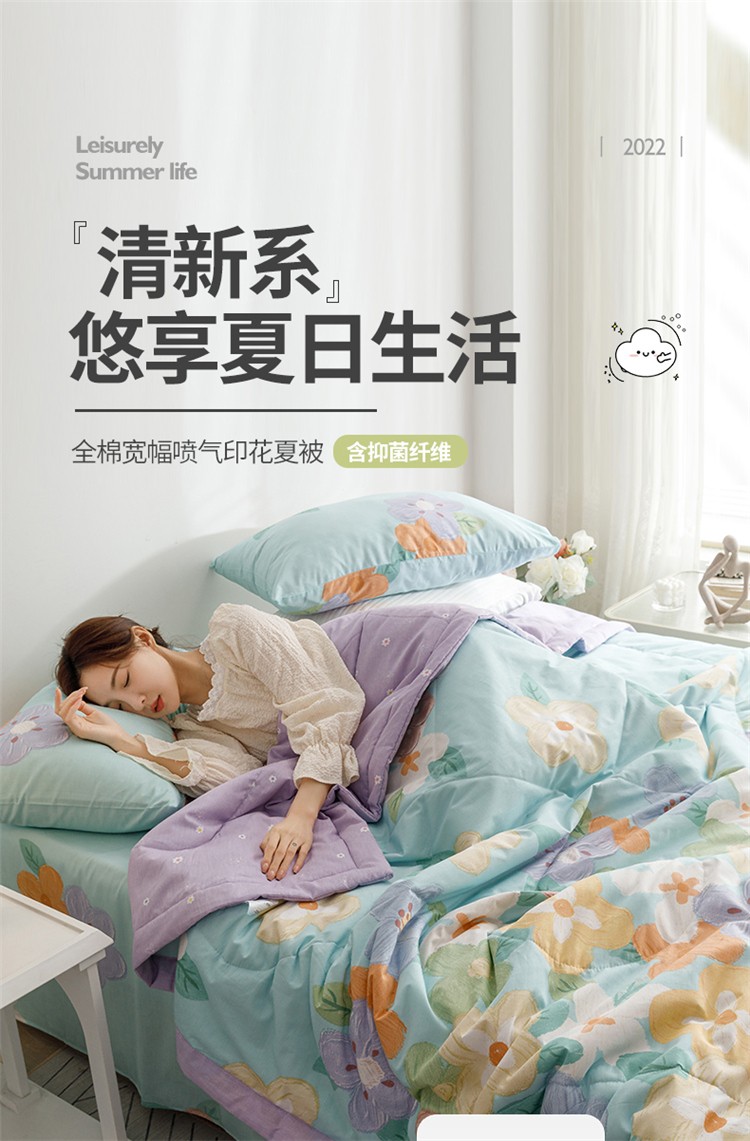 当前位置: 91家纺网 > 商品网购 > 床品套件 > 四件套 > 夏被四件套 > 莱宁被业2023新款13070纯棉抗菌夏凉被全棉夏被四件套 氧气格调蓝