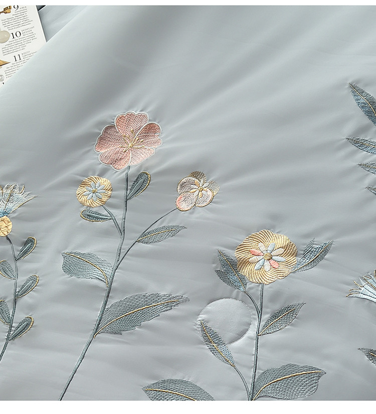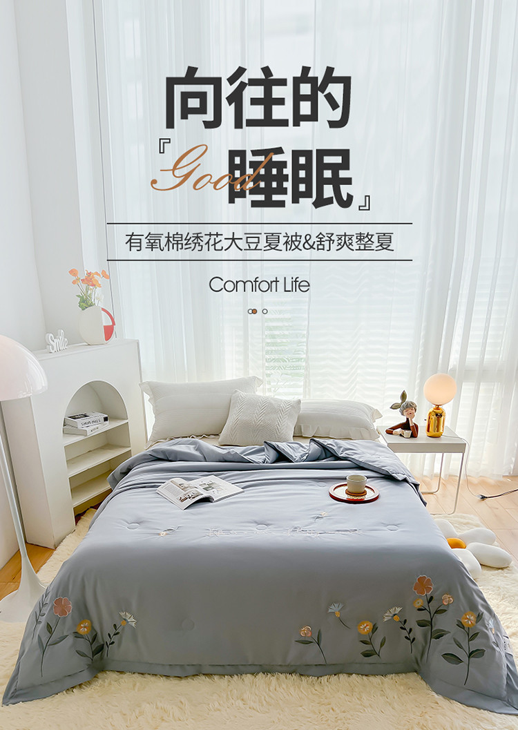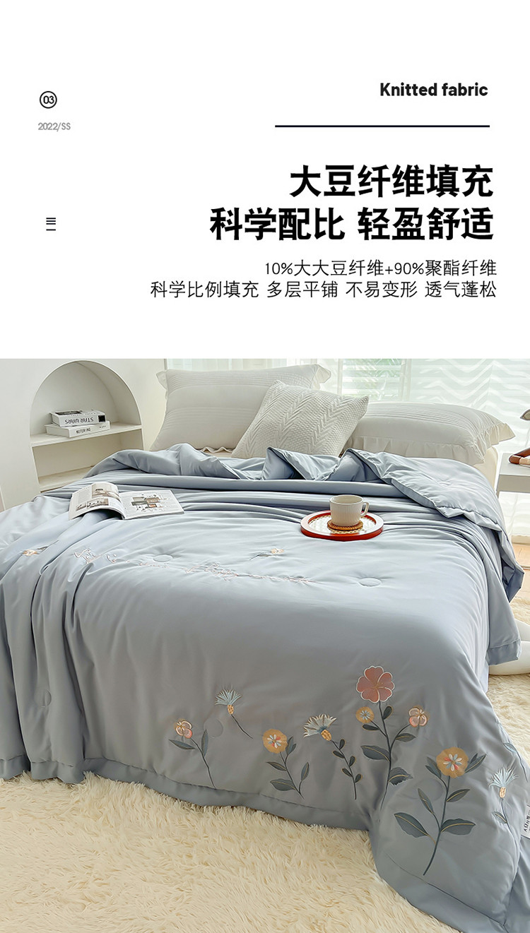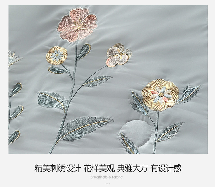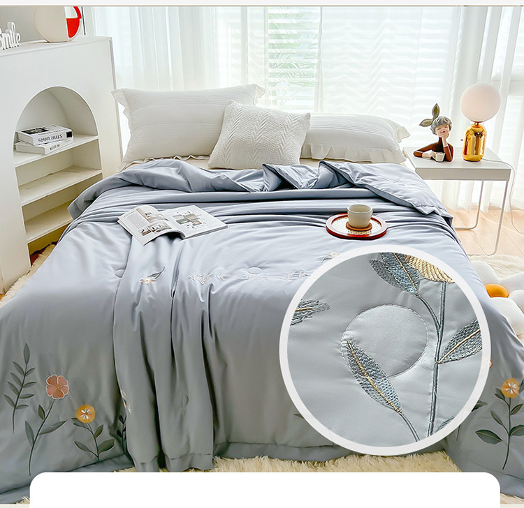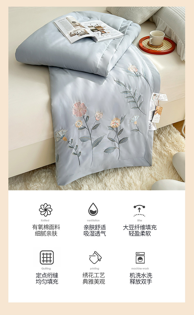 商品名称:澳洲羽 水氧棉刺绣拼角大豆夏凉被直播爆款空调被子 向阳花-灰