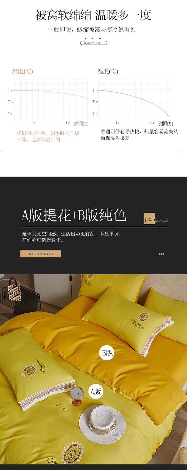 (总)凡客家居 2024新款高克重牛奶绒绣花拼角四件套,海洋蓝,奶油咖,深卡其,樱花粉
