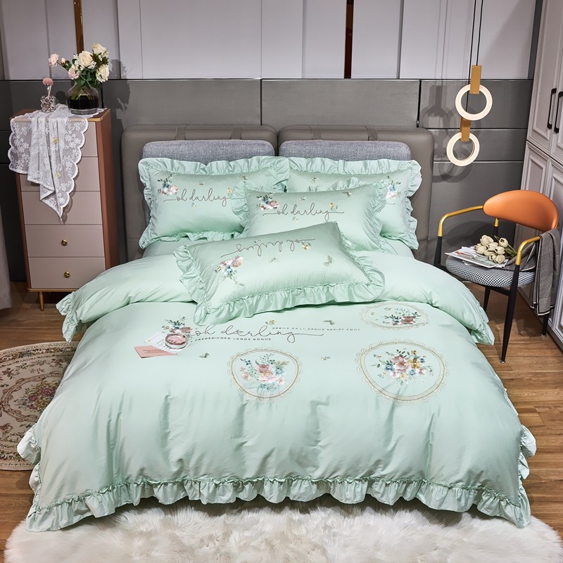 (总)星尚家纺 2024新款全消光230g牛奶绒刺绣保暖四件套-花漾,晨雾绿,豆沙粉,樱花粉