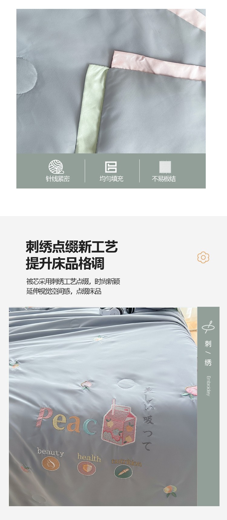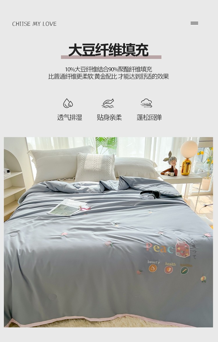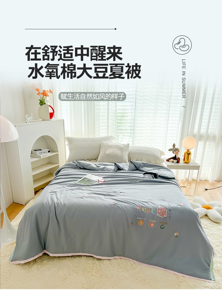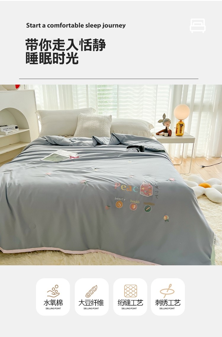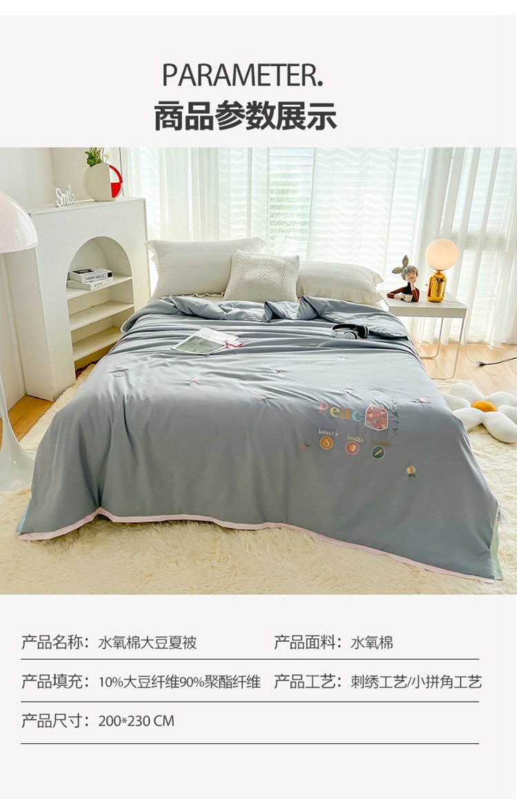 商品名称:澳洲羽 2024新水氧棉刺绣拼角大豆夏凉被直播空调被子蜜桃灰
