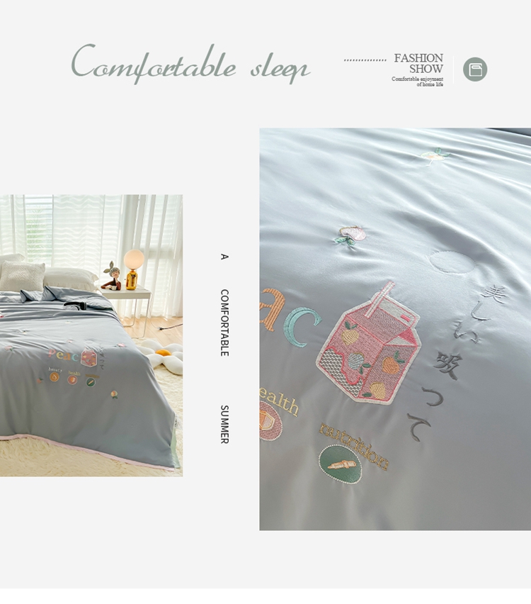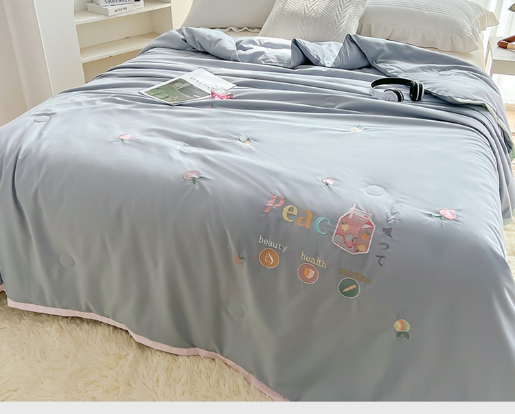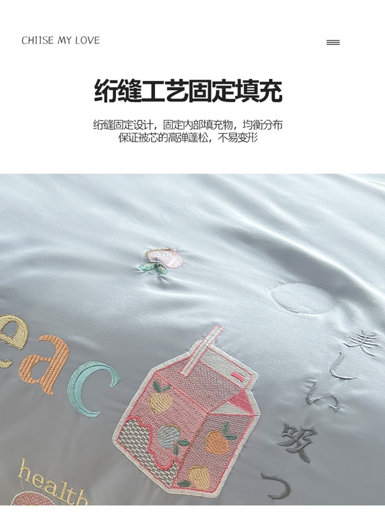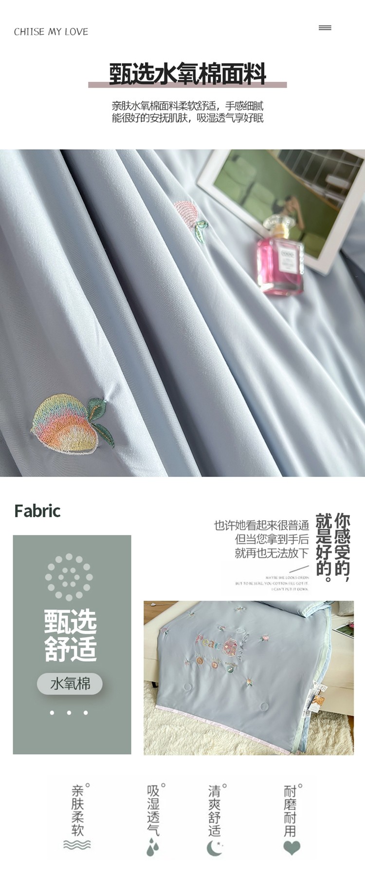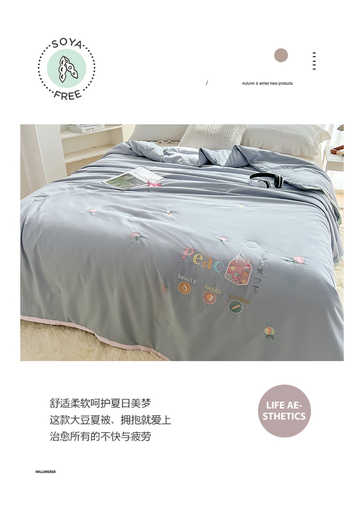 商品名称:澳洲羽 2024新水氧棉刺绣拼角大豆夏凉被直播空调被子蜜桃灰