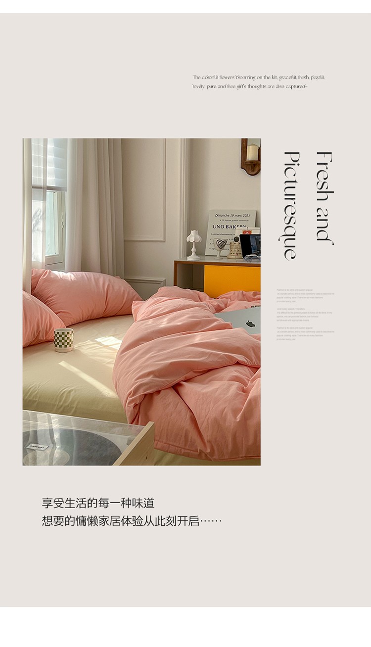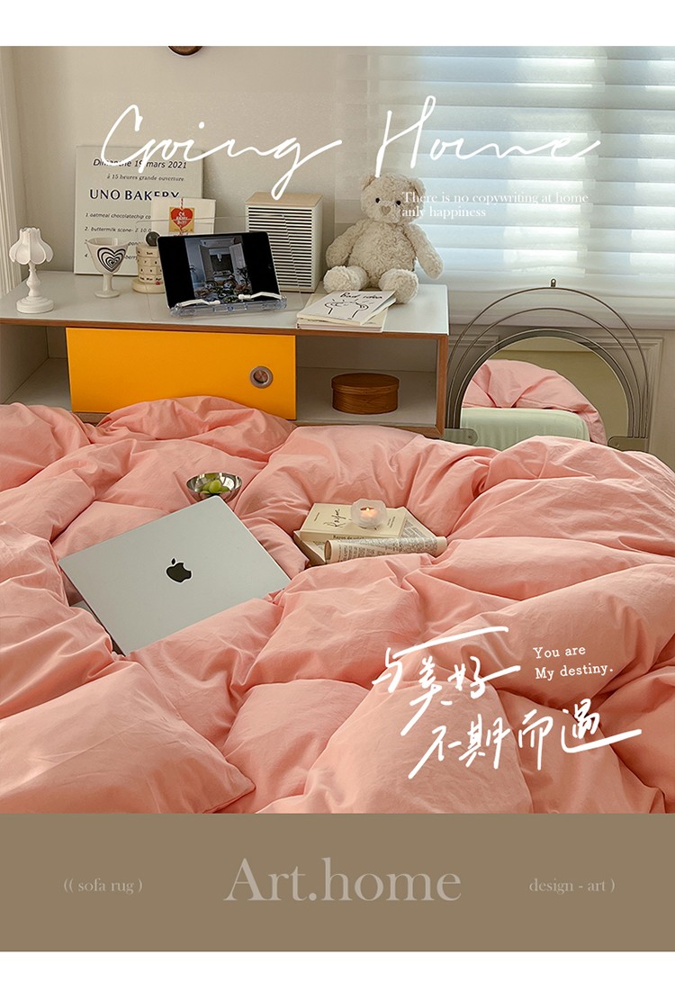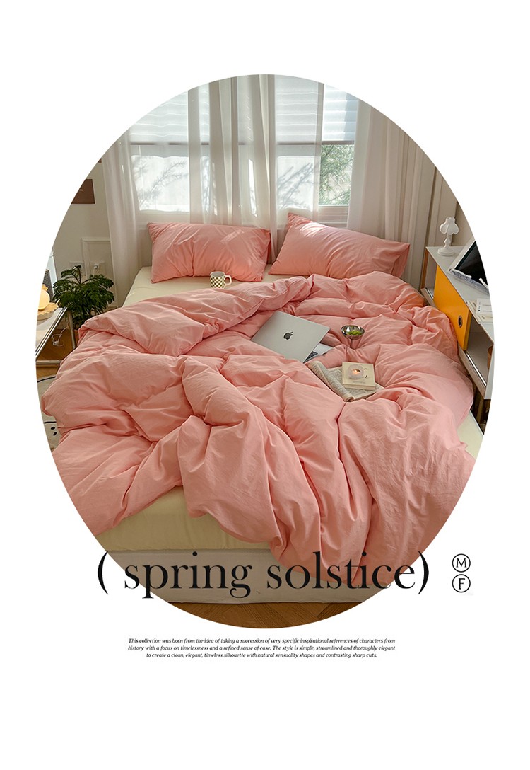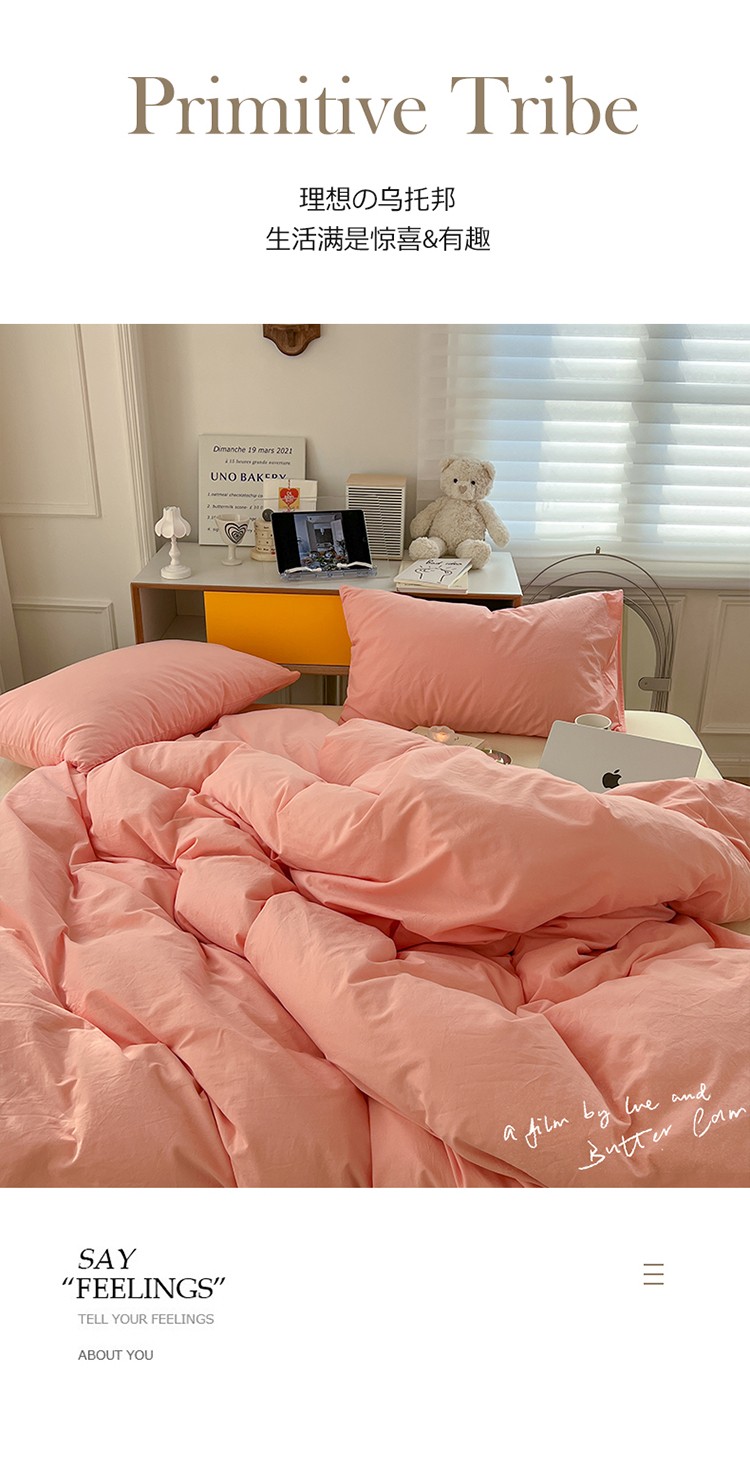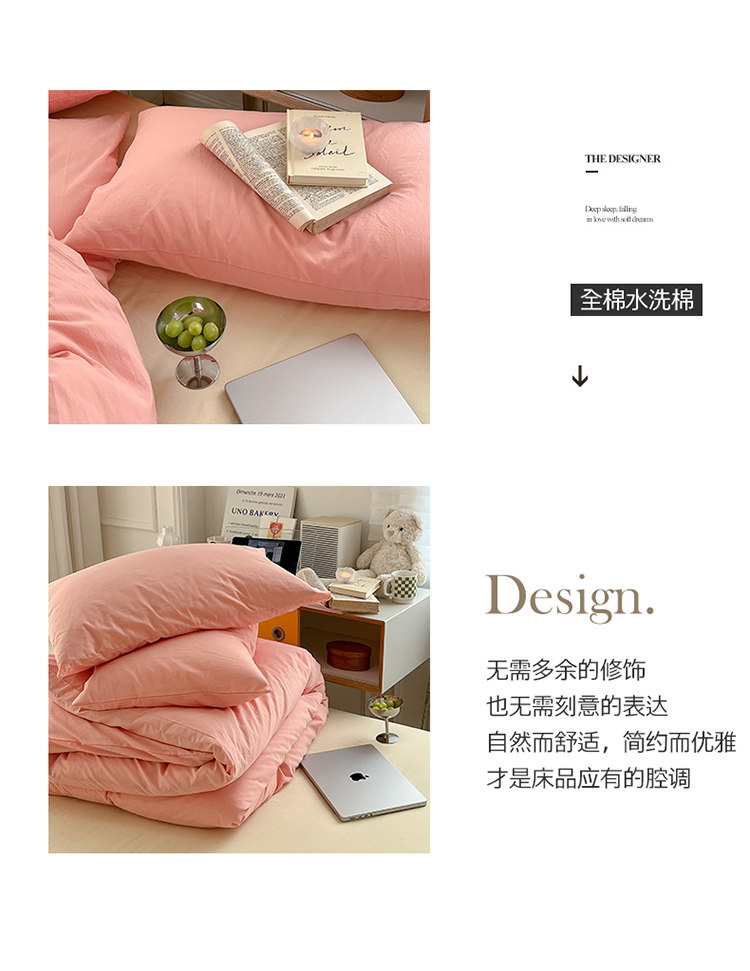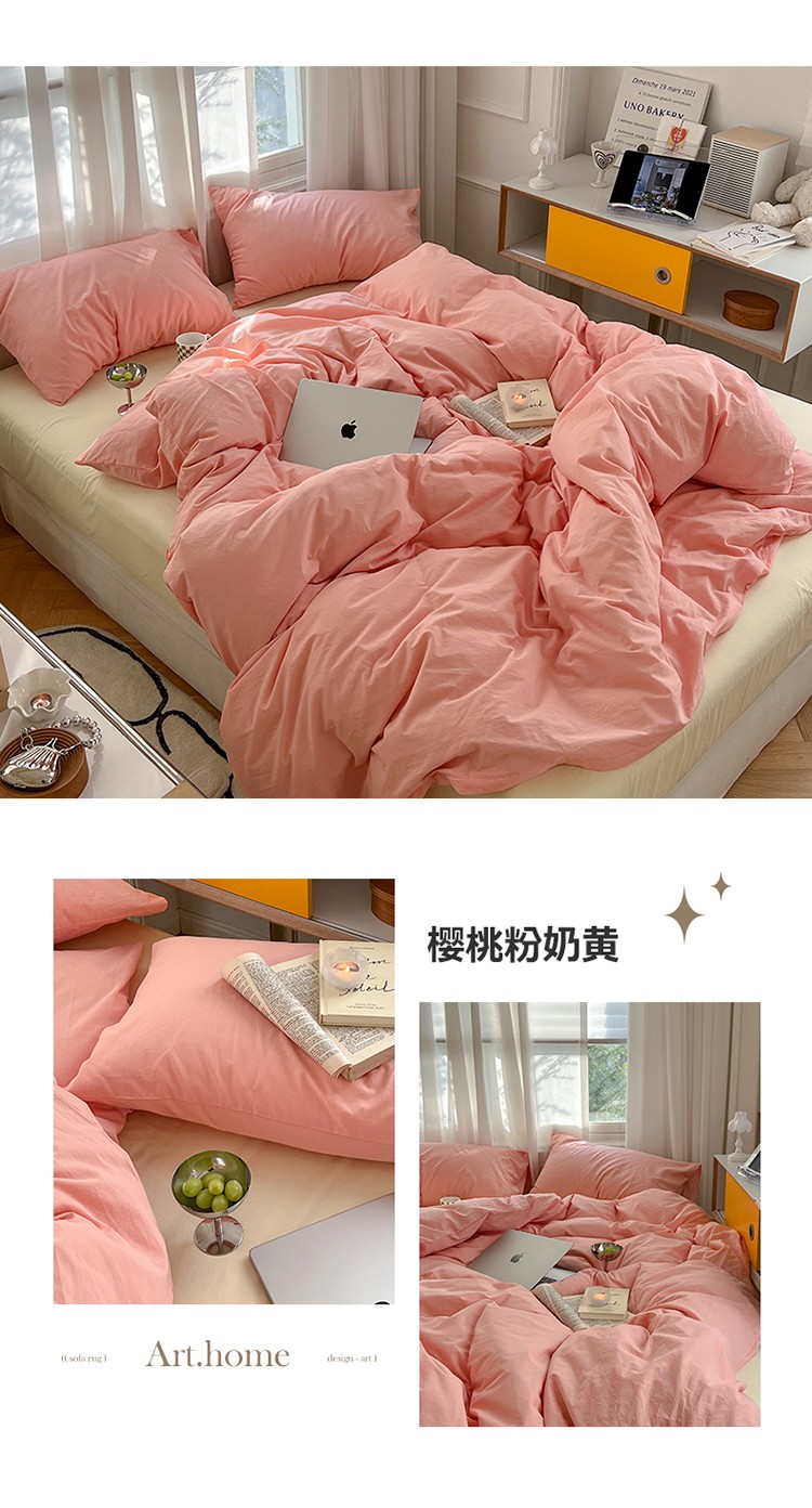 当前位置: 91家纺网 > 商品网购 > 床品套件 > 四件套 > 六巷胡同新款ins博主风纯色混搭四件套全棉水洗棉 樱桃粉奶黄