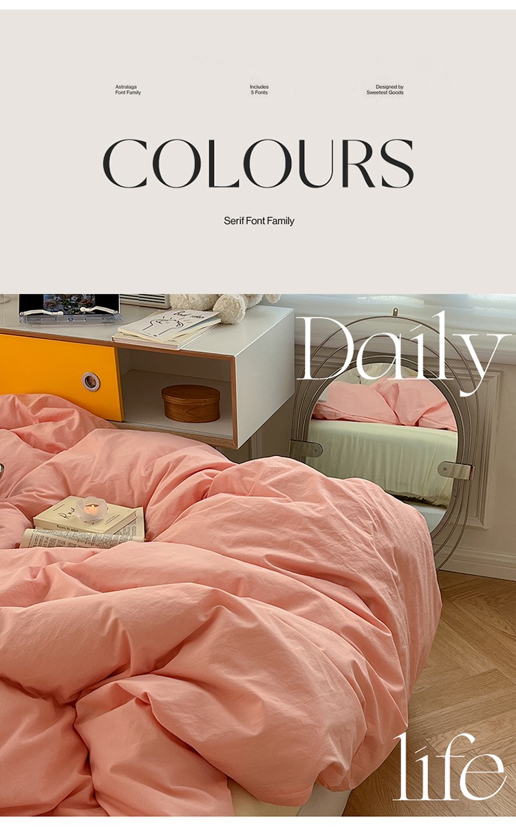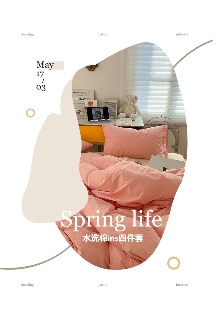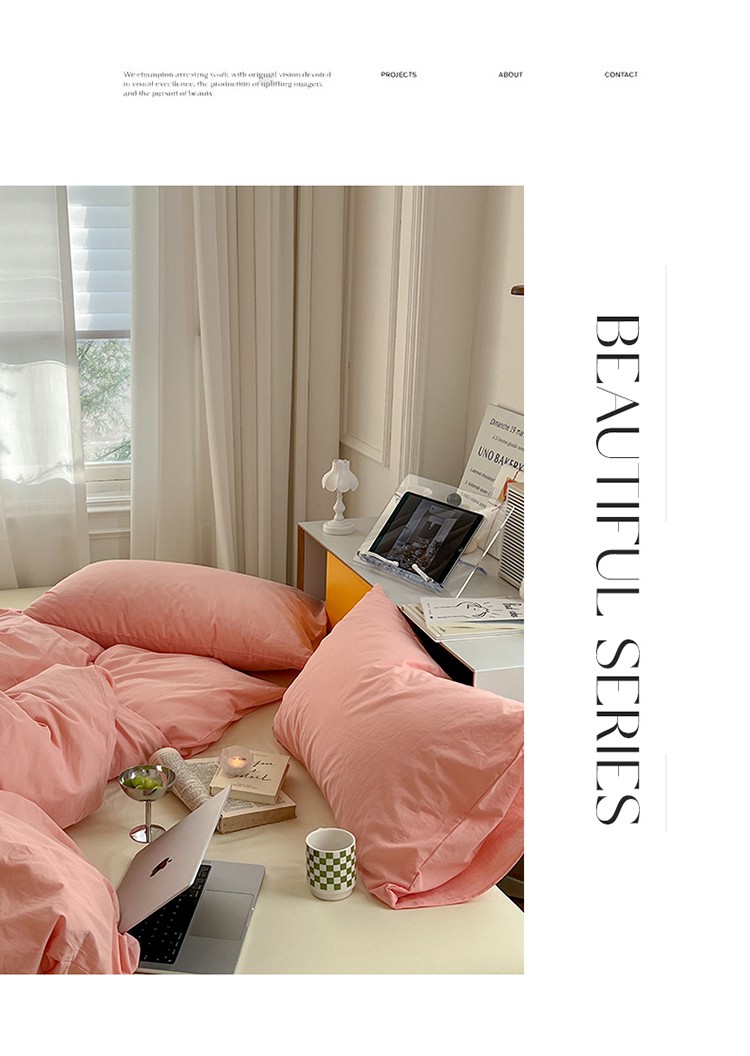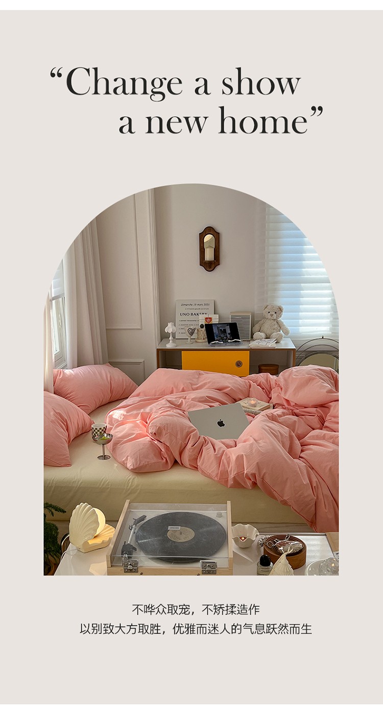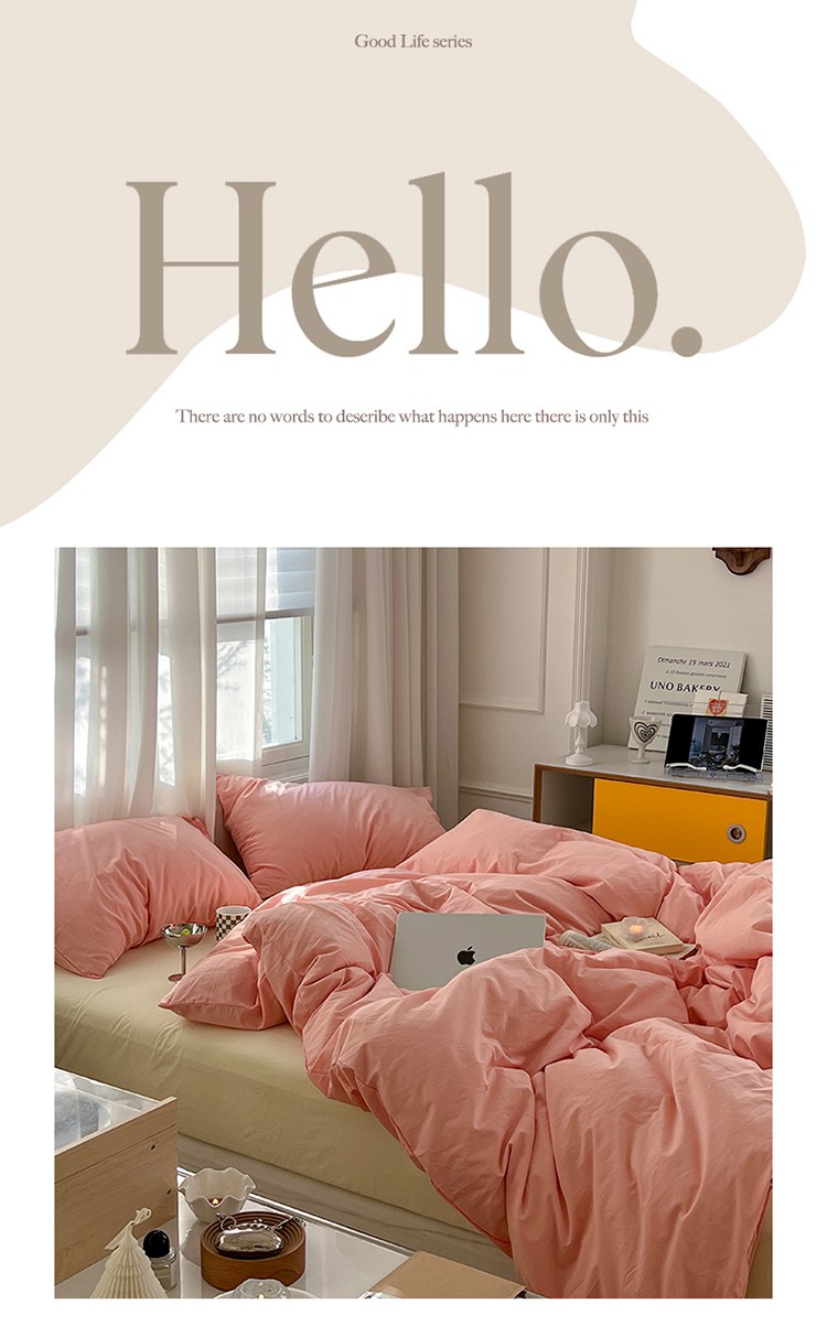 当前位置: 91家纺网 > 商品网购 > 床品套件 > 四件套 > 六巷胡同新款ins博主风纯色混搭四件套全棉水洗棉 樱桃粉奶黄