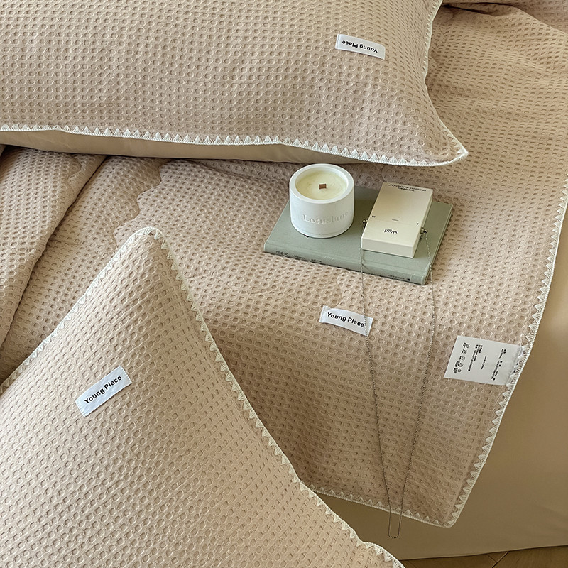 (总)洋铭区 2022新款全棉华夫格四件套,丛林绿,焦糖色,麦苗绿,米杏色,蜜桃粉,牛仔蓝,香雪米,岩石灰