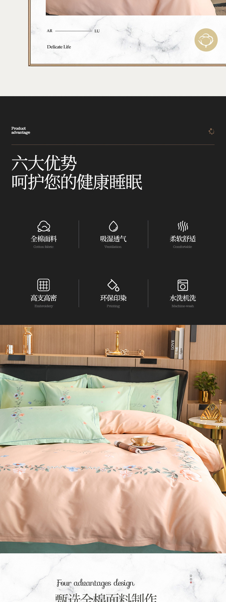 (总)雲归梦 2021新款全棉生态磨毛刺绣四件套,慕思-橙色,慕思-粉紫,慕思-灰,慕思-米黄,慕思-青绿,慕思-天蓝