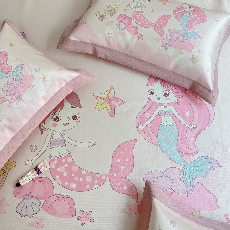 商品名称:本希 2022新款水洗数码印花卡通简约冰丝席床席款 美人鱼