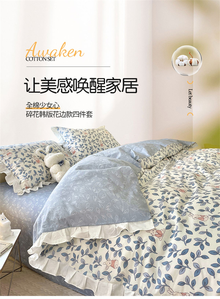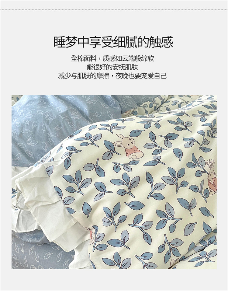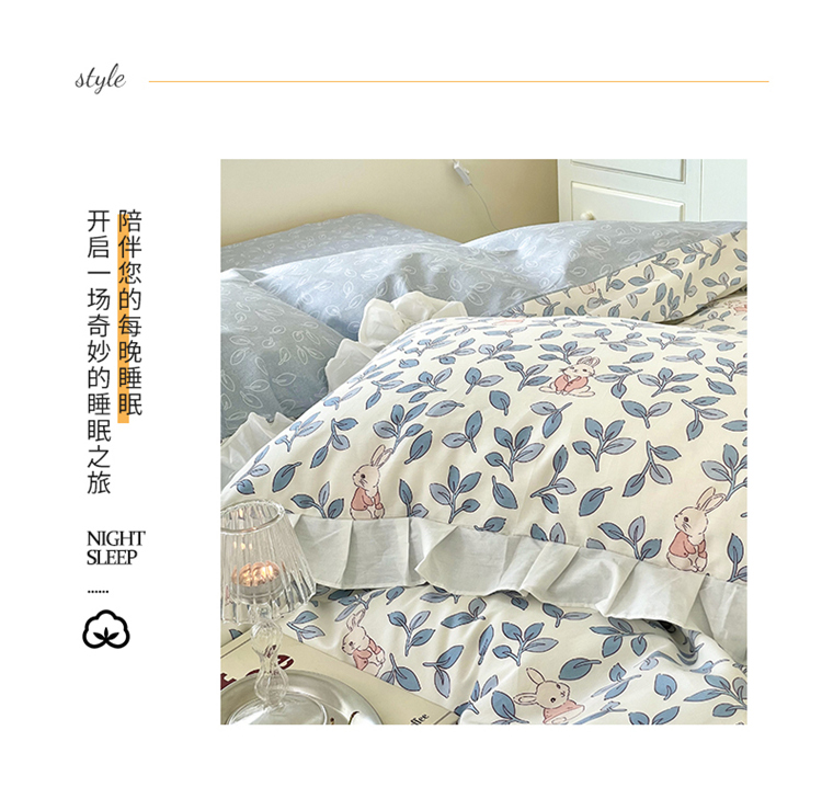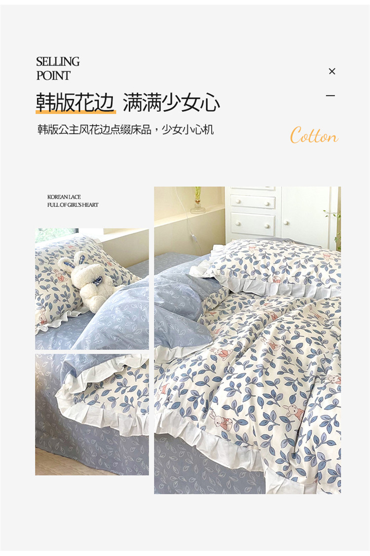 商品名称:桃子家居 2022新款仙气奶油碎花少女心韩版花边纯棉四件套 花边菲菲兔