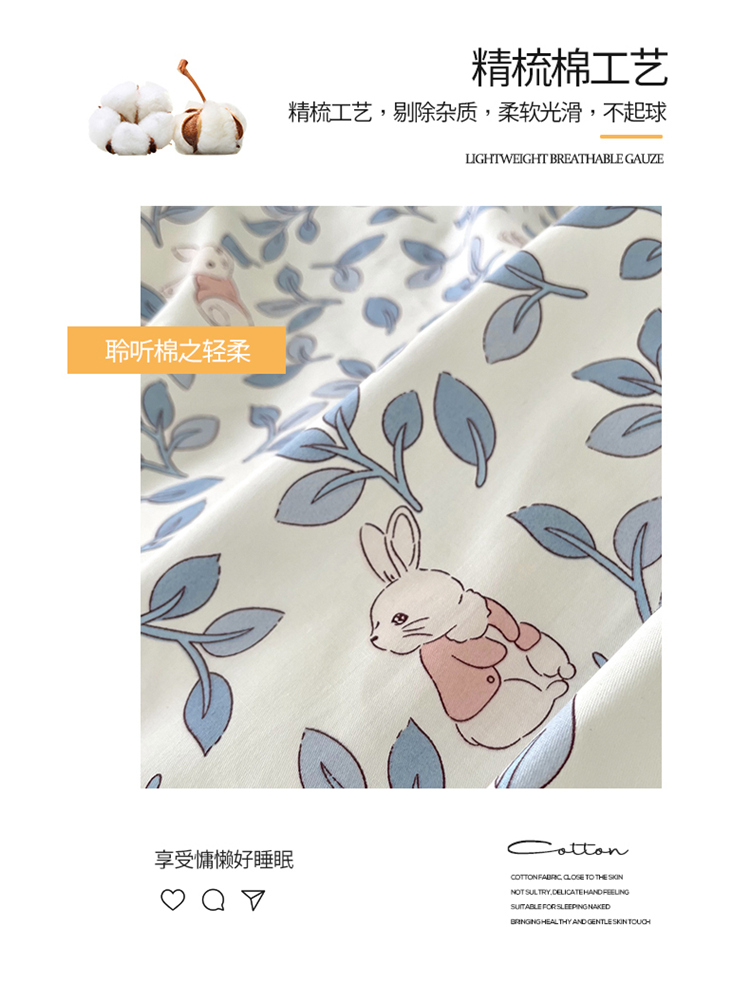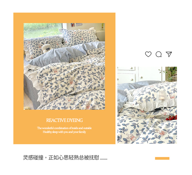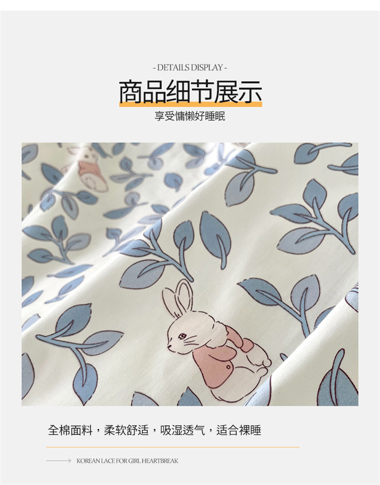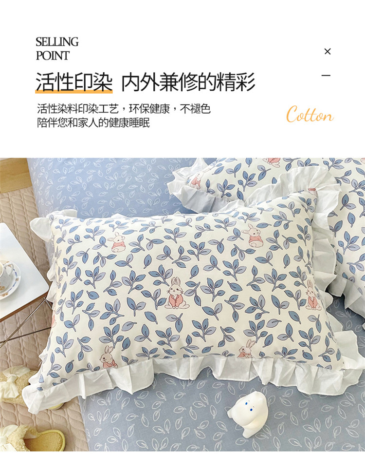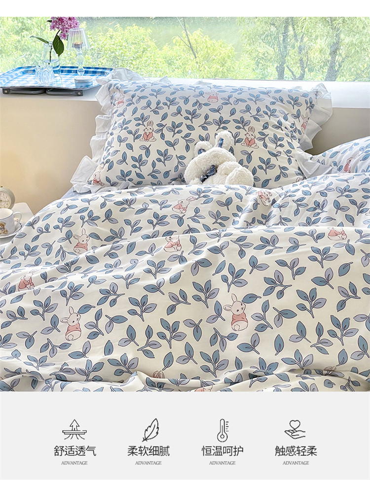 商品名称:桃子家居 2022新款仙气奶油碎花少女心韩版花边纯棉四件套 花边菲菲兔