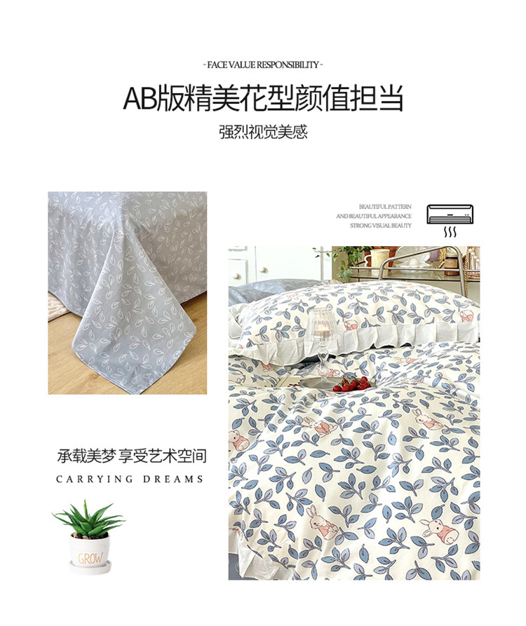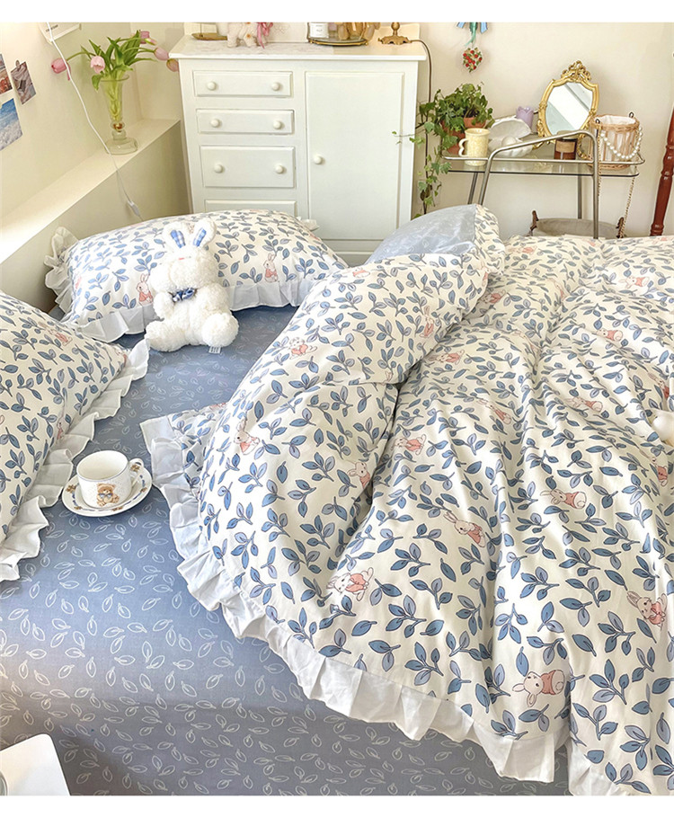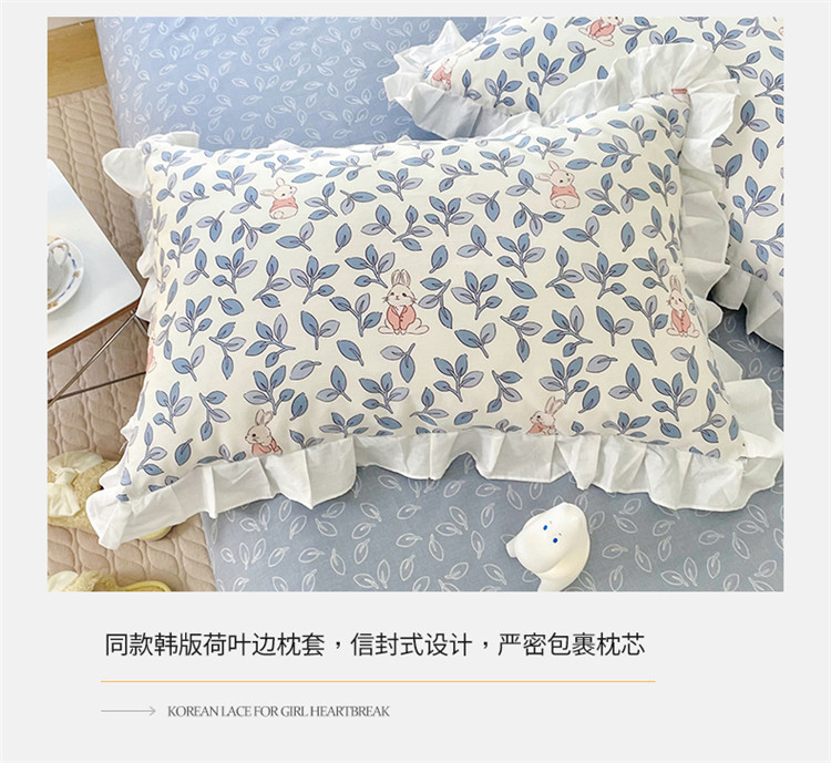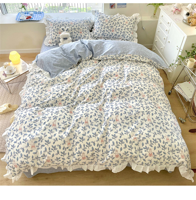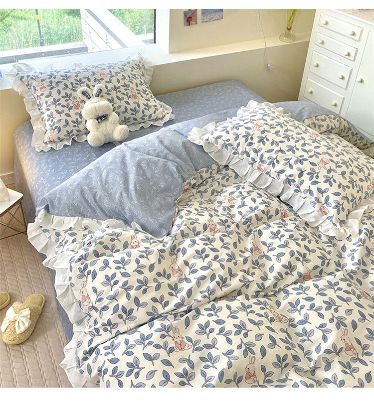 桃子家居 2022新款仙气奶油碎花少女心韩版花边纯棉四件套 花边菲菲兔
