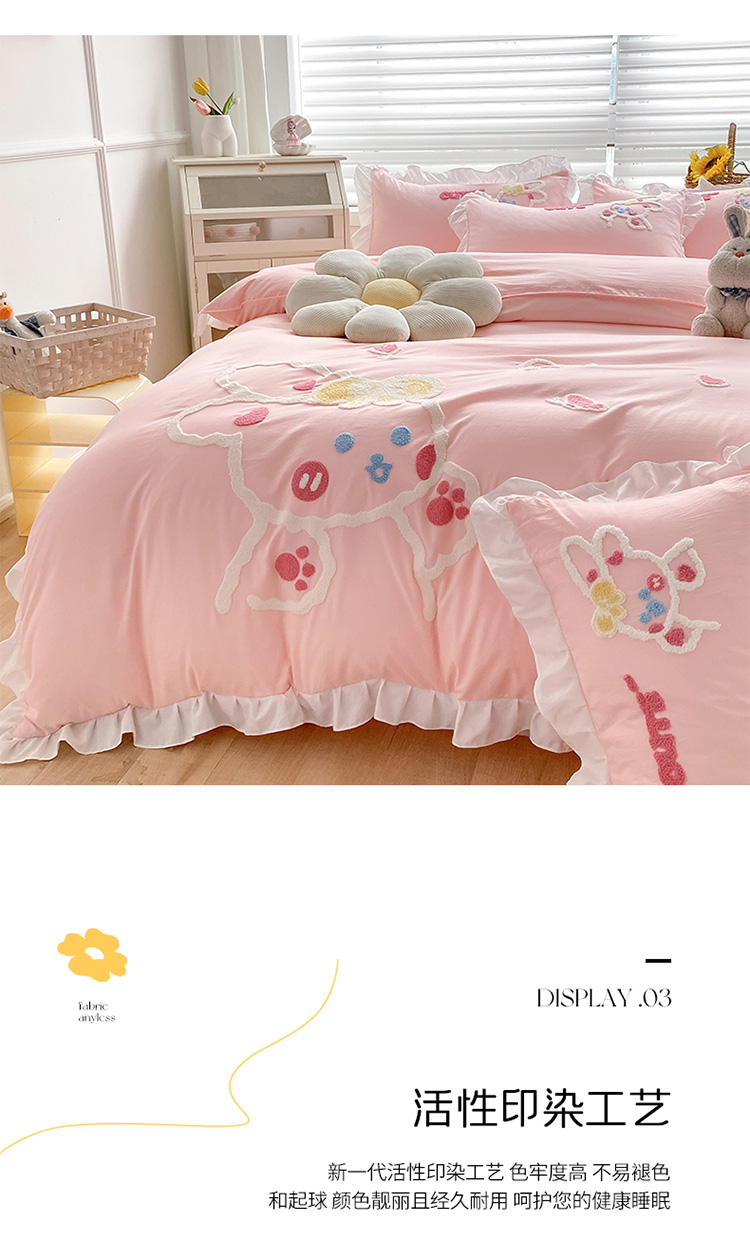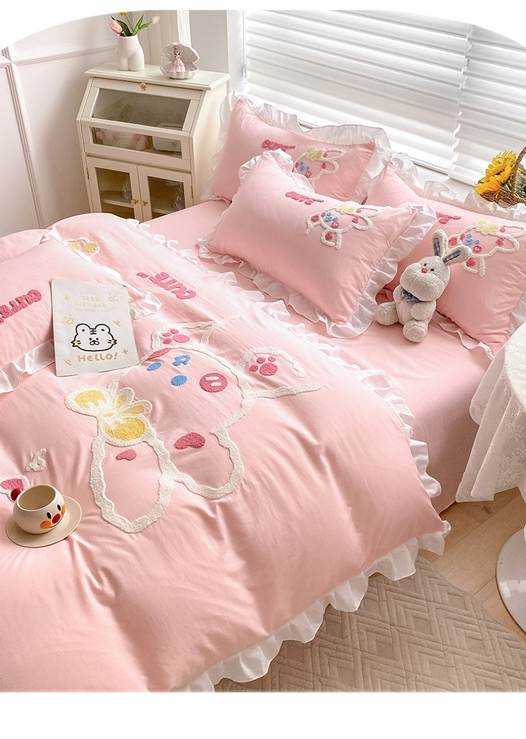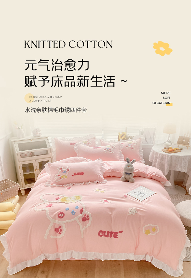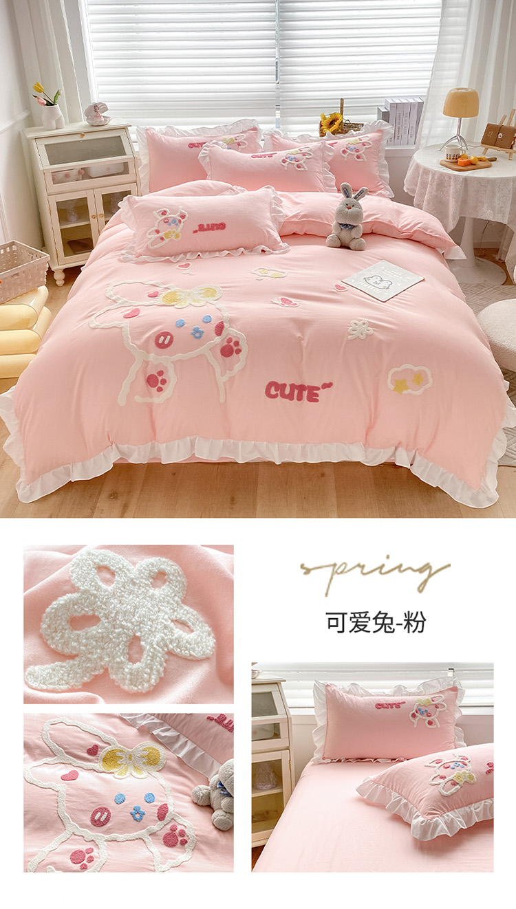 当前位置: 91家纺网 > 商品网购 > 床品套件 > 四件套 > 水洗棉四件套 > 泉欣 2024新款网红水洗棉毛巾绣韩版四件套可爱兔可爱兔-粉