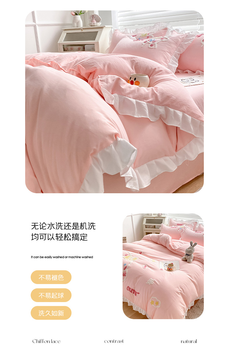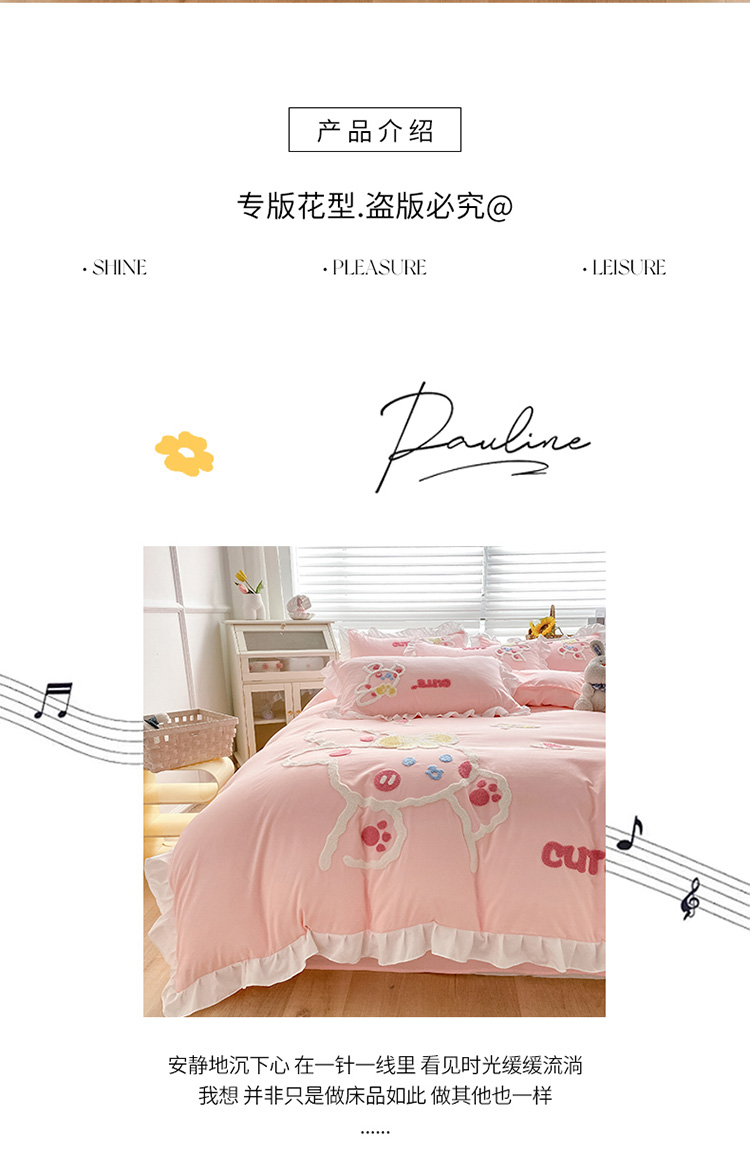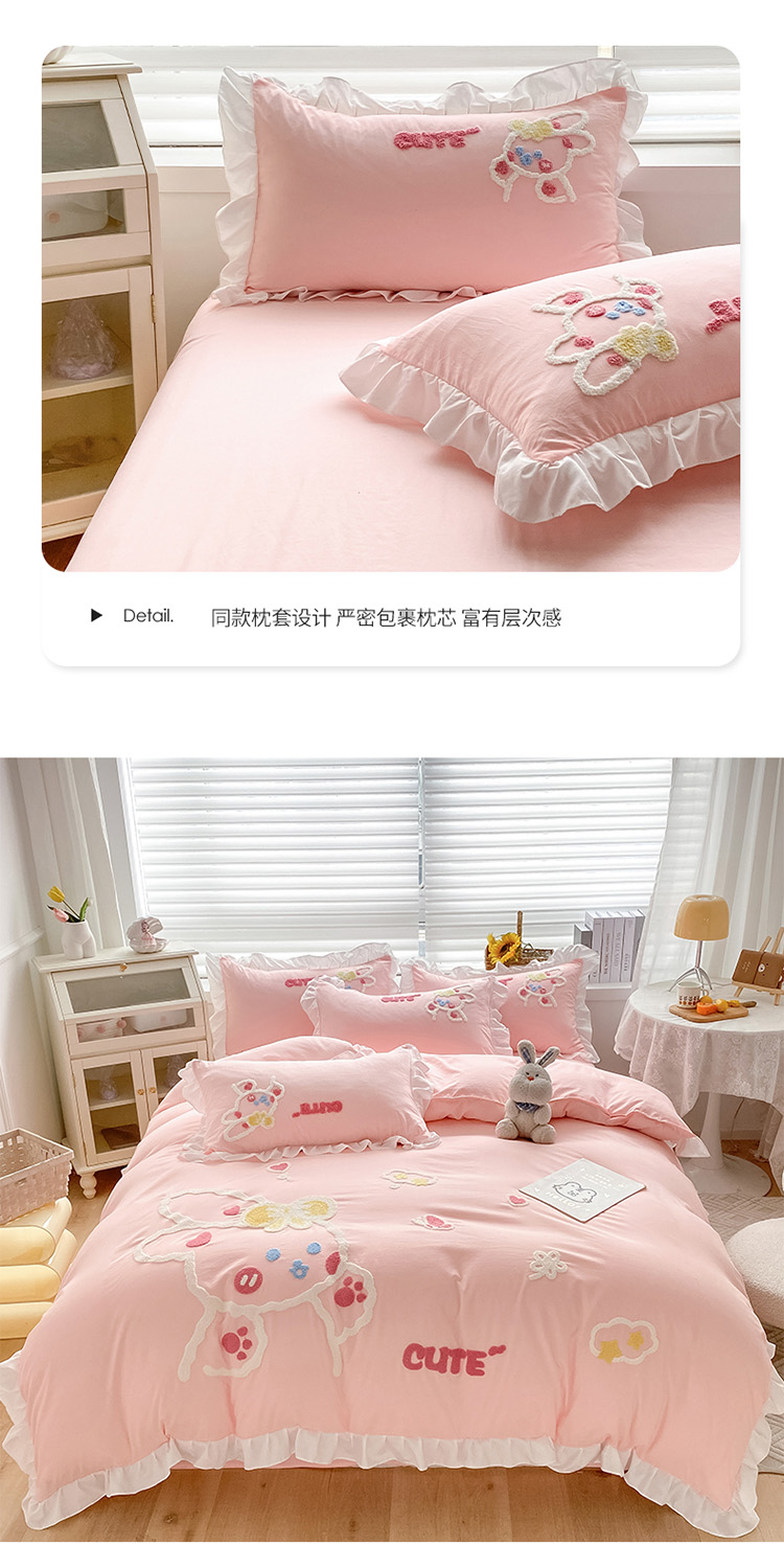 当前位置: 91家纺网 > 商品网购 > 床品套件 > 四件套 > 水洗棉四件套 > 泉欣 2024新款网红水洗棉毛巾绣韩版四件套可爱兔可爱兔-粉