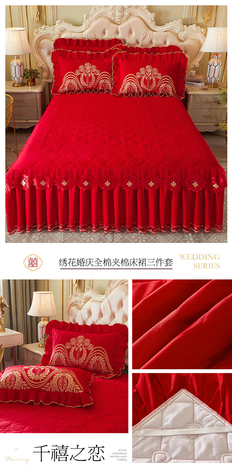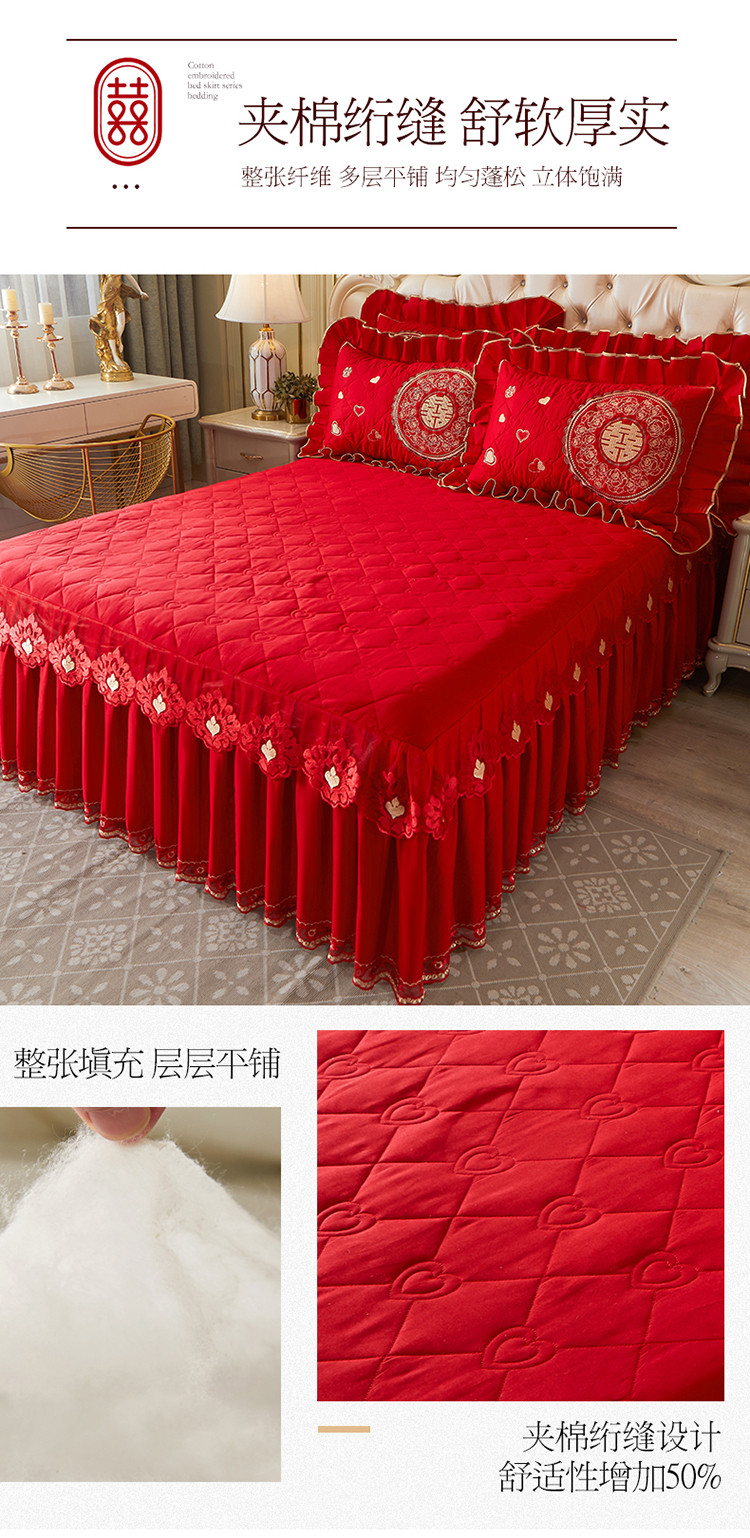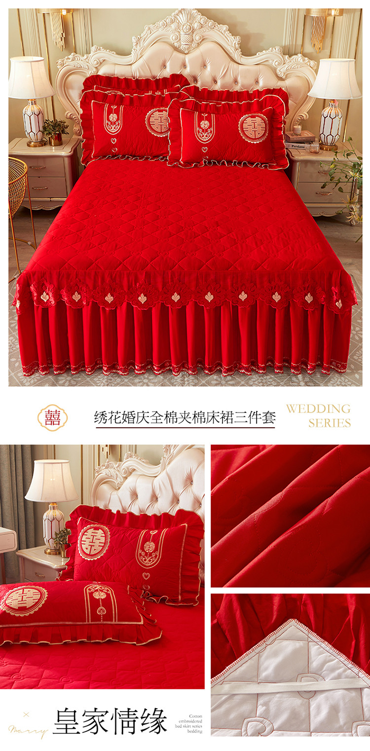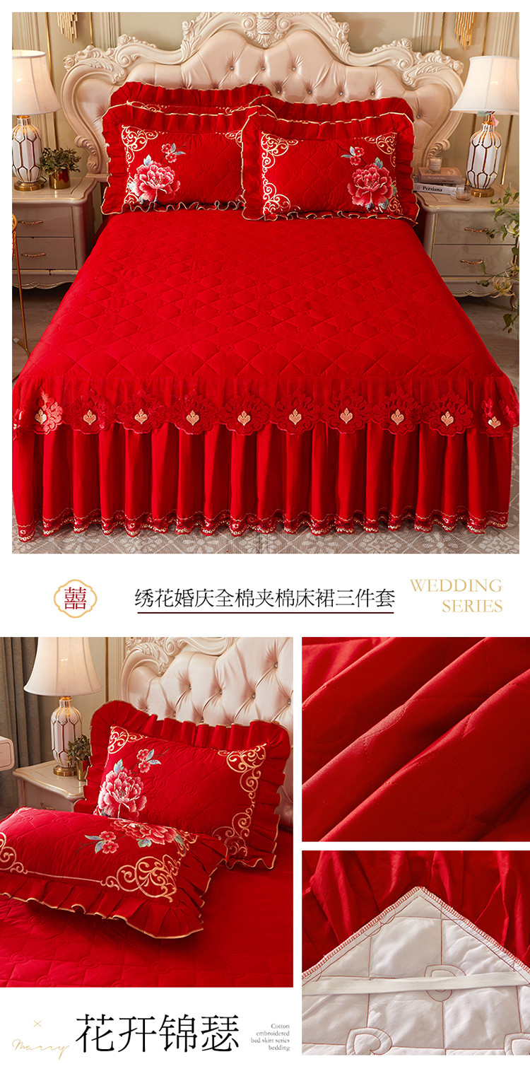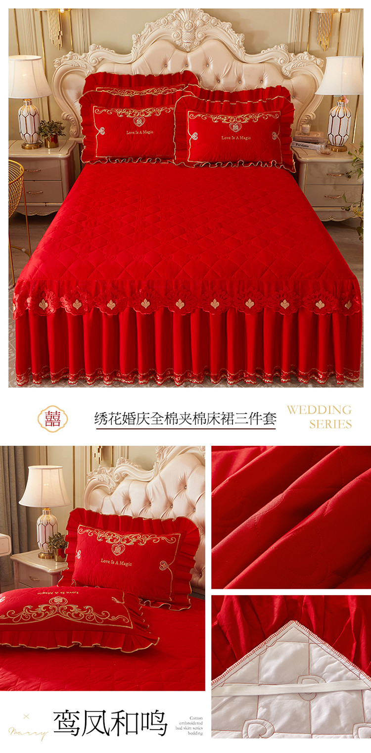 (总)宜凡 2022新款绣花婚庆全棉夹棉床裙款三件套