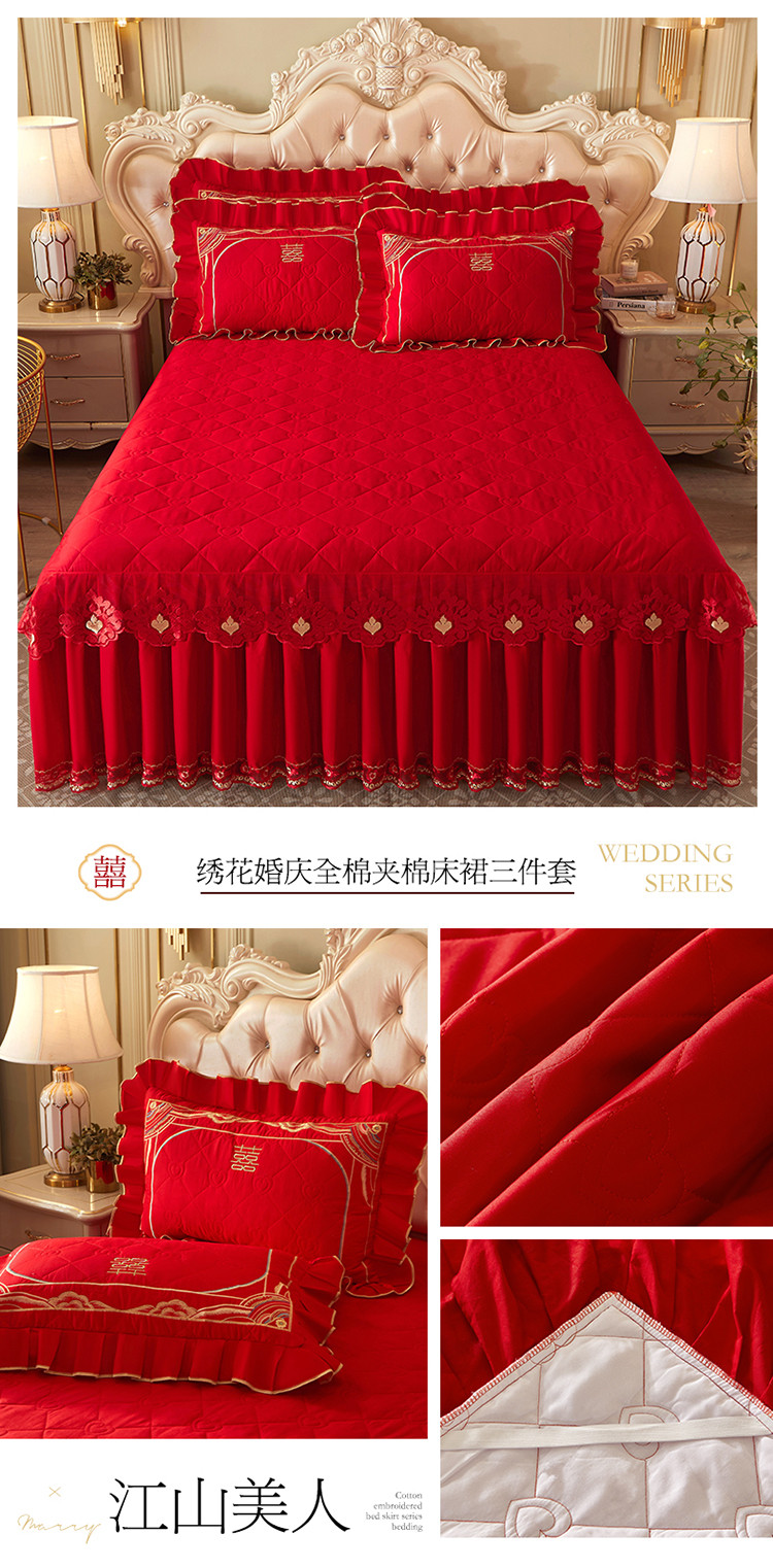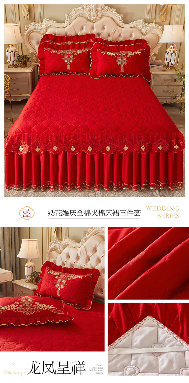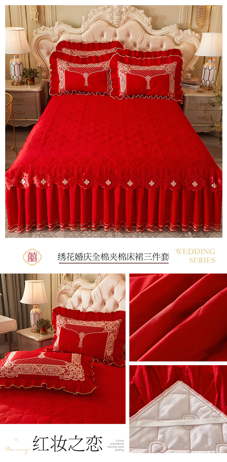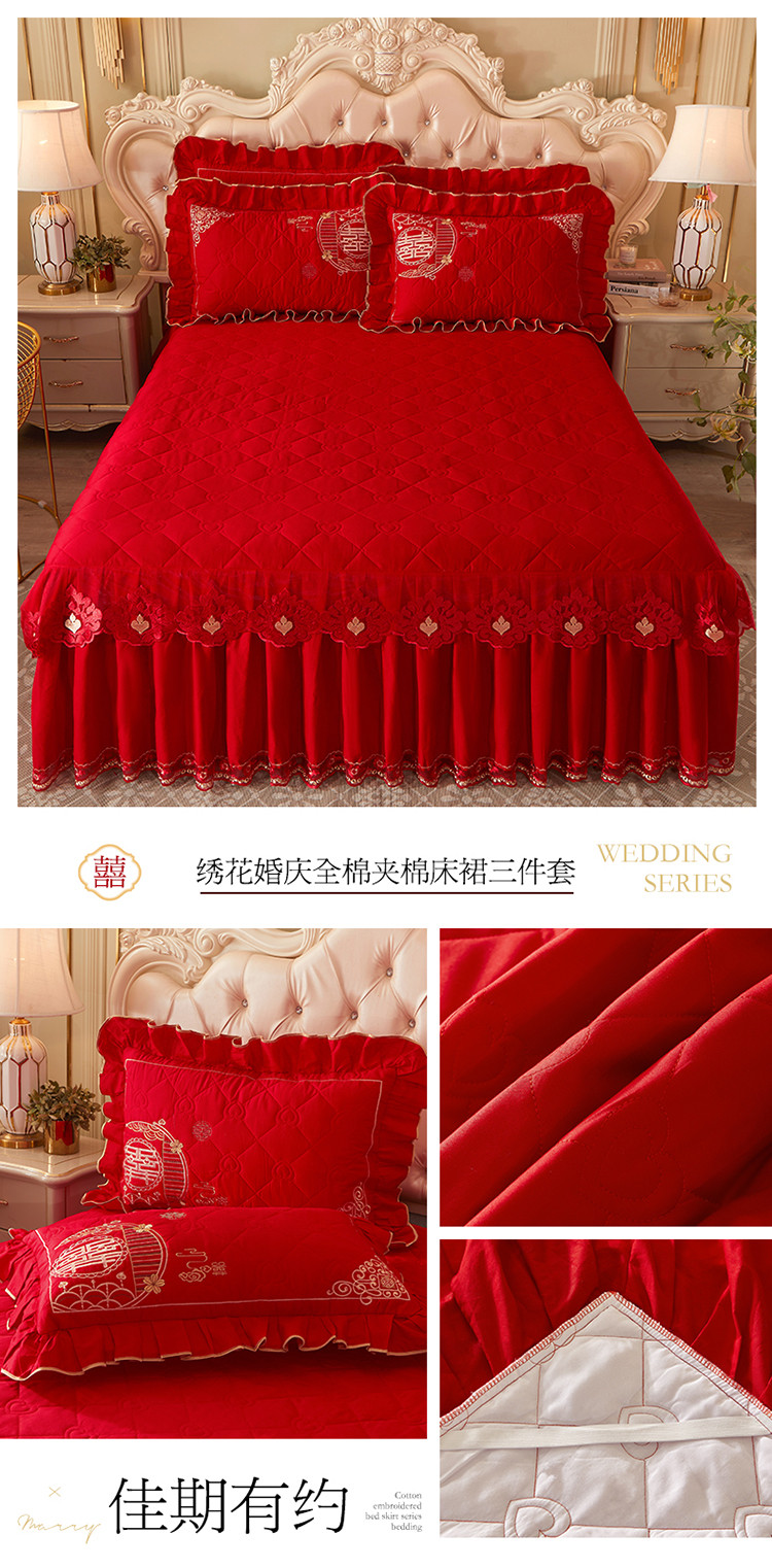 (总)宜凡 2022新款绣花婚庆全棉夹棉床裙款三件套