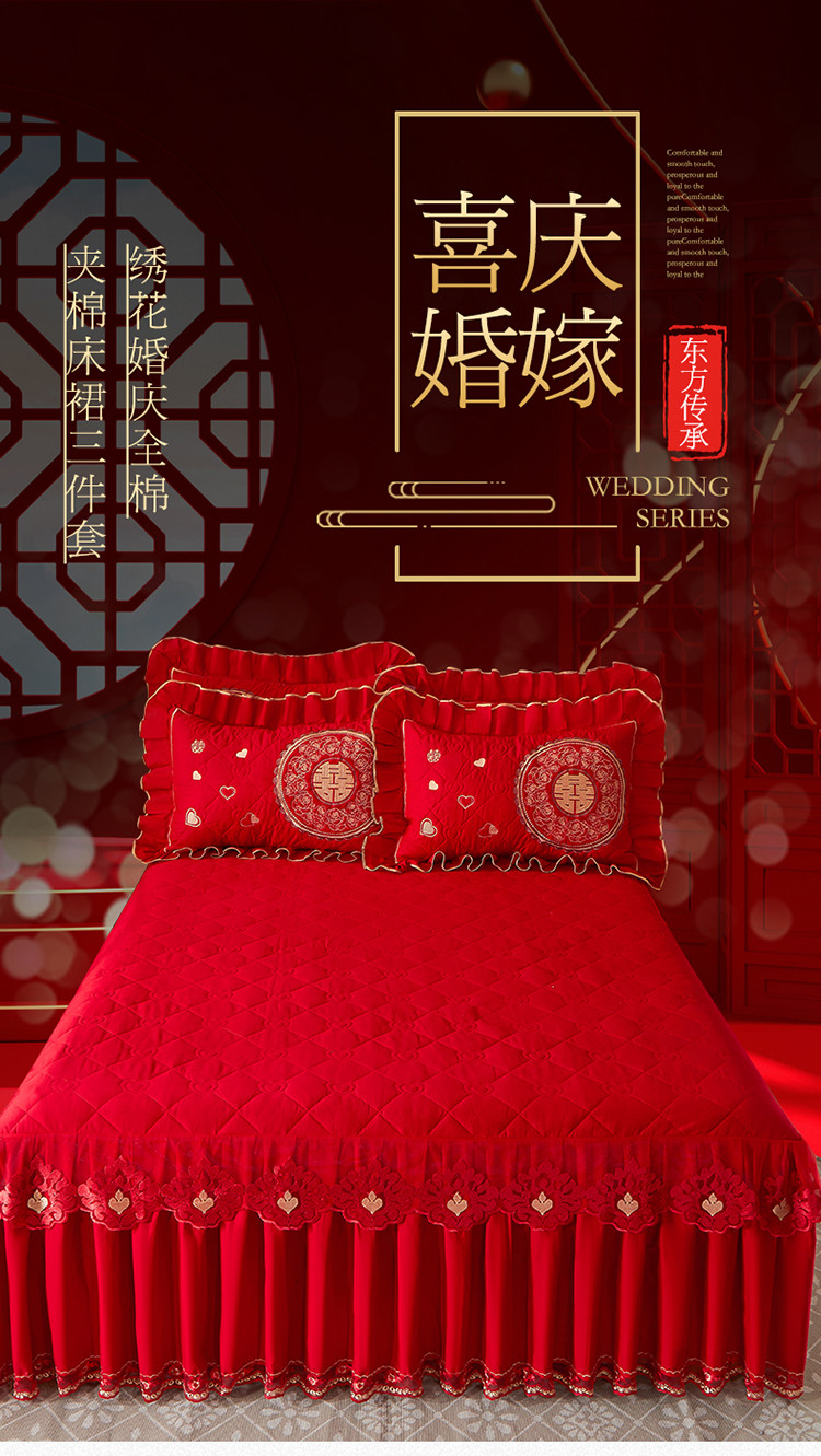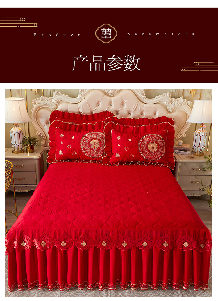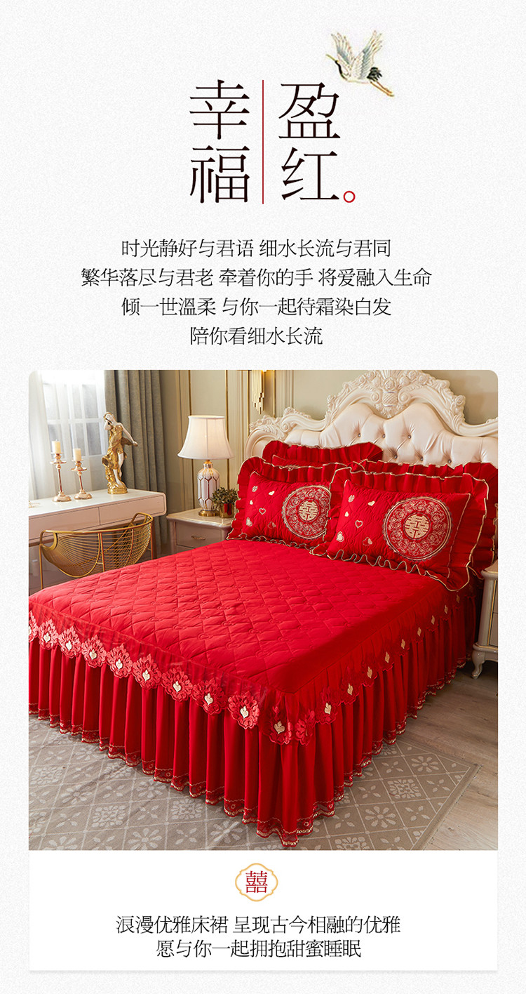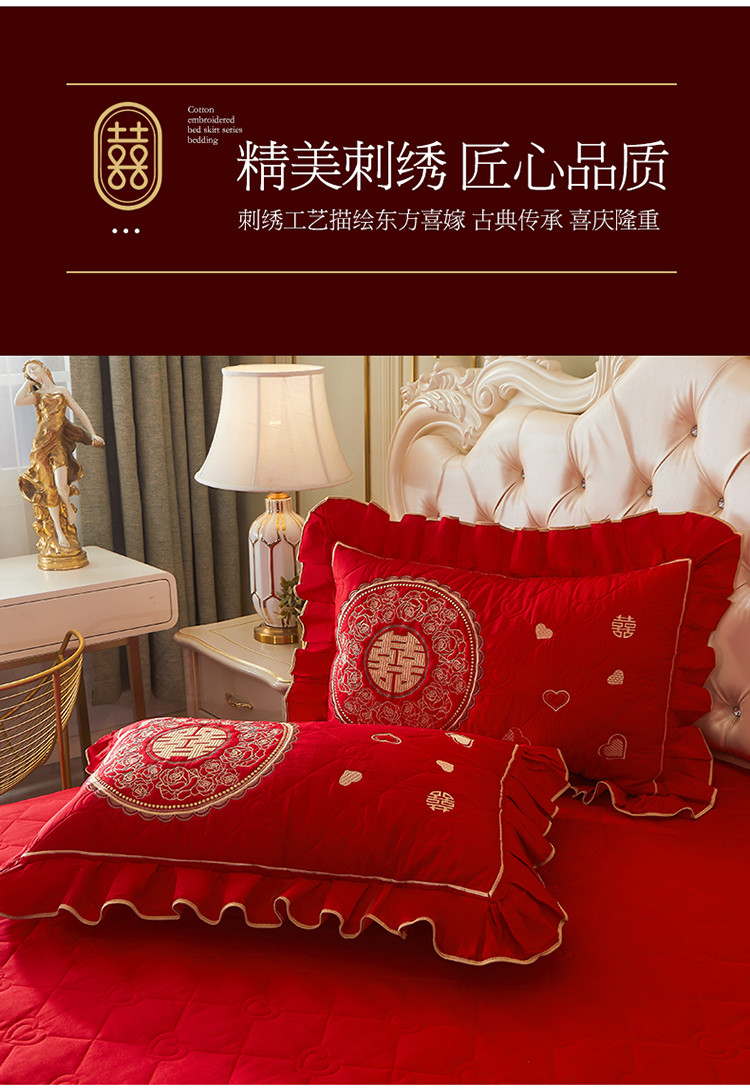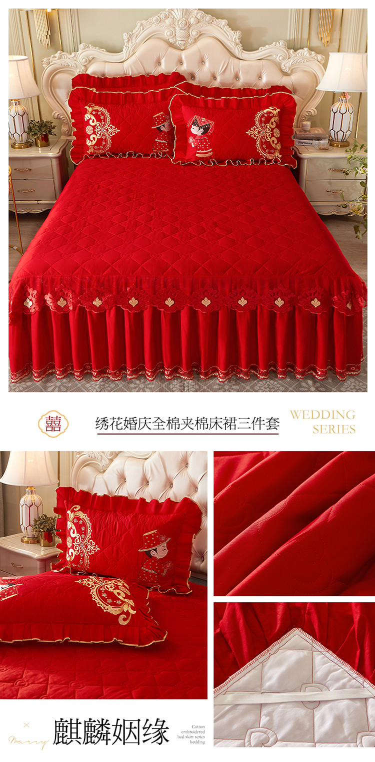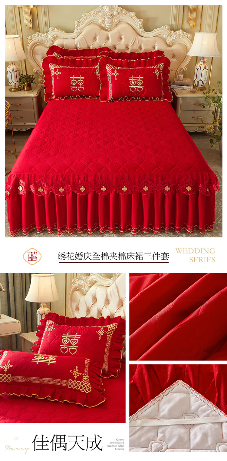 (总)宜凡 2022新款绣花婚庆全棉夹棉床裙款三件套
