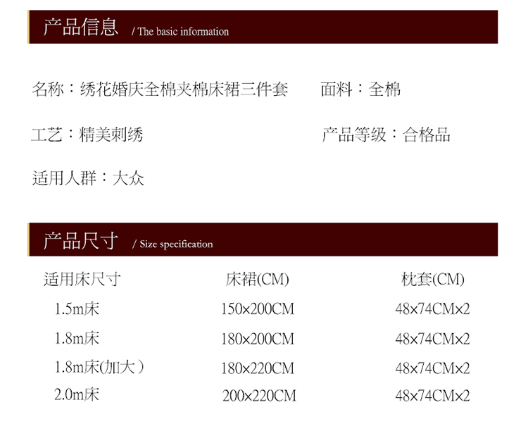 商品名称:(总)宜凡 2022新款绣花婚庆全棉夹棉床裙款三件套