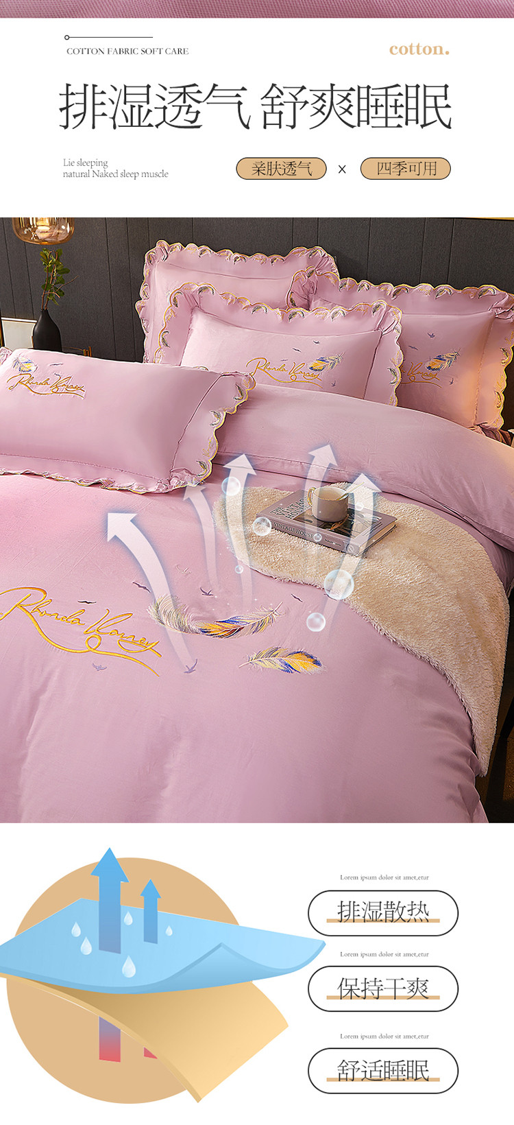 商品名称:宜凡 2022新款全棉刺绣床单款四件套 芳羽-淡粉