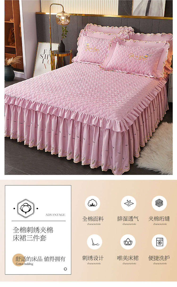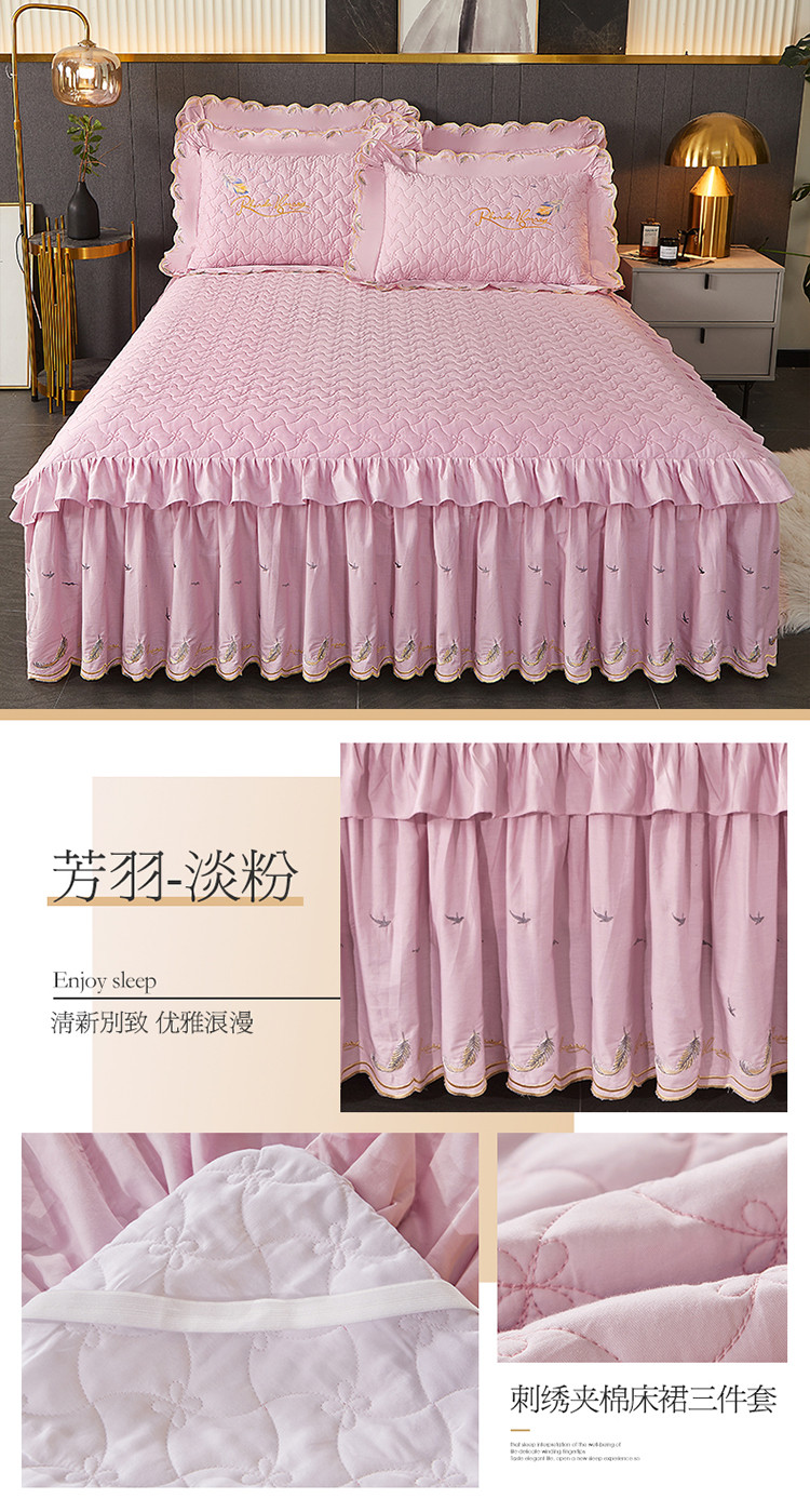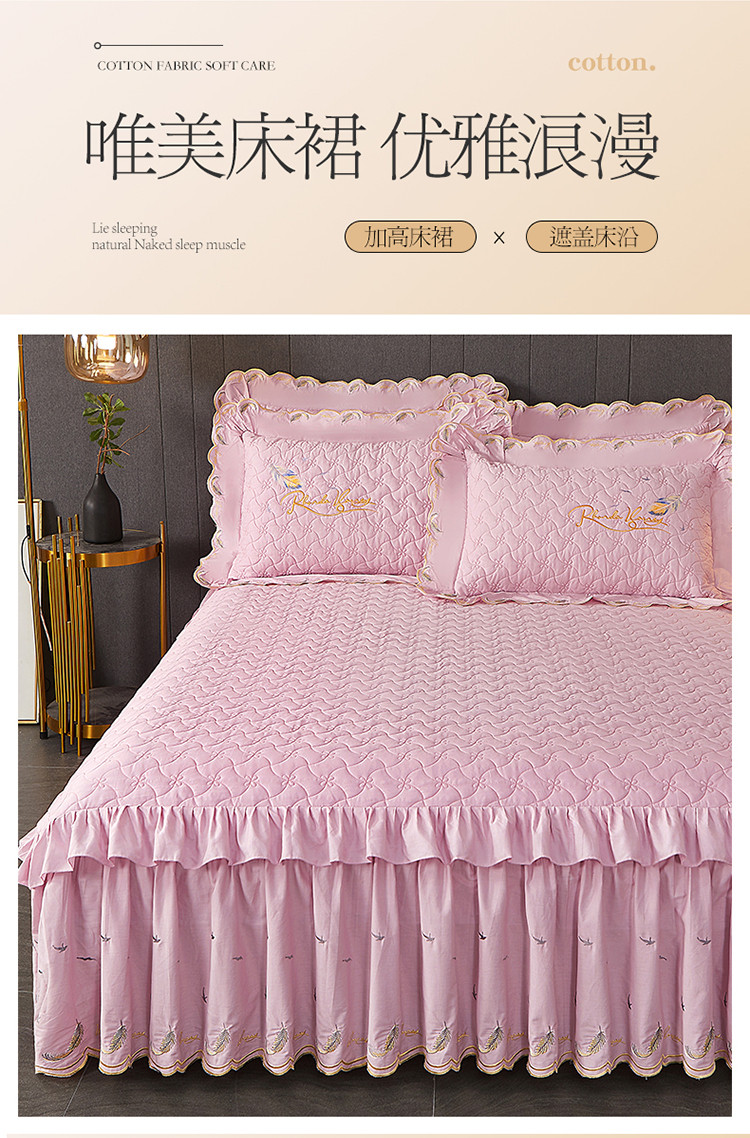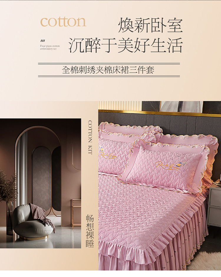 当前位置: 91家纺网 > 商品网购 > 床品套件 > 三件套 > 宜凡 2022新款全棉刺绣夹棉床裙款三件套-芳羽 芳羽淡粉