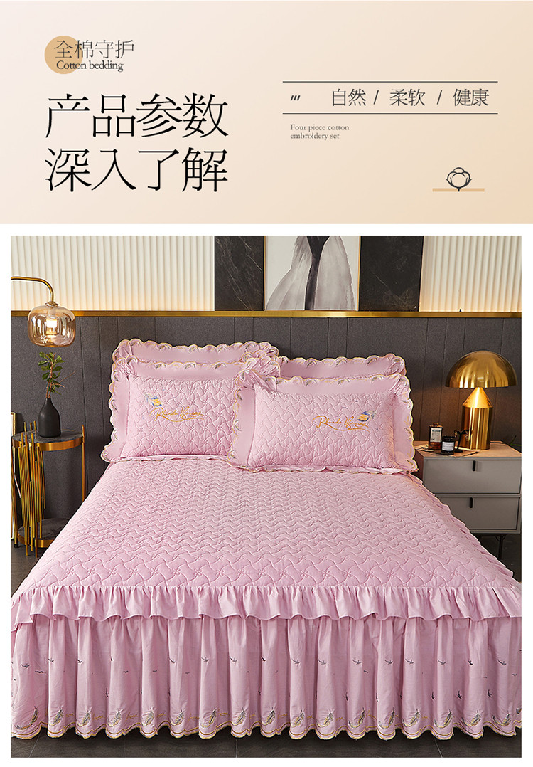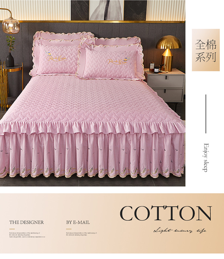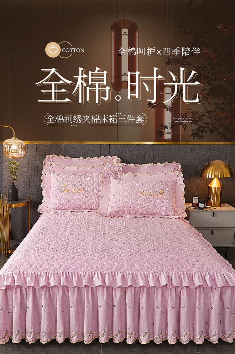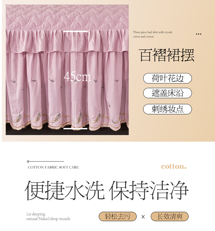 当前位置: 91家纺网 > 商品网购 > 床品套件 > 三件套 > 宜凡 2022新款全棉刺绣夹棉床裙款三件套-芳羽 芳羽淡粉