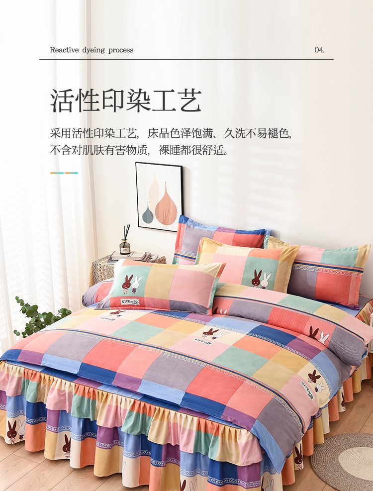商品名称:代芙 2022新款加厚磨毛双边床裙单品三件套 彩格兔