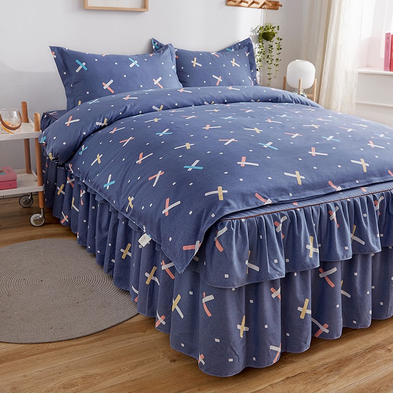 代芙 2022新款加厚磨毛双边床裙四件套 爱尚几何